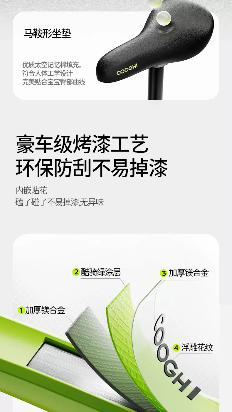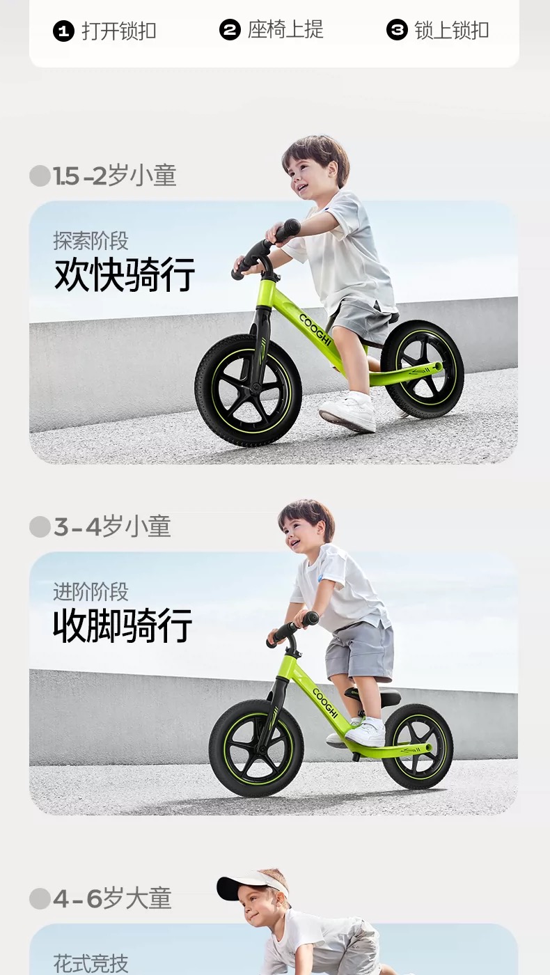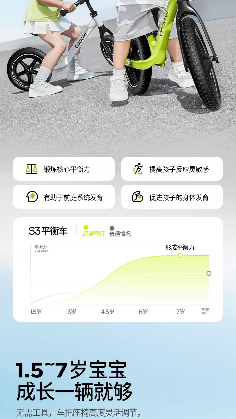 酷骑儿童平衡车S3宝宝滑步车1-2-3-6岁小童学步溜溜车入门自行车