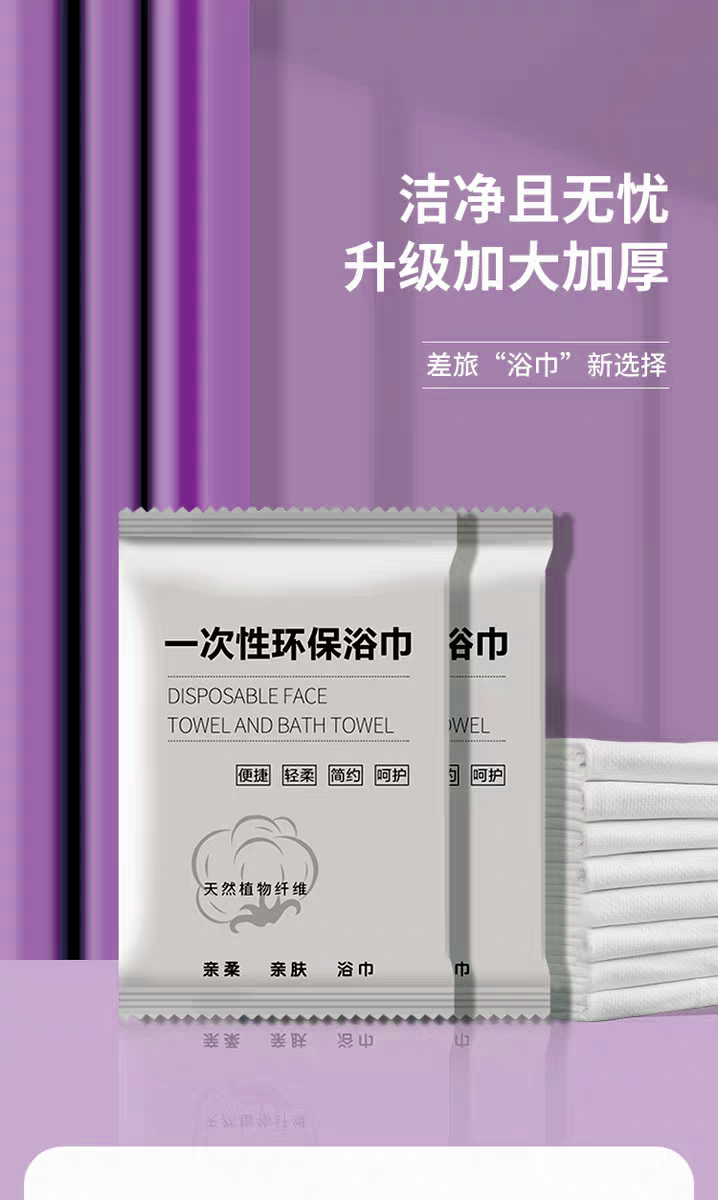 60g独立包装 60*120cm一次性木浆浴巾酒店专用独立包装民宿加厚加大压缩旅行单独大毛巾面巾