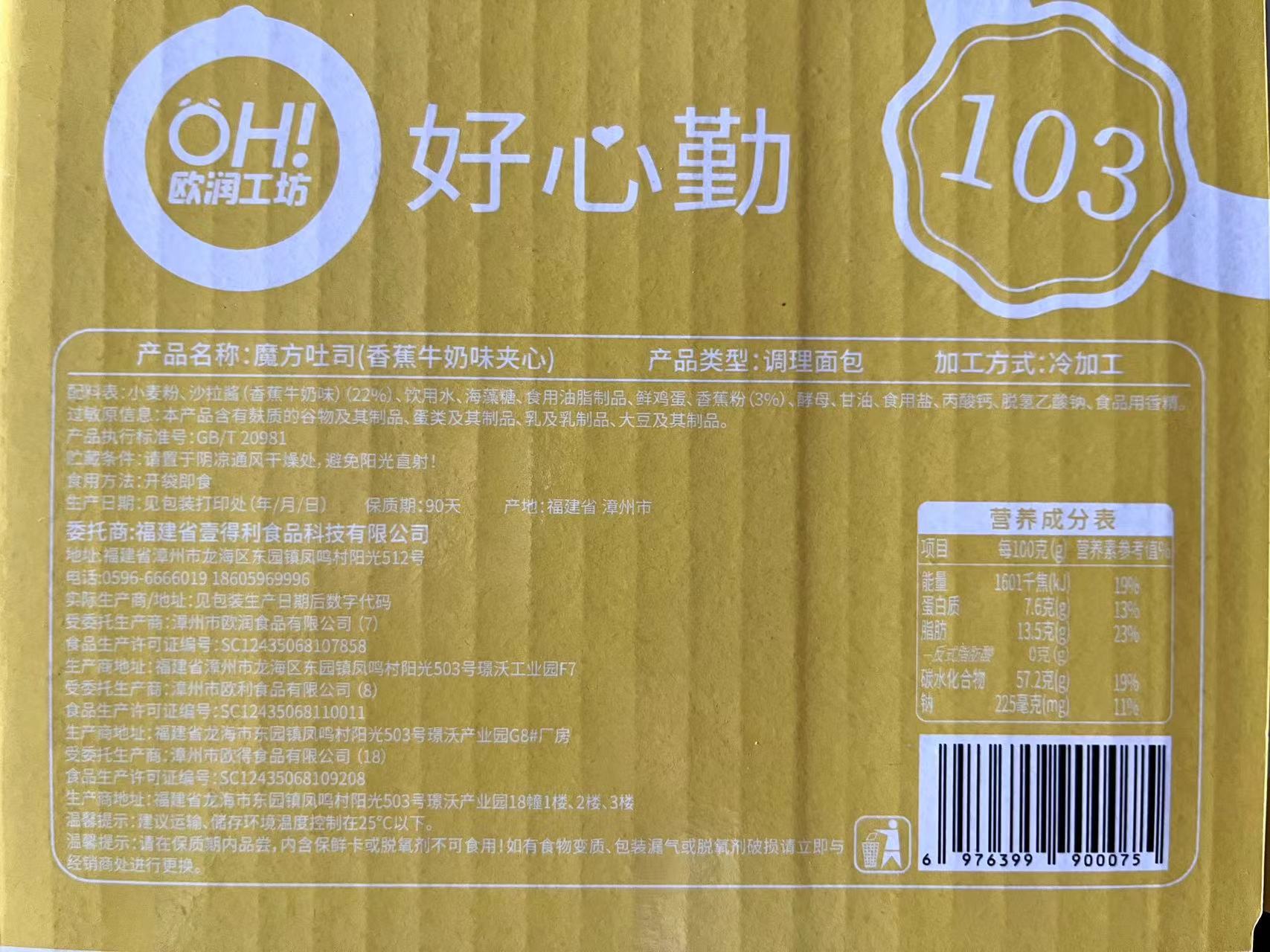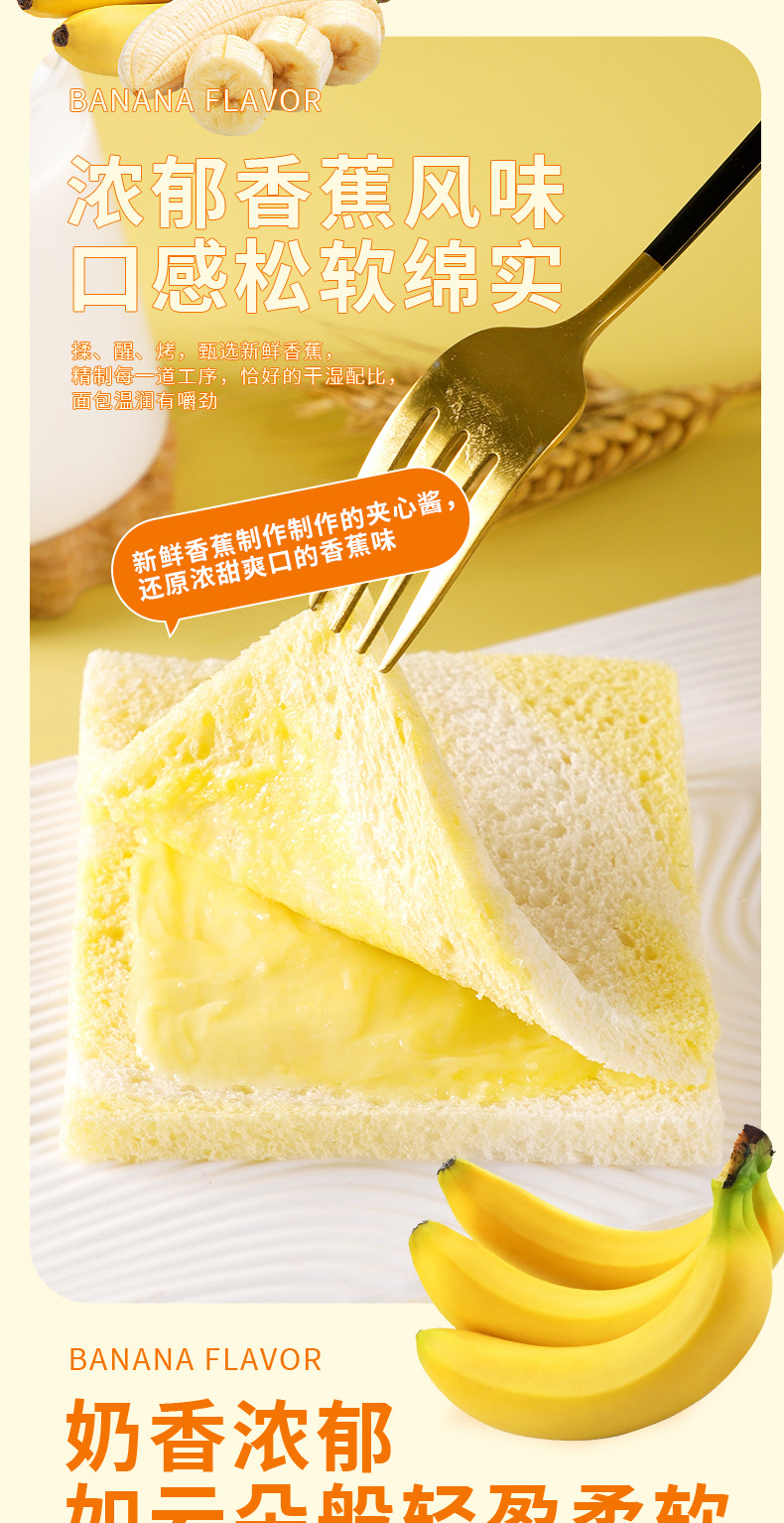 「浓郁香蕉味」壹得利魔方吐司香蕉牛奶味面包糕点心夜宵早休闲食品