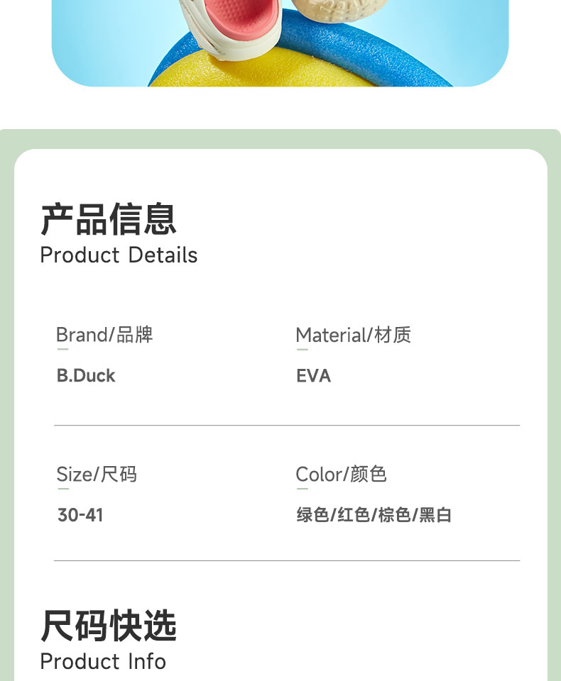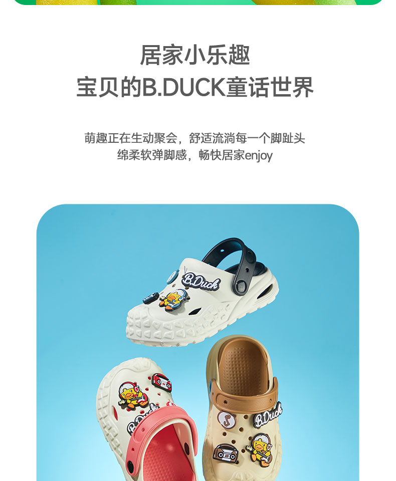 bduck小黄鸭家居鞋夏季儿童凉拖鞋洞洞鞋30-40 B1515952