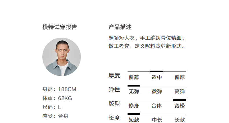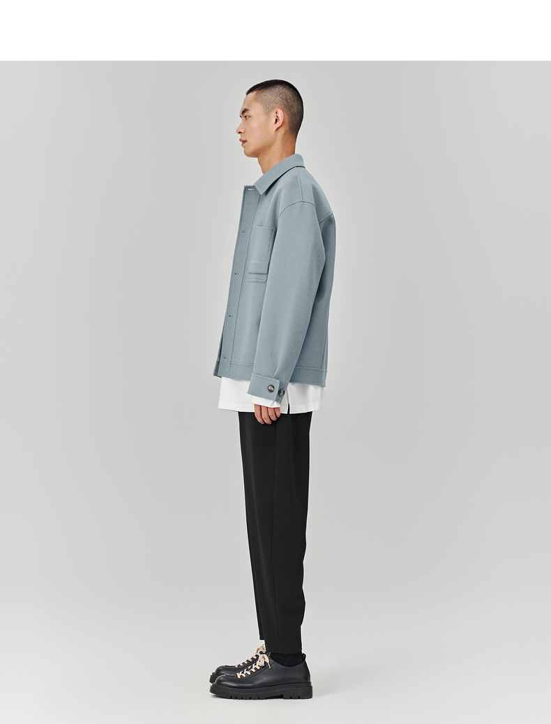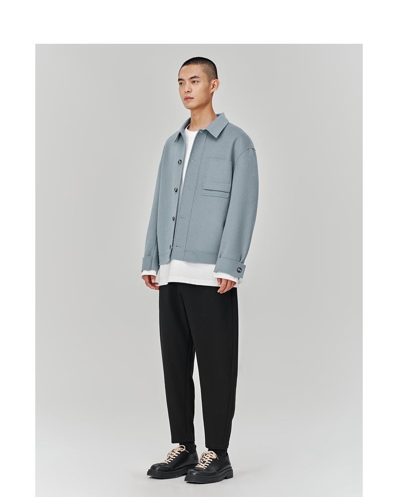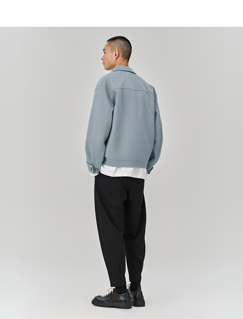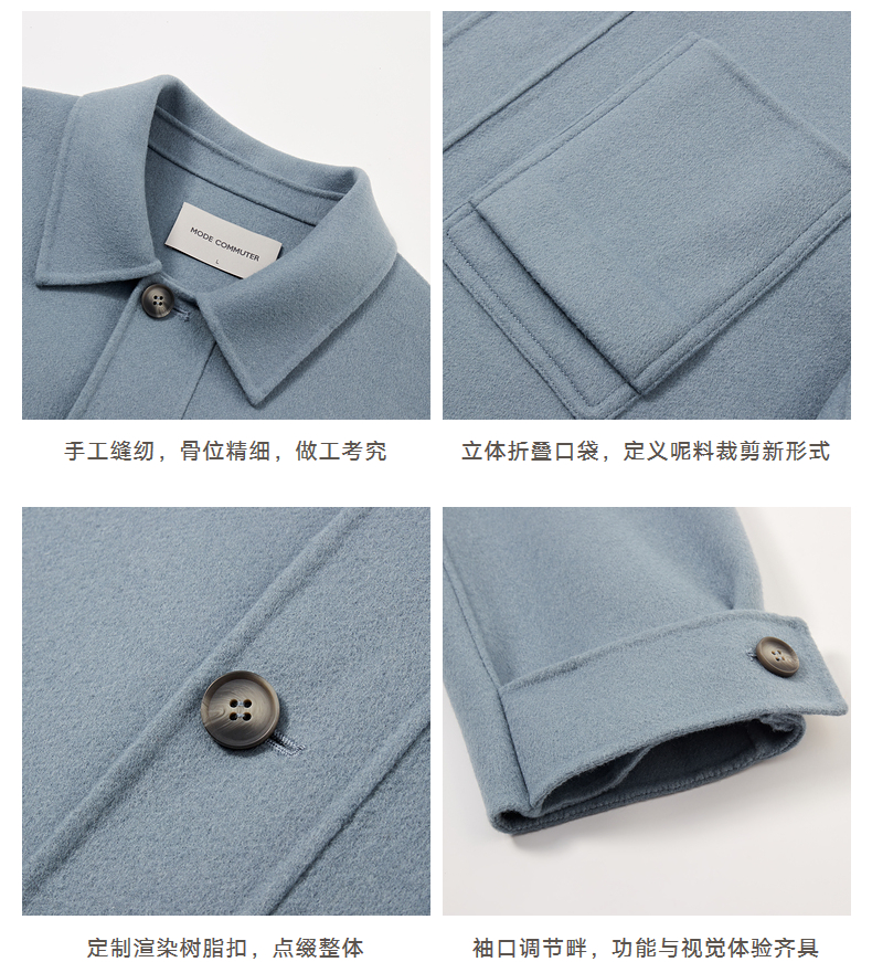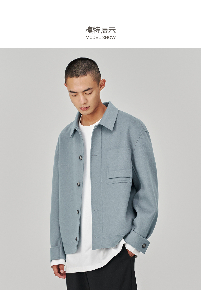 MC |MODE COMMUTER冬季翻领手工缝纫全羊毛短大衣男外套MCD106067J