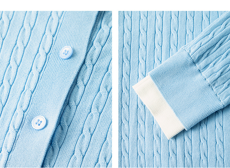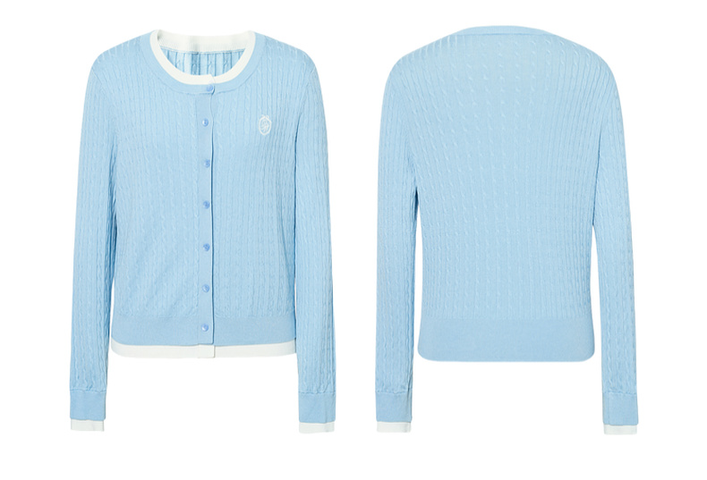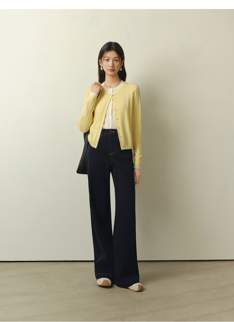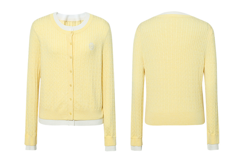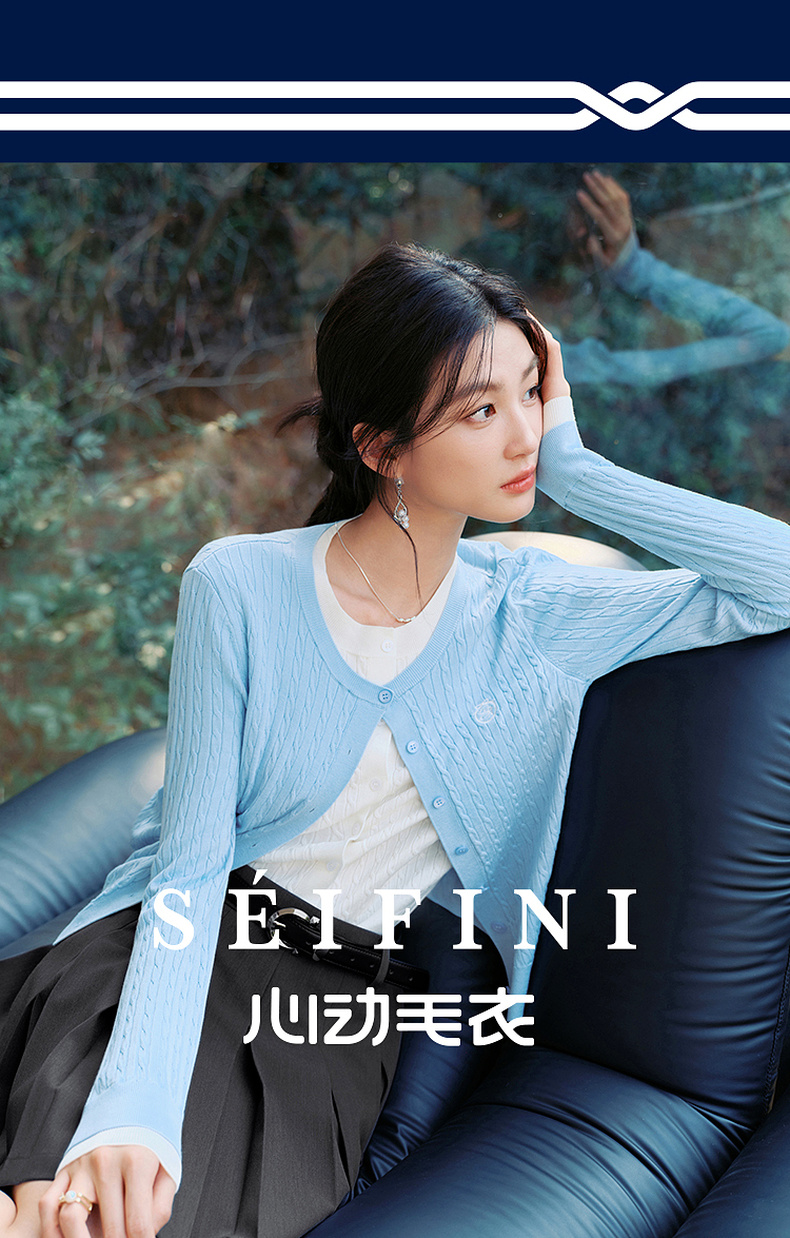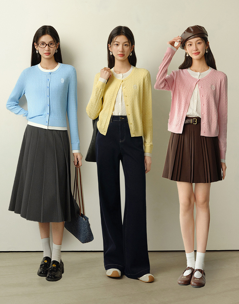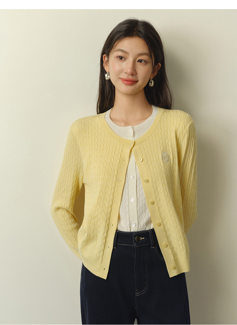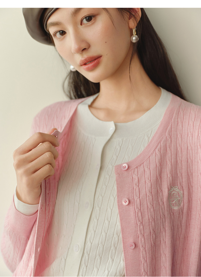 【严选】诗凡黎撞色假两件绞花针织开衫2026春新款刺绣圆领拼接设计感毛衣7HC430541