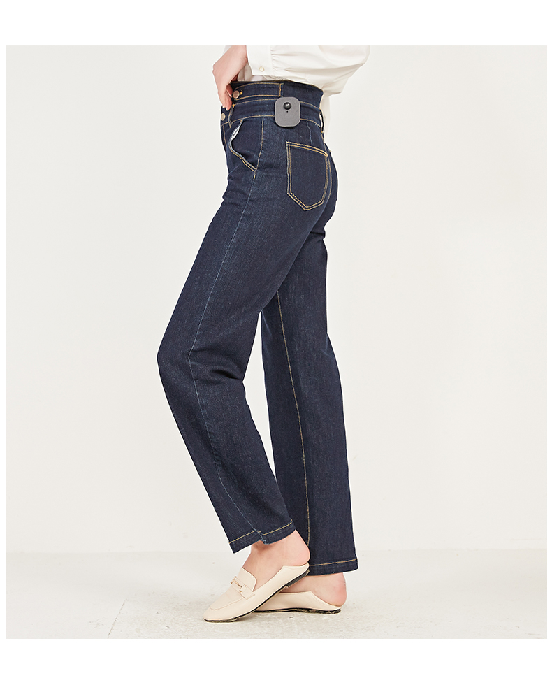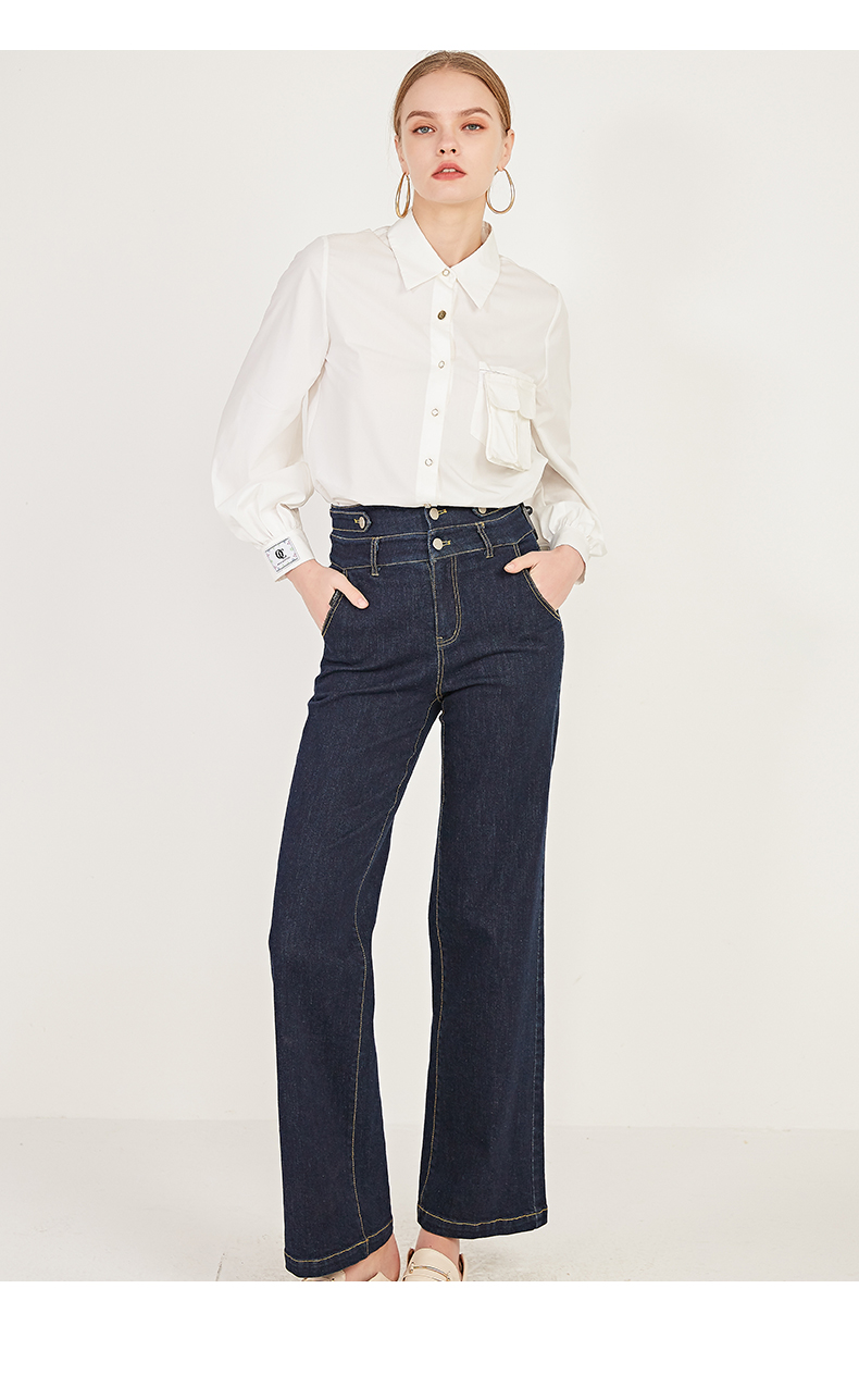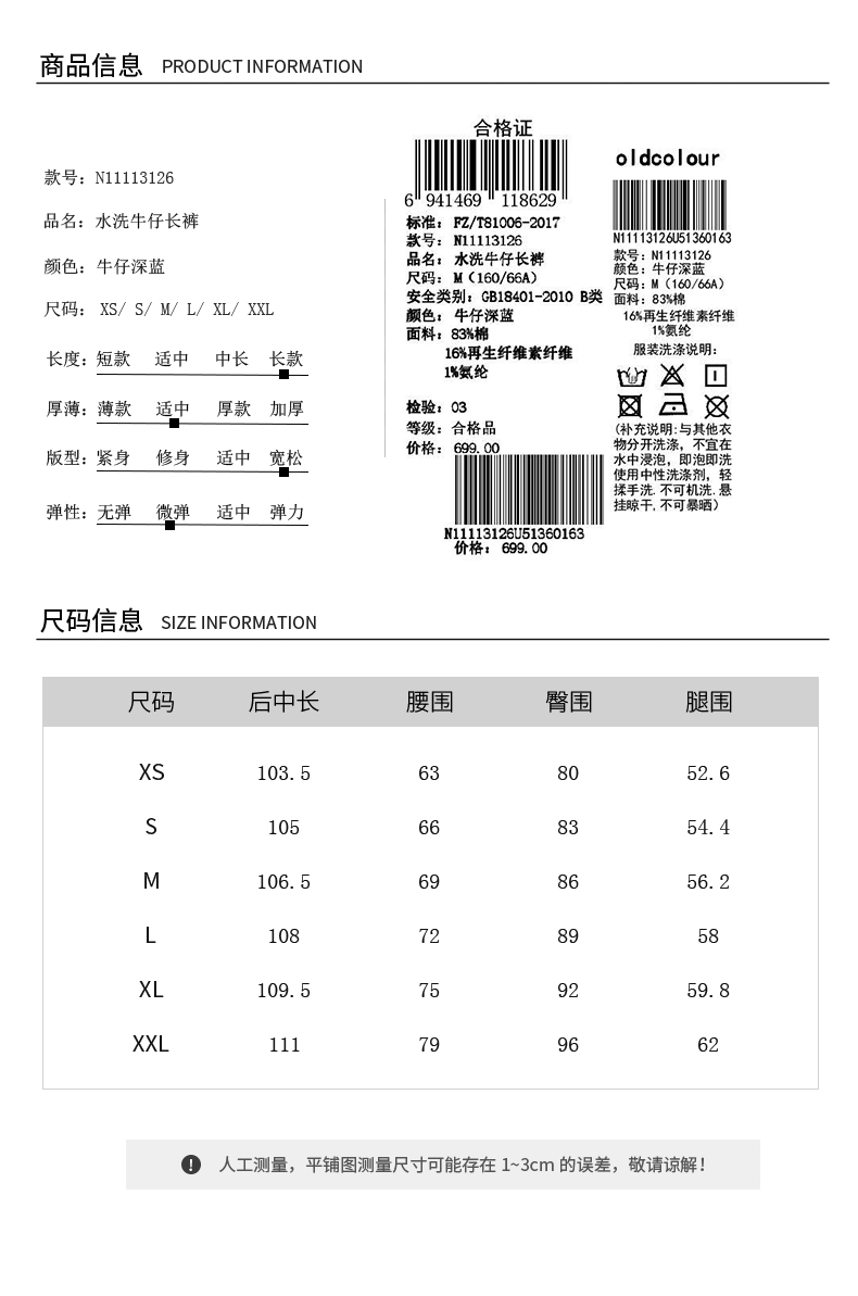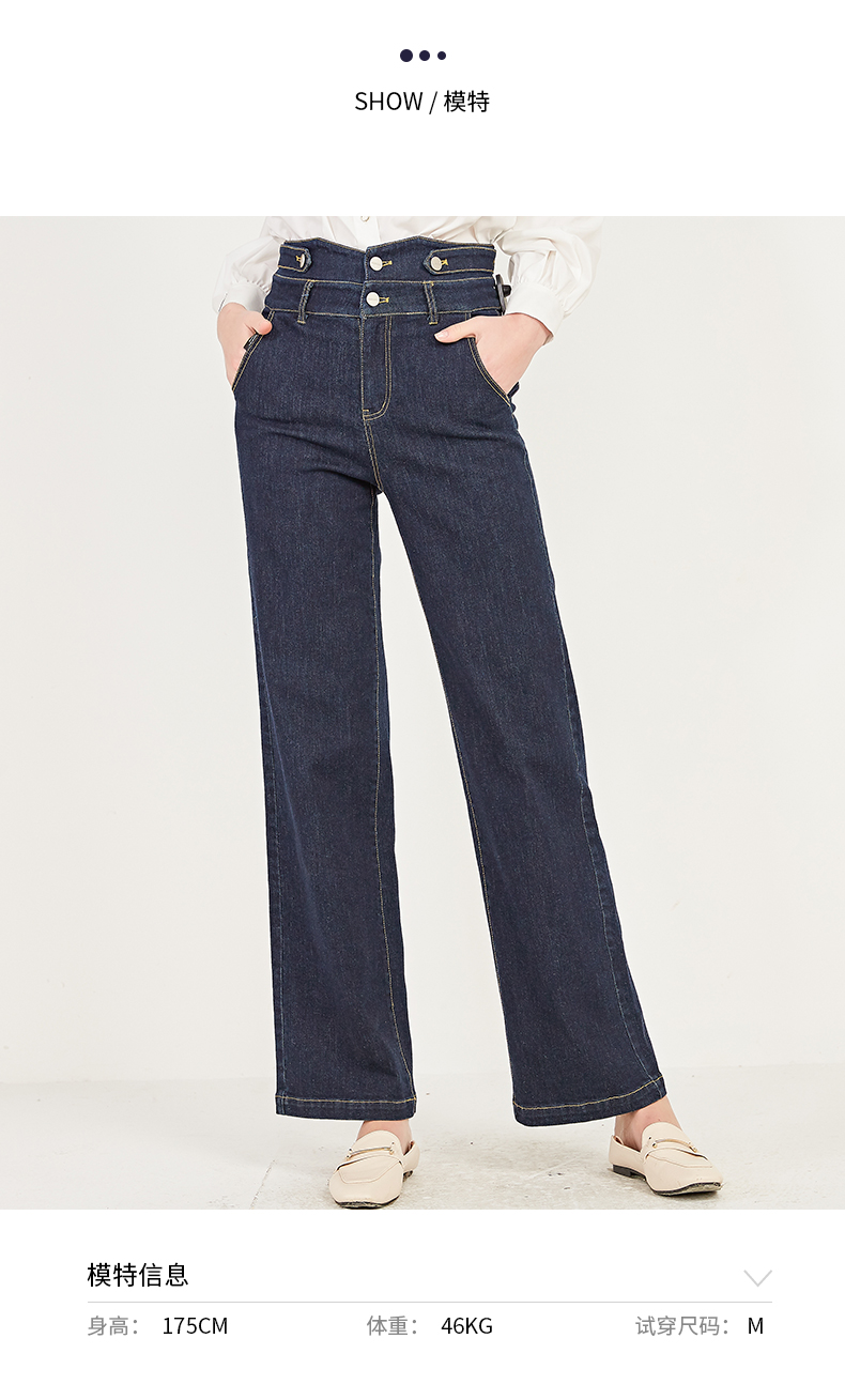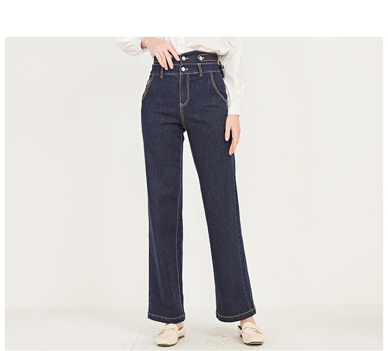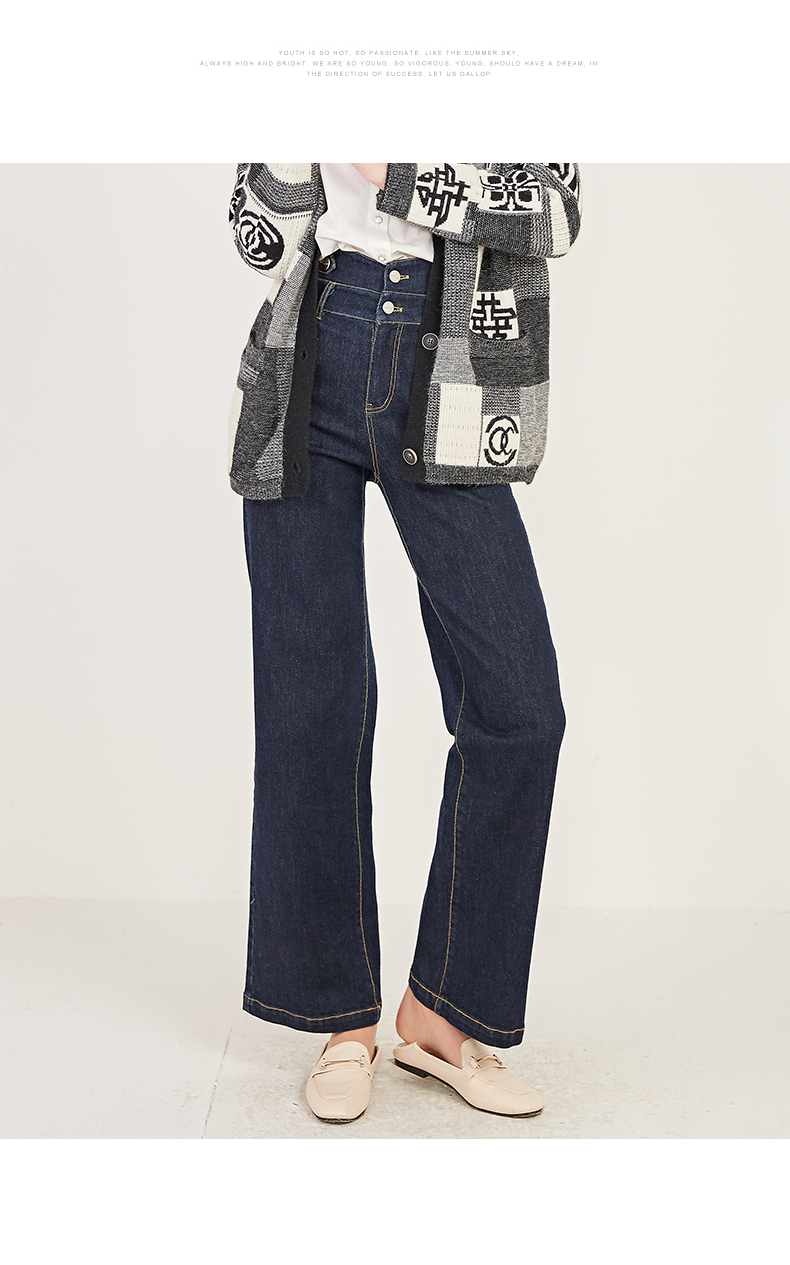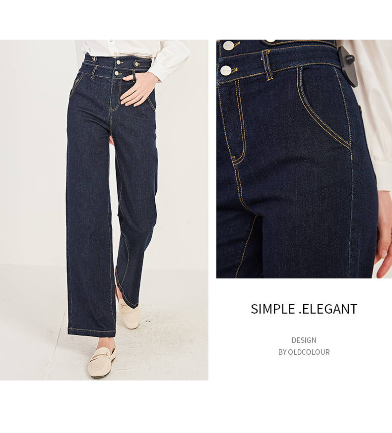 oldcolour春季新款高腰气质显腿长休闲深色牛仔长裤女N11113126