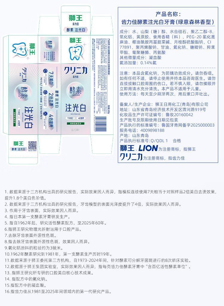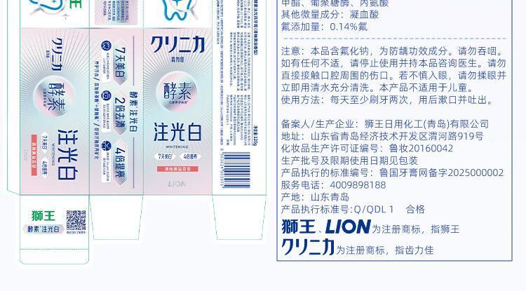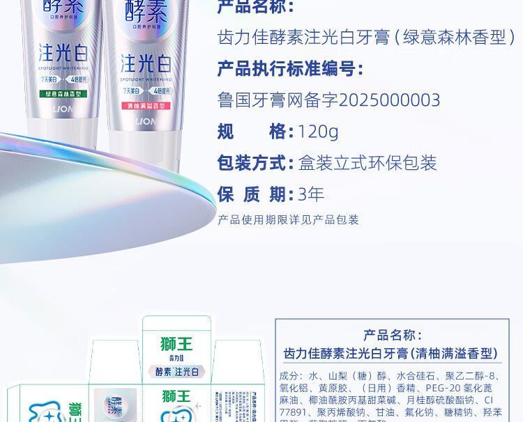 狮王酵素注光白牙膏清柚满溢+绿意森林套盒/单支装 美白去牙渍护龈