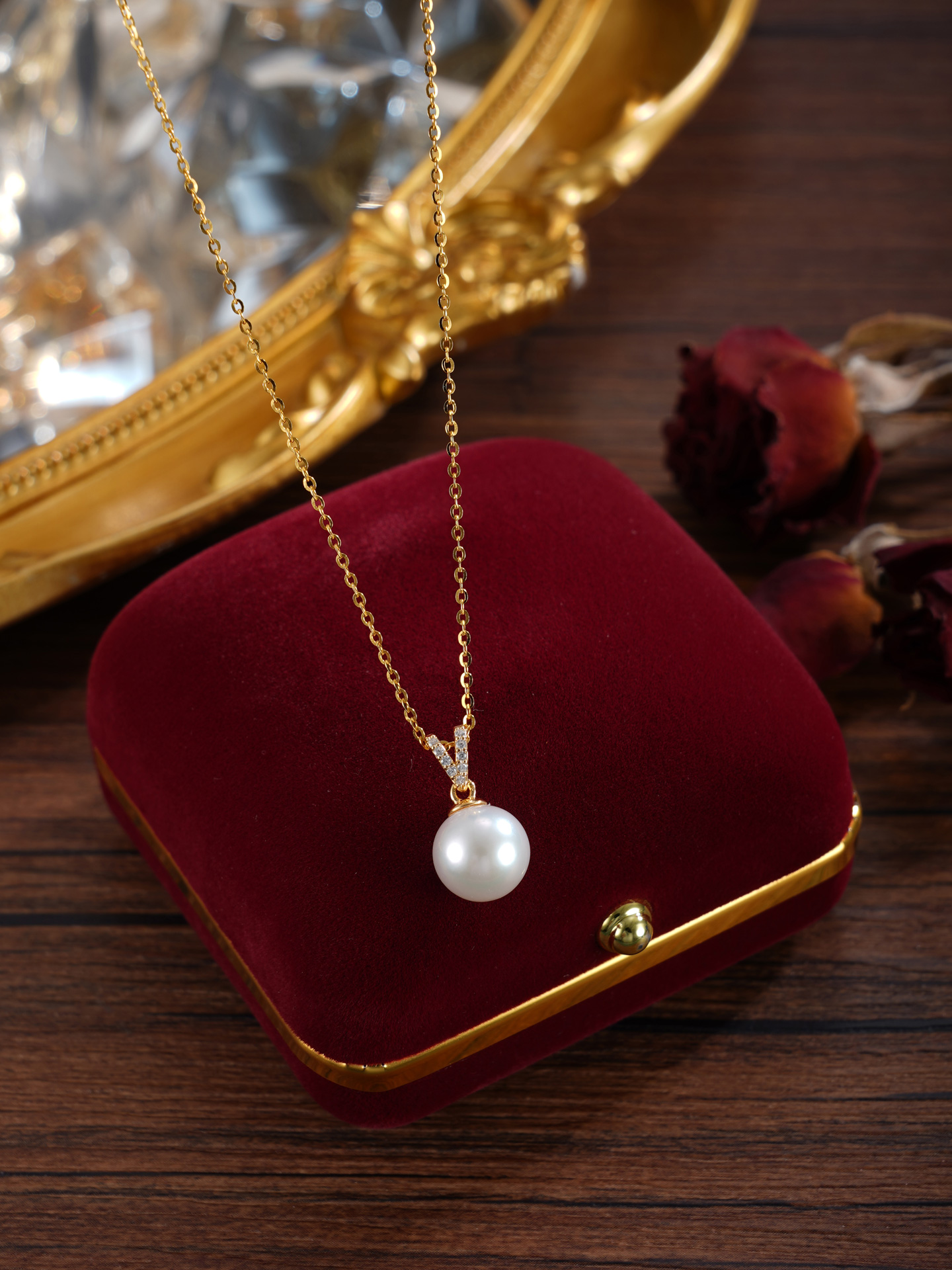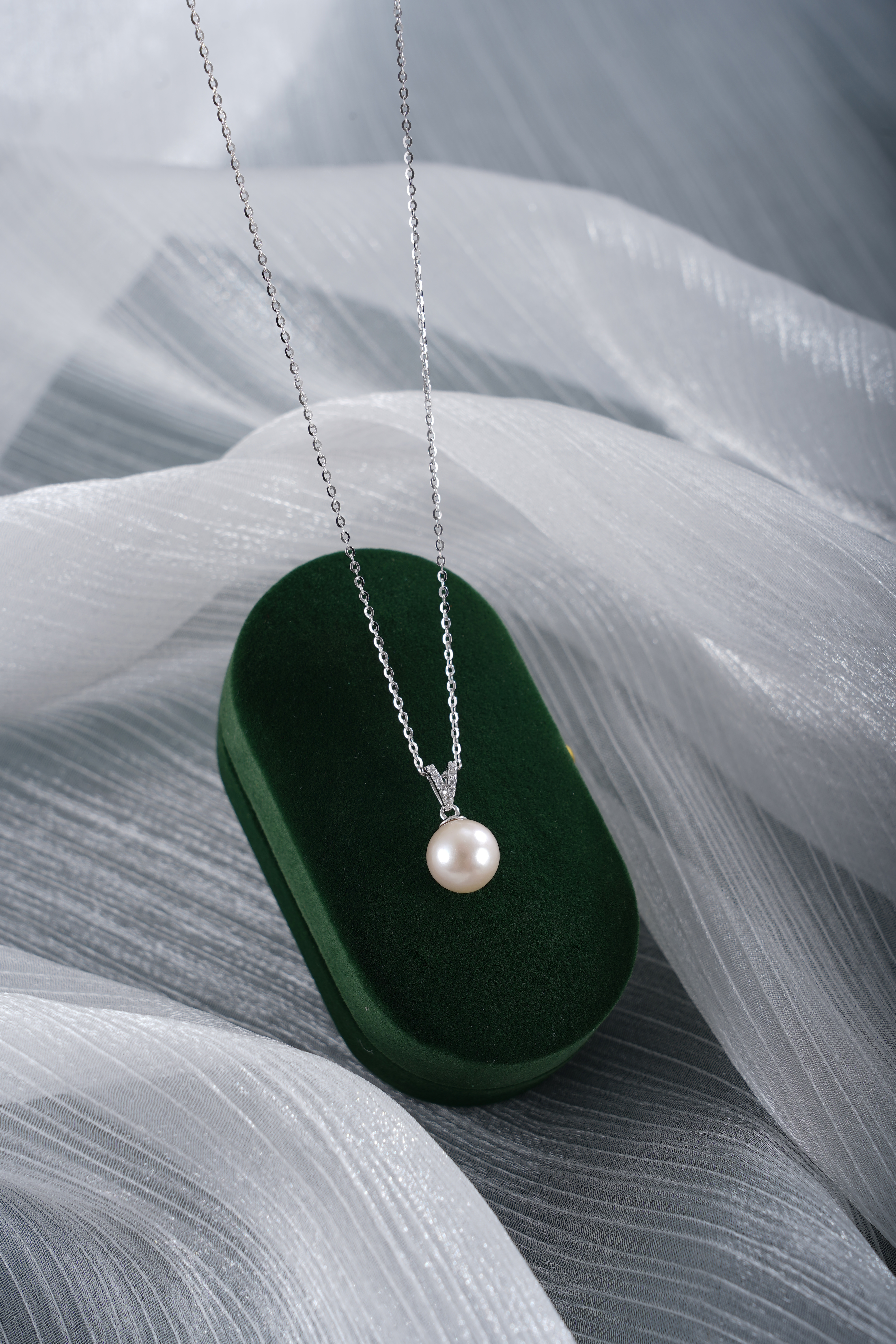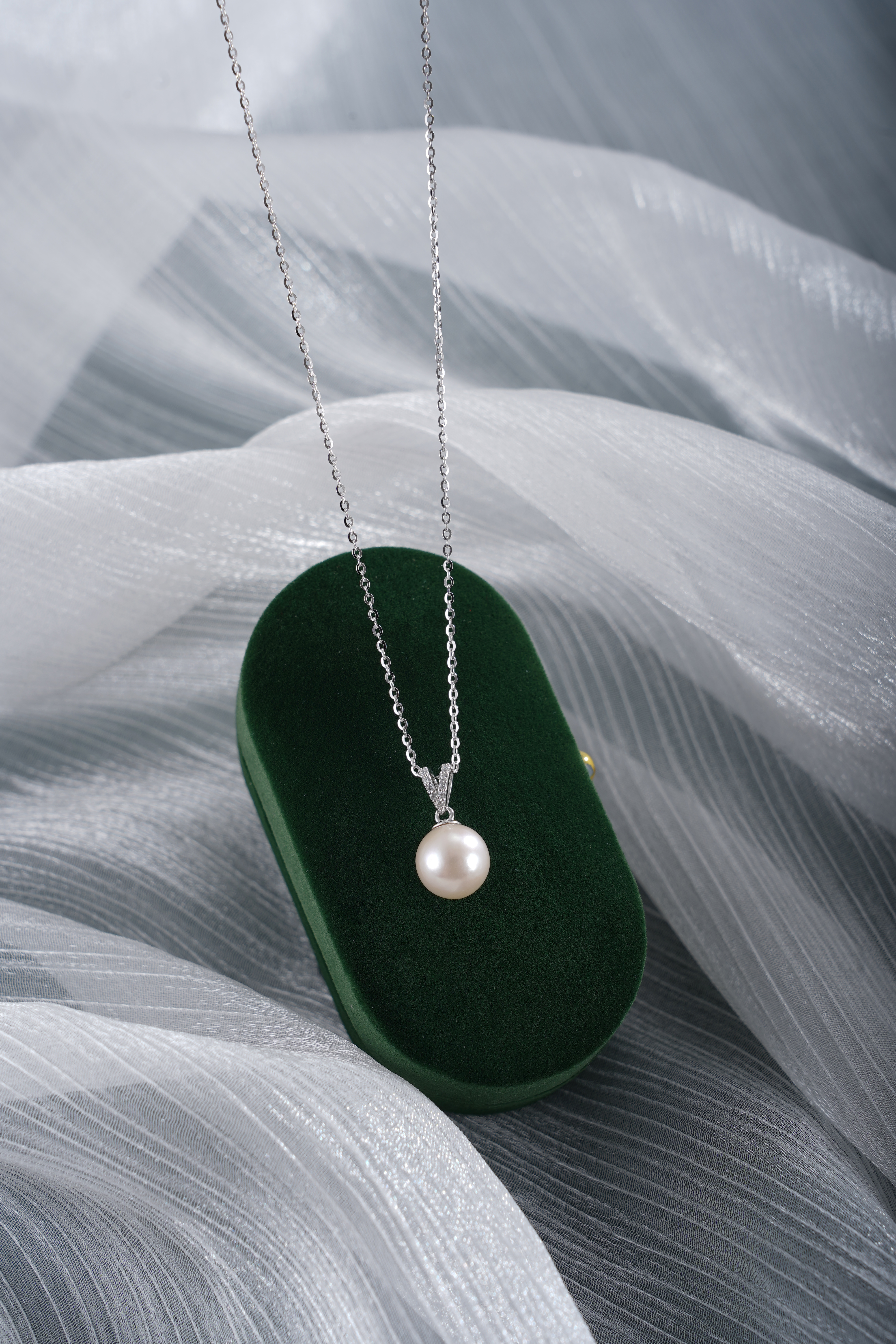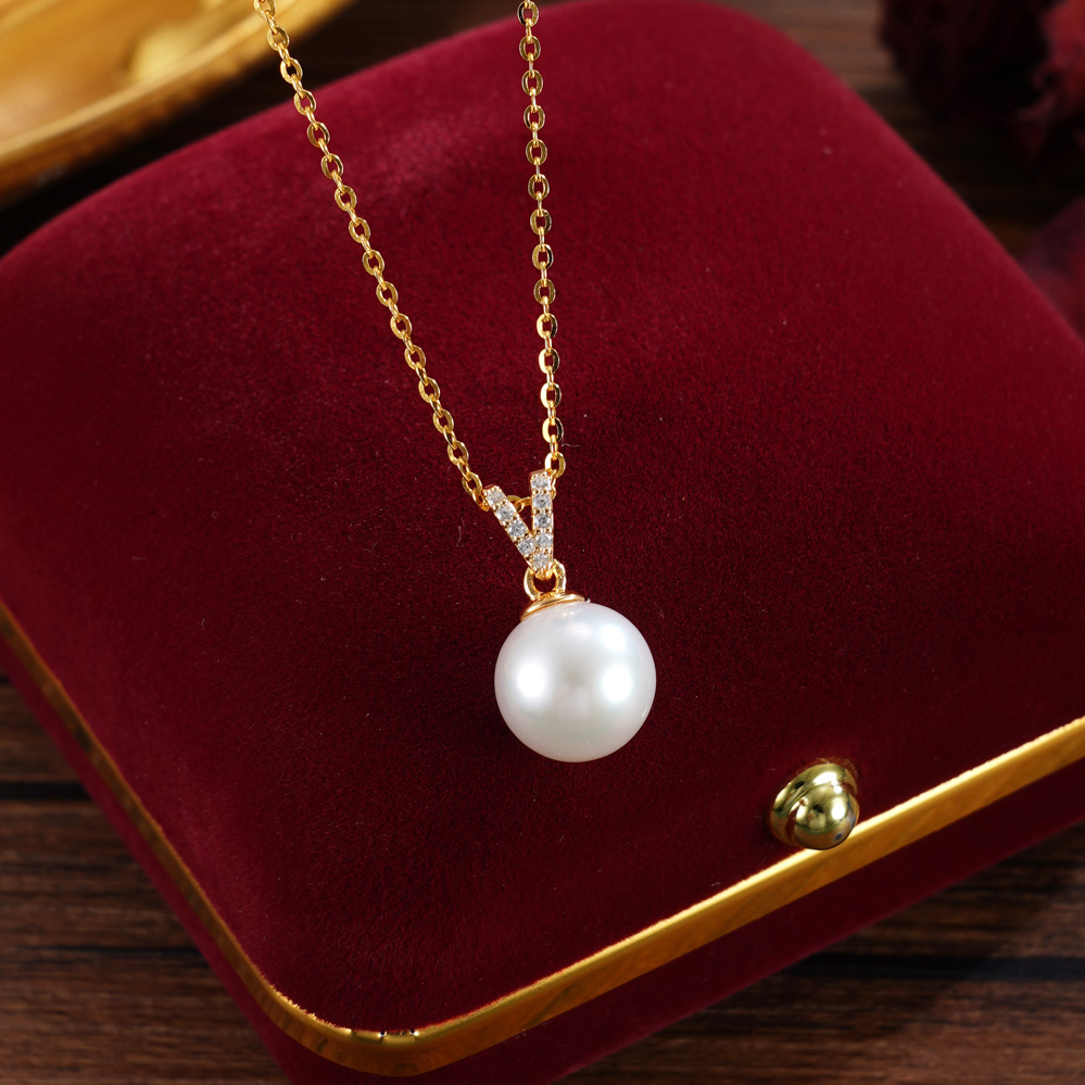 子佩集【月河星野】银S925珍珠惜王妃套链【P3028】9mm珠双色吊球V字2601