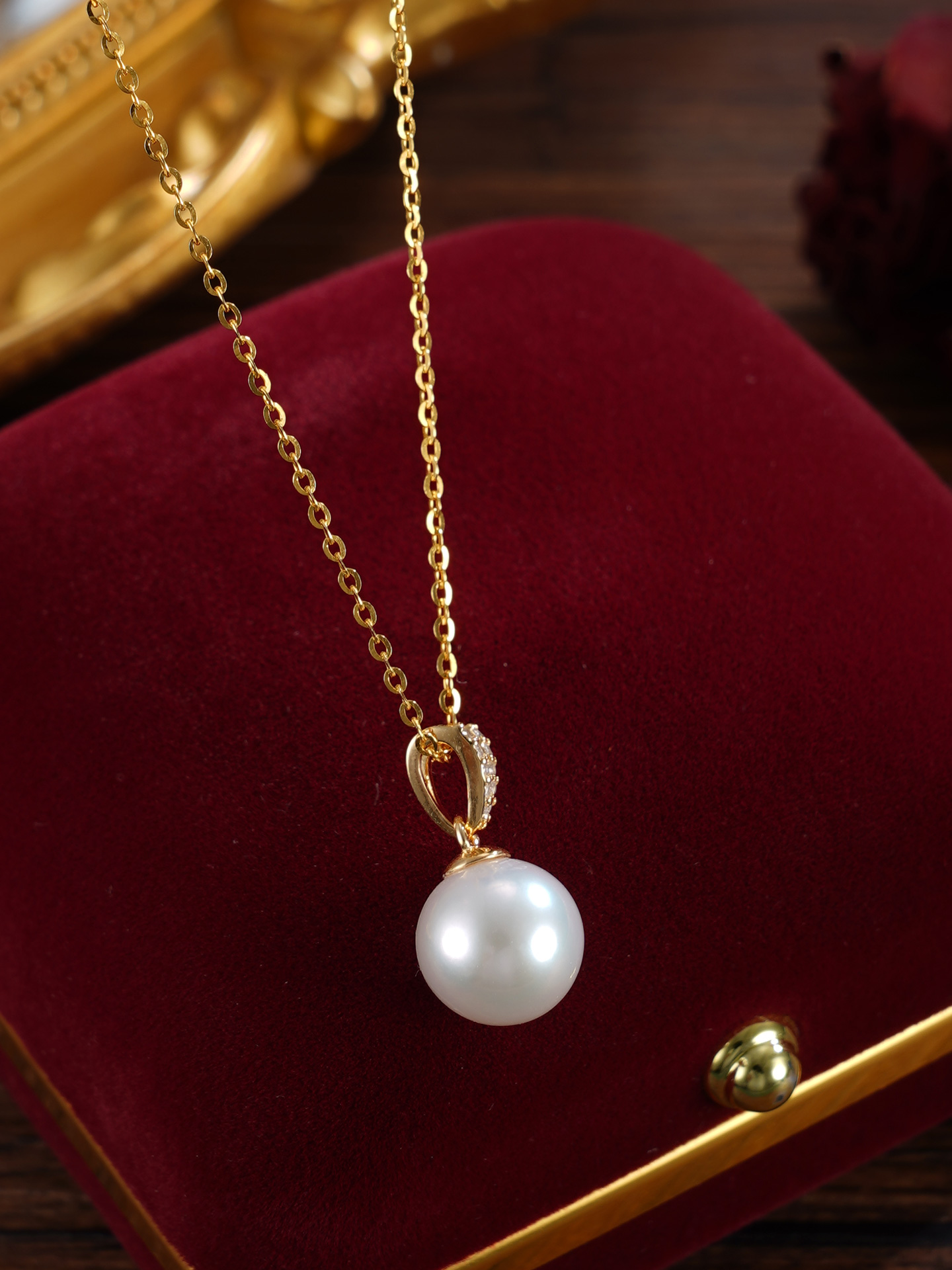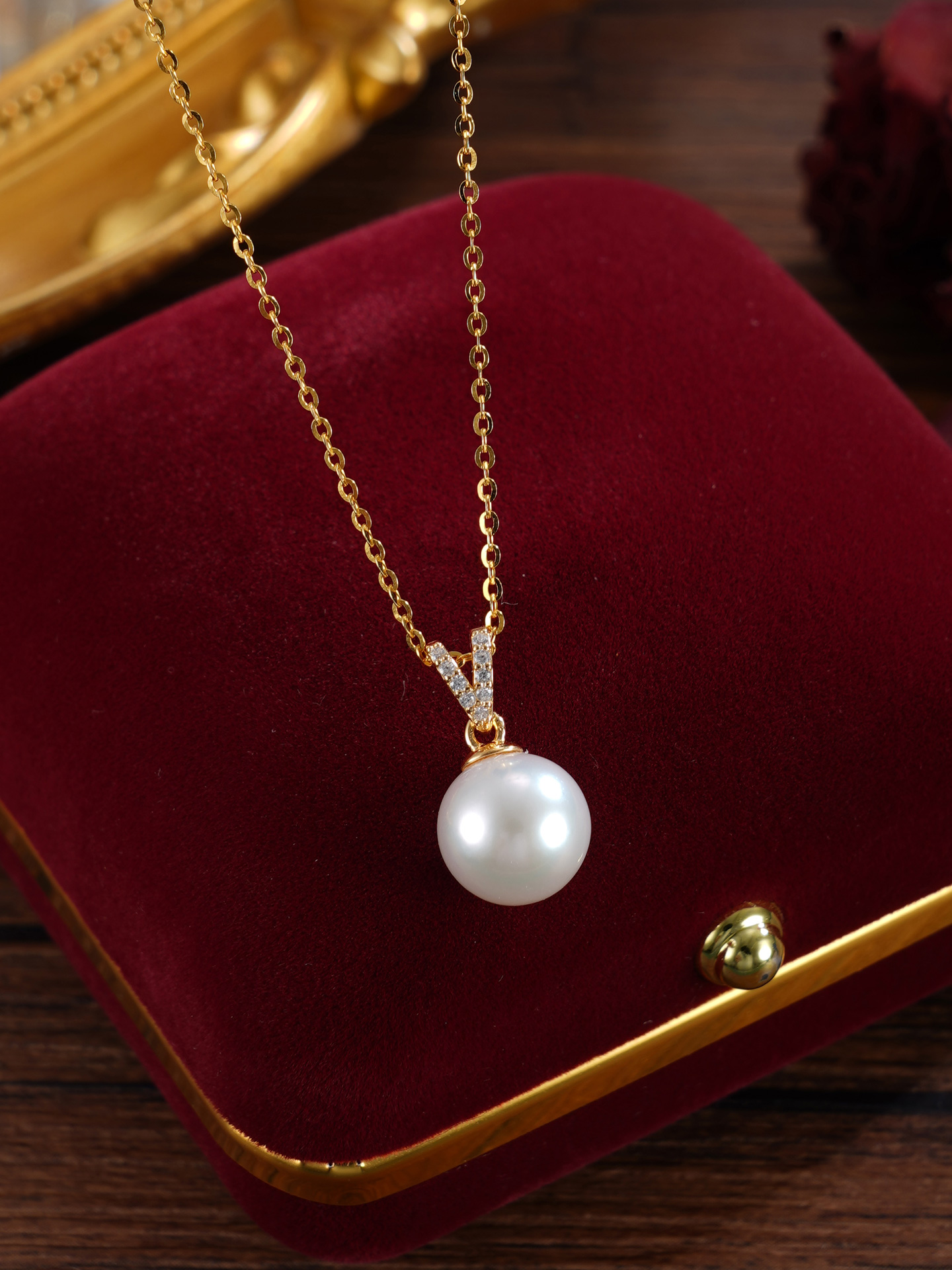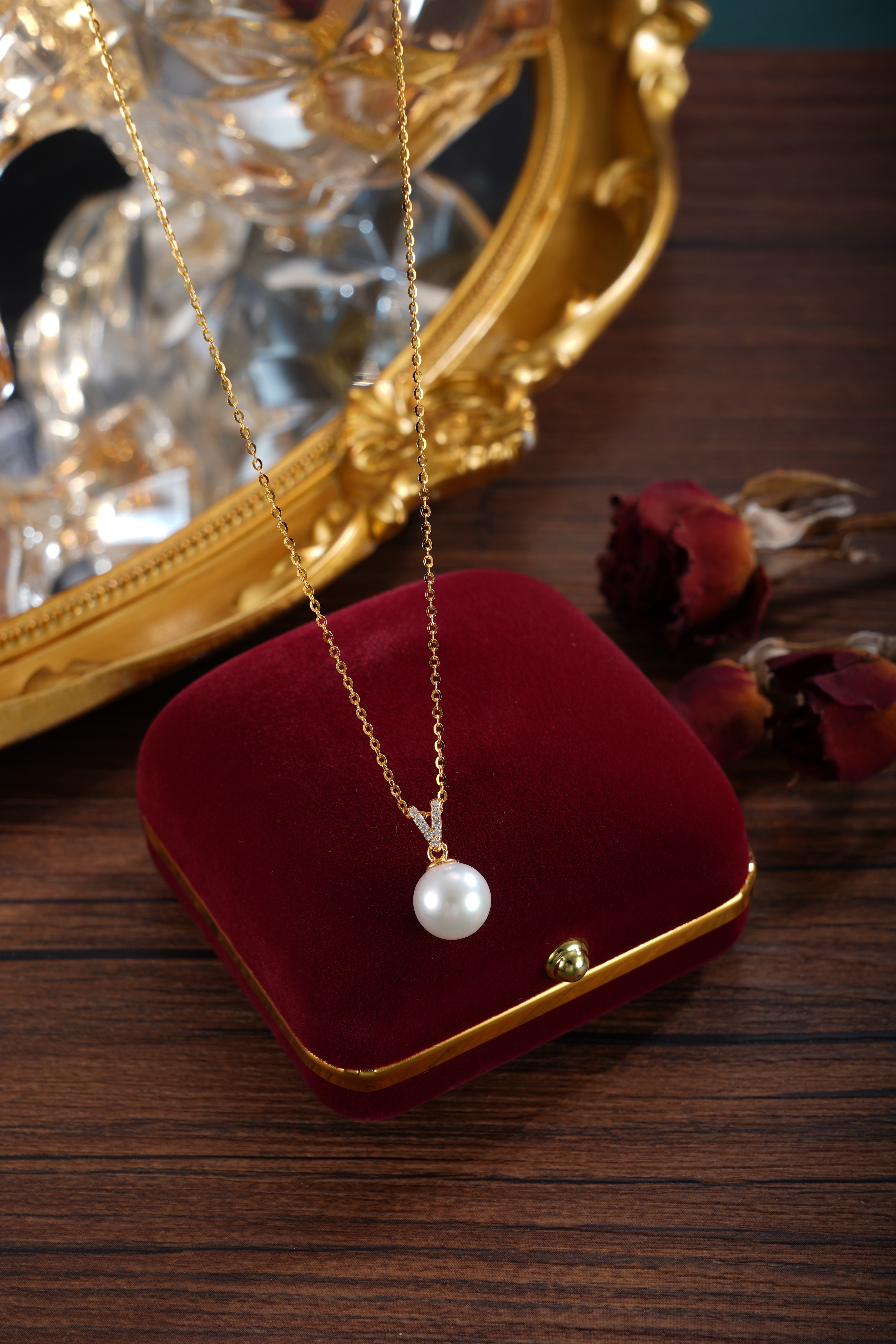子佩集【月河星野】银S925珍珠惜王妃套链【P3028】9mm珠双色吊球V字2601