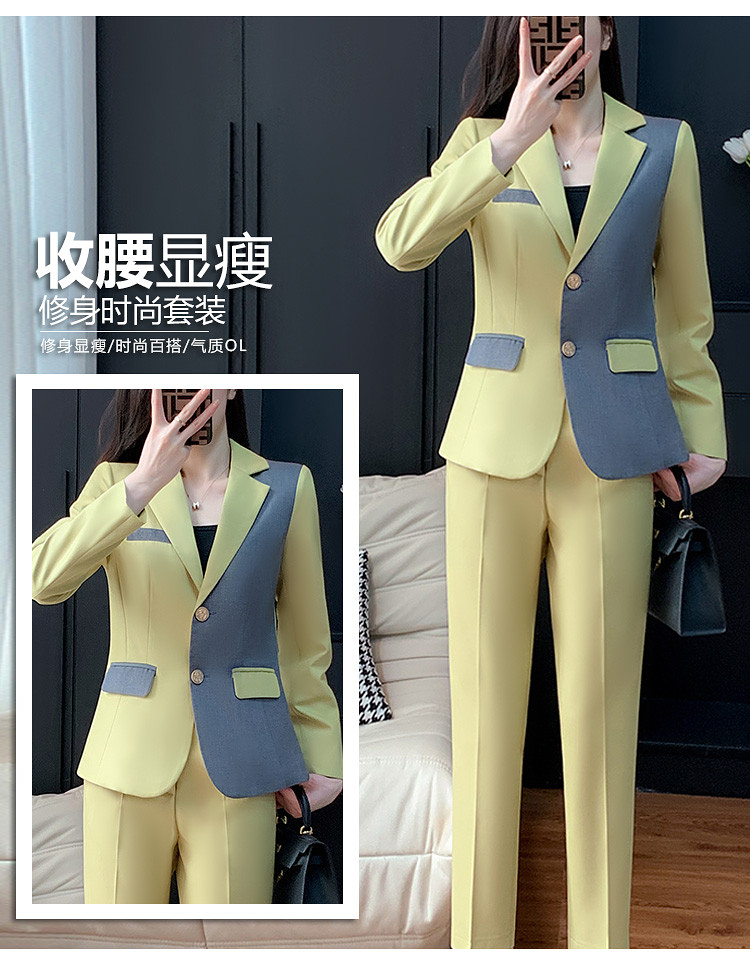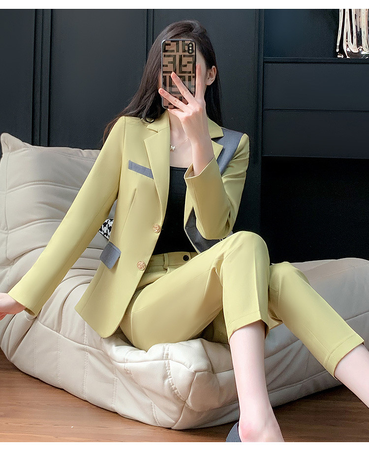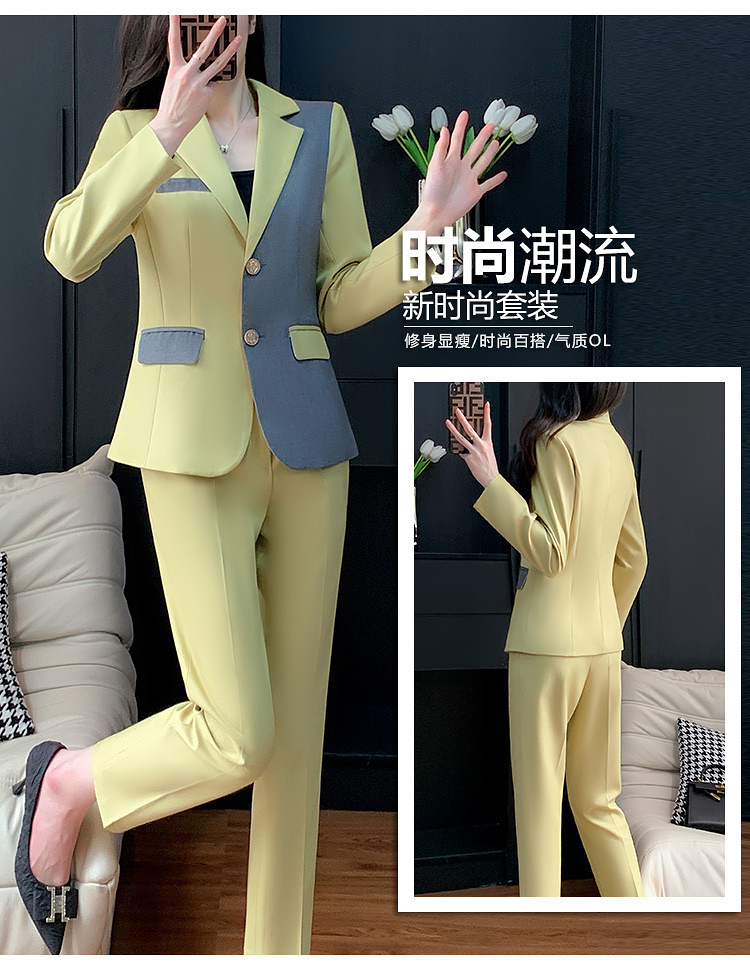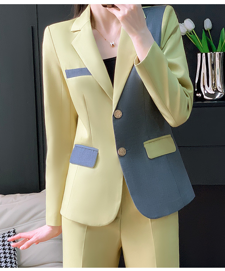 奢姿女装2025新款气质翻驳领职业套装女士灰色拼接时尚西装两件套250082185