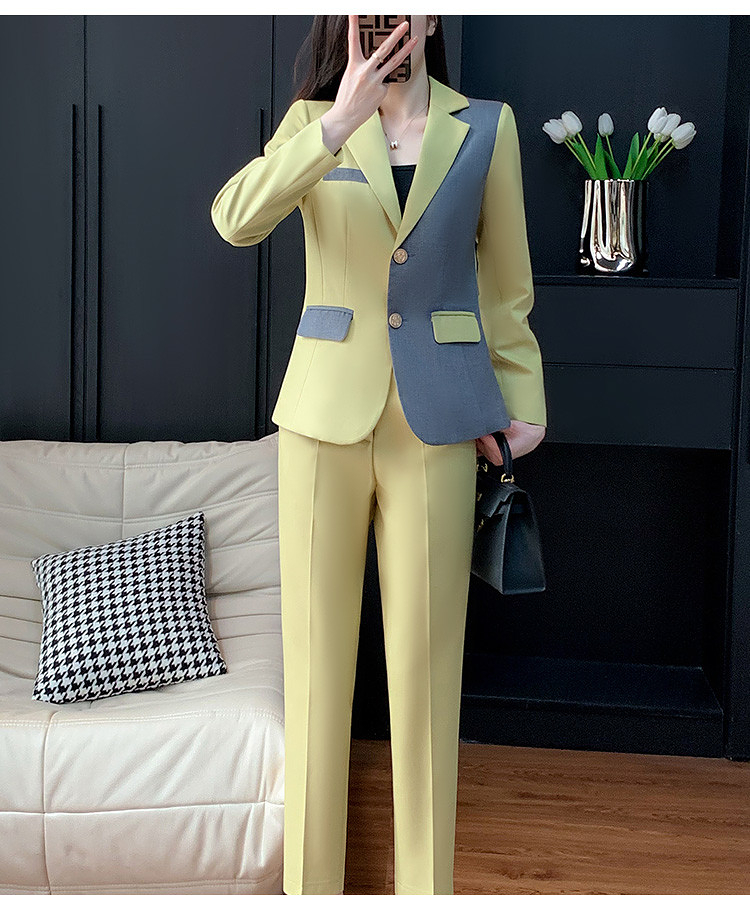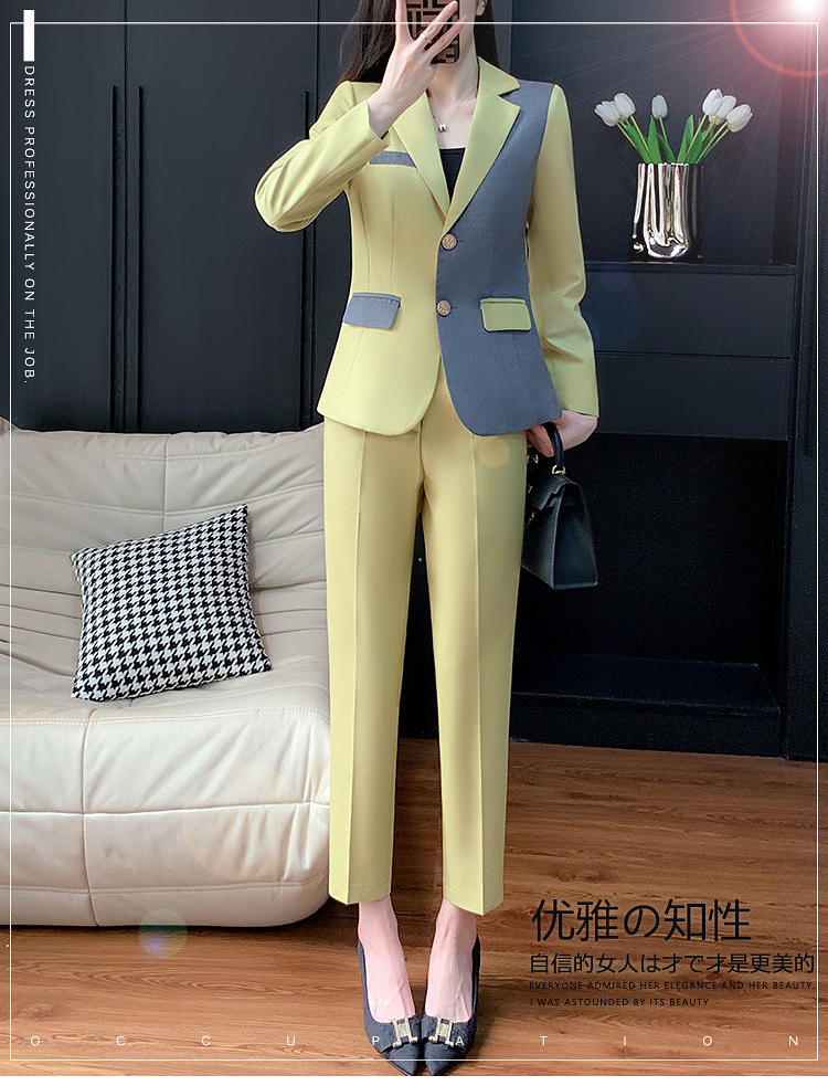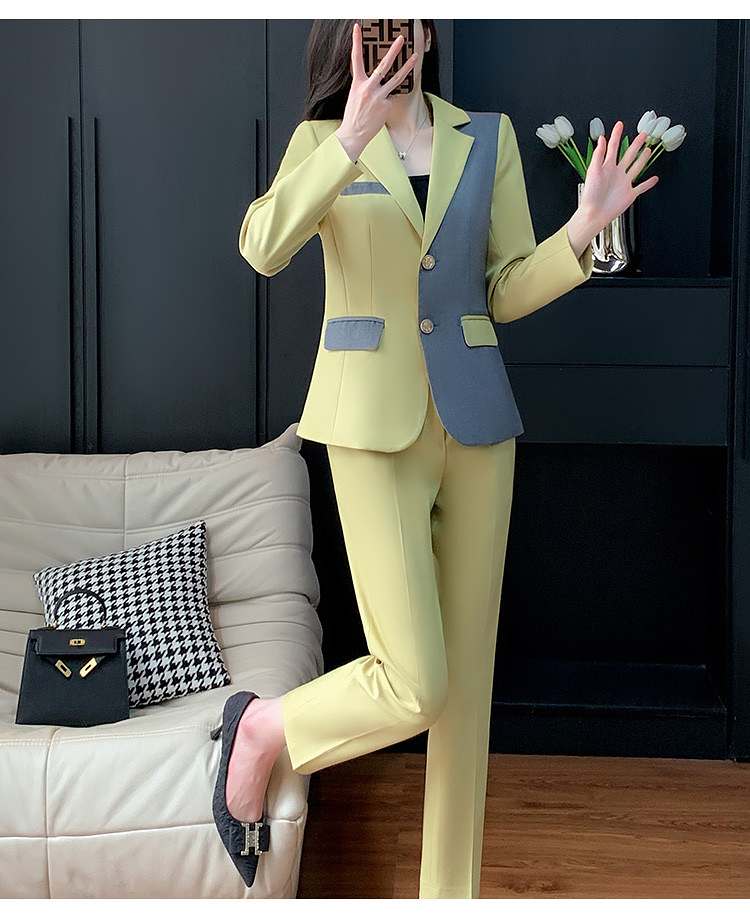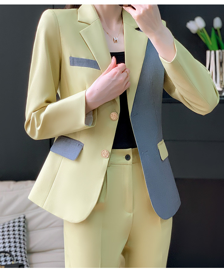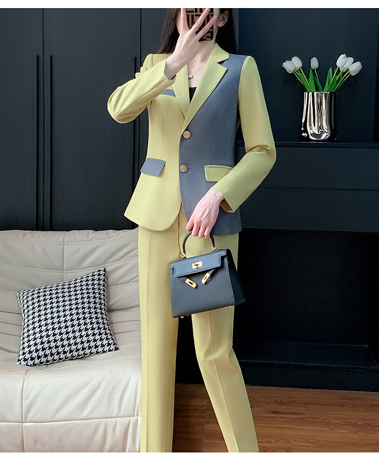 奢姿女装2025新款气质翻驳领职业套装女士灰色拼接时尚西装两件套250082185