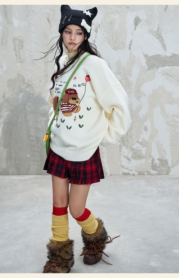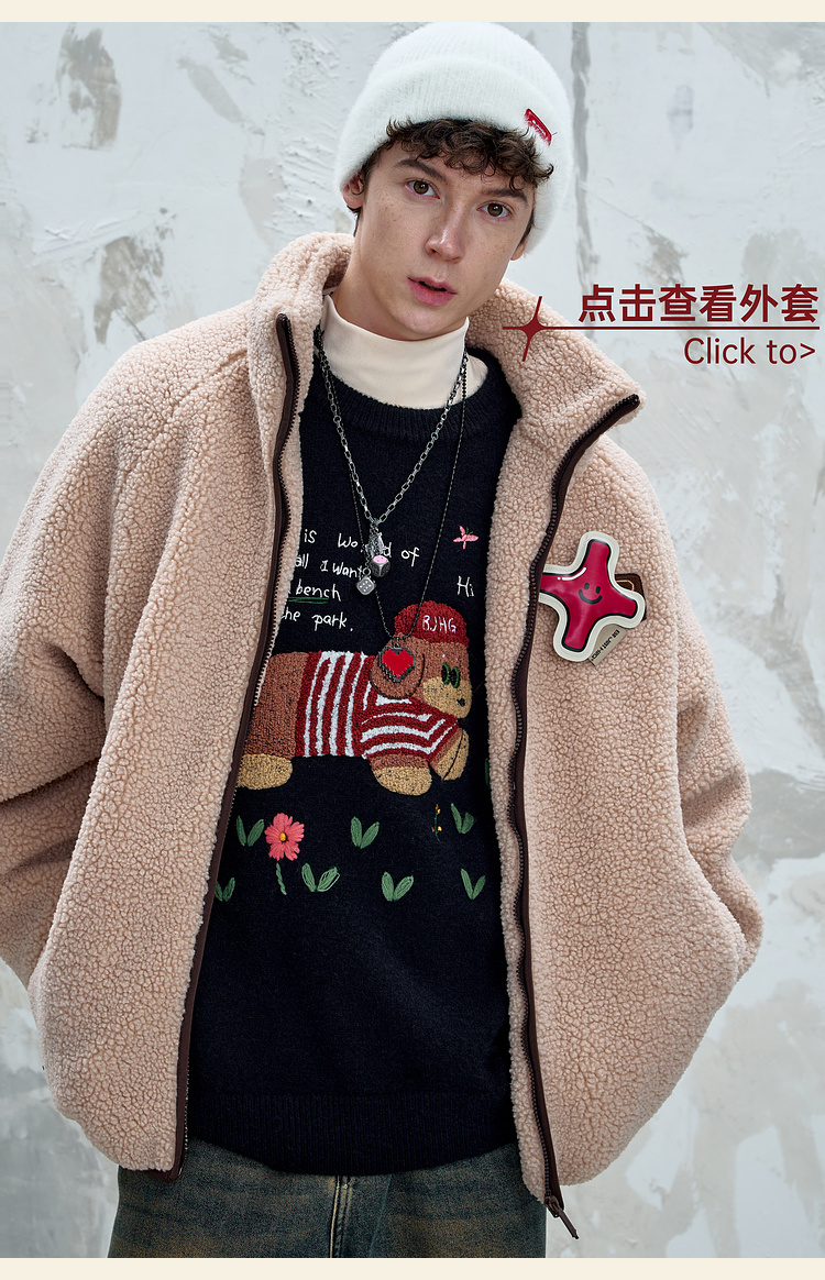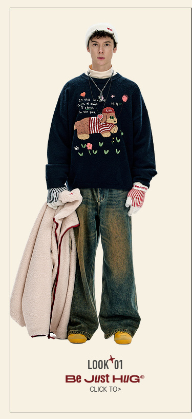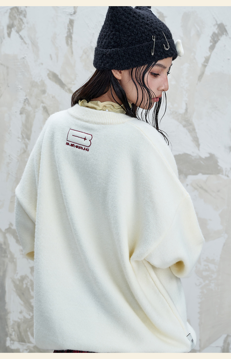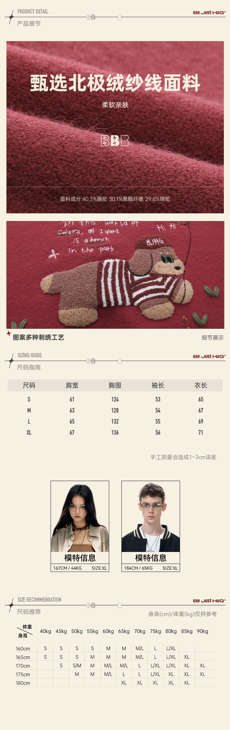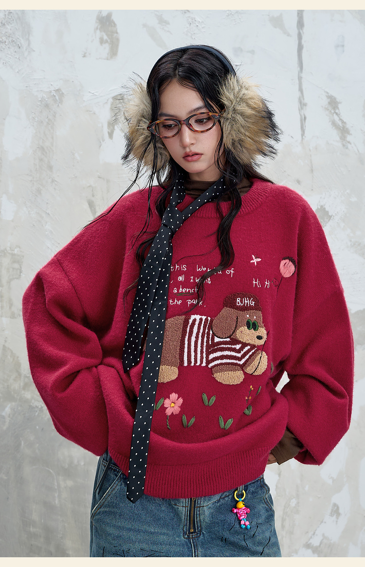BJHG不计后果新款小狗毛衣男款秋季复古撞色圆领套头针织衫毛衣女