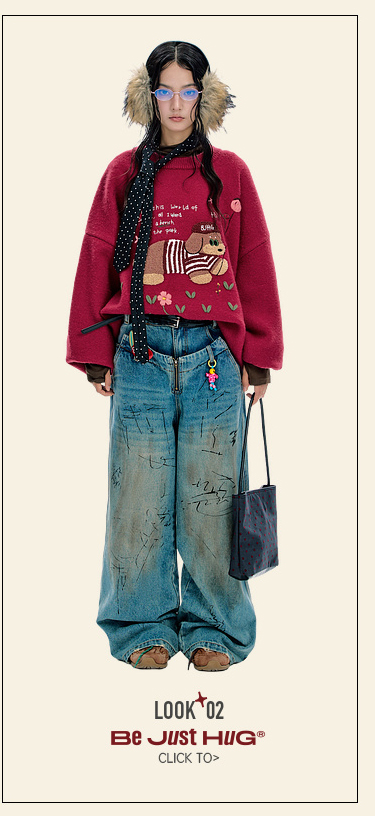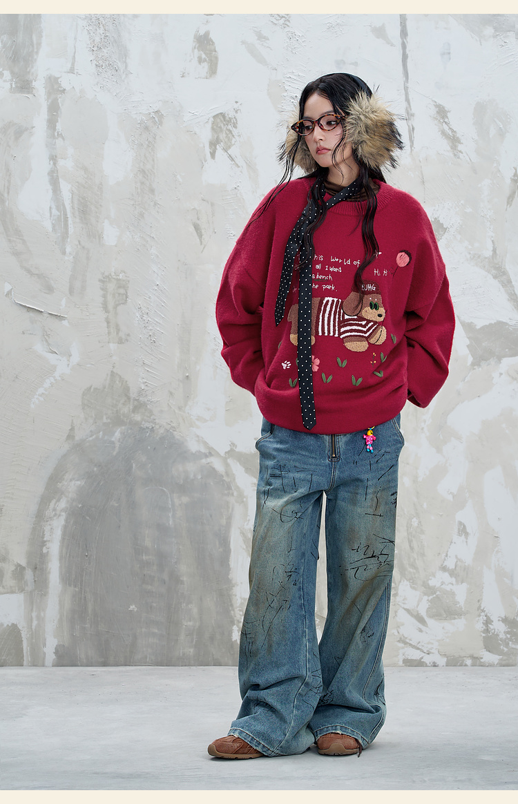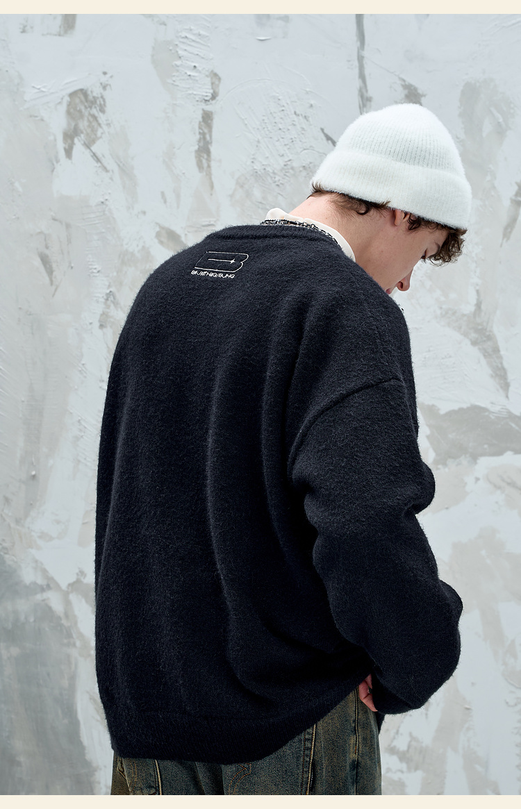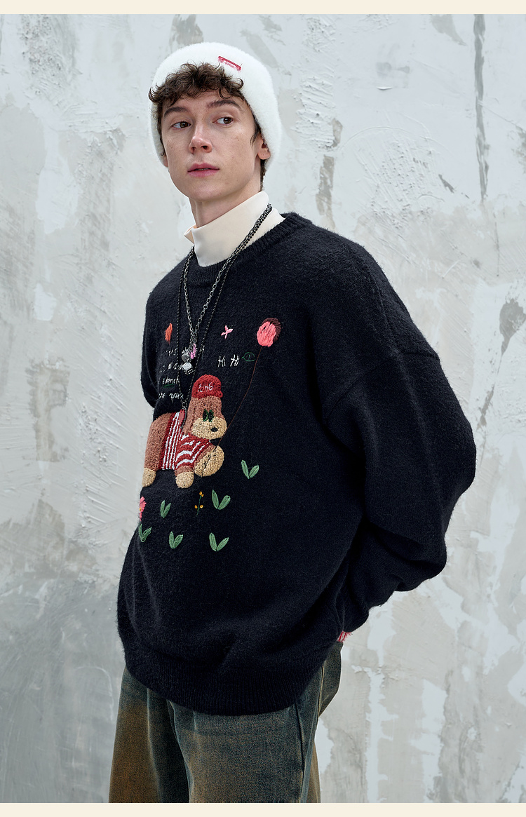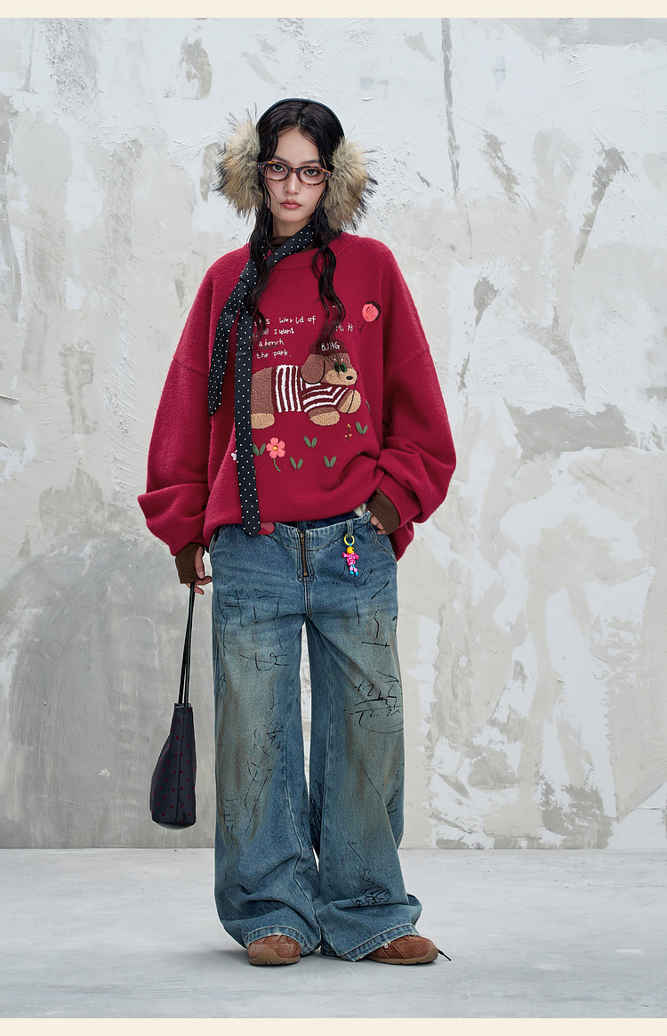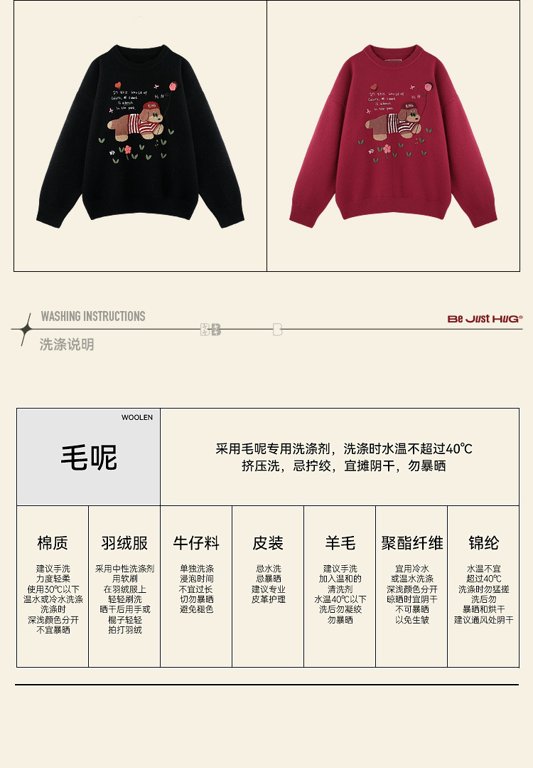 BJHG不计后果新款小狗毛衣男款秋季复古撞色圆领套头针织衫毛衣女