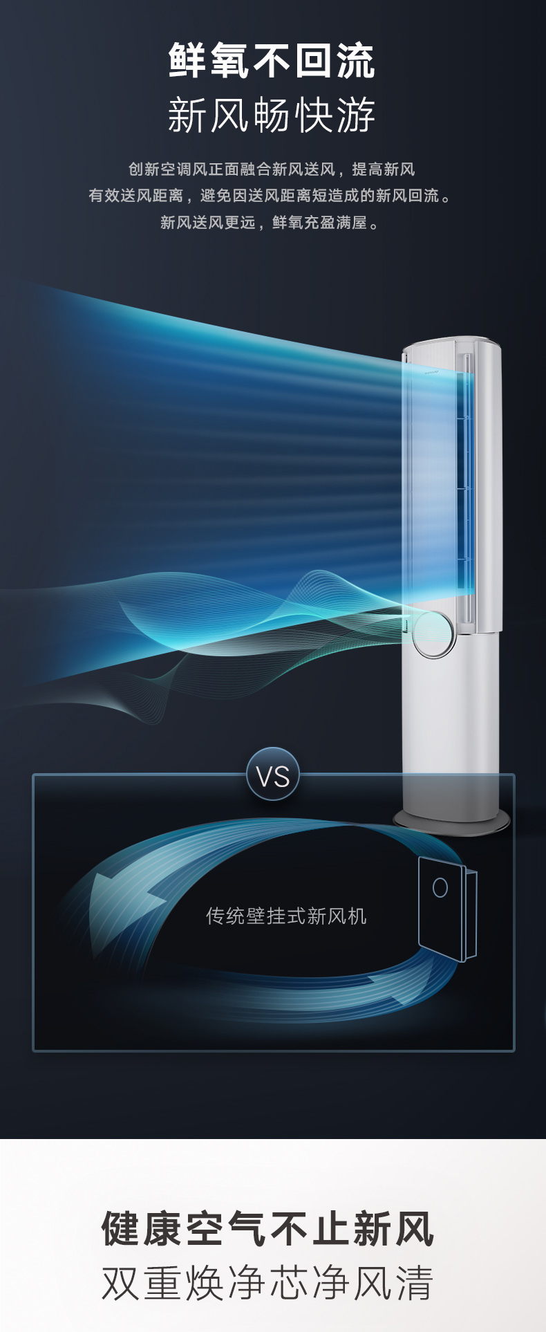 臻新风变频冷暖3匹1级能效柜机空调KFR-72LW/(72582)FNhCd-B1(含管)顶(珍珠黑)(WIFI)