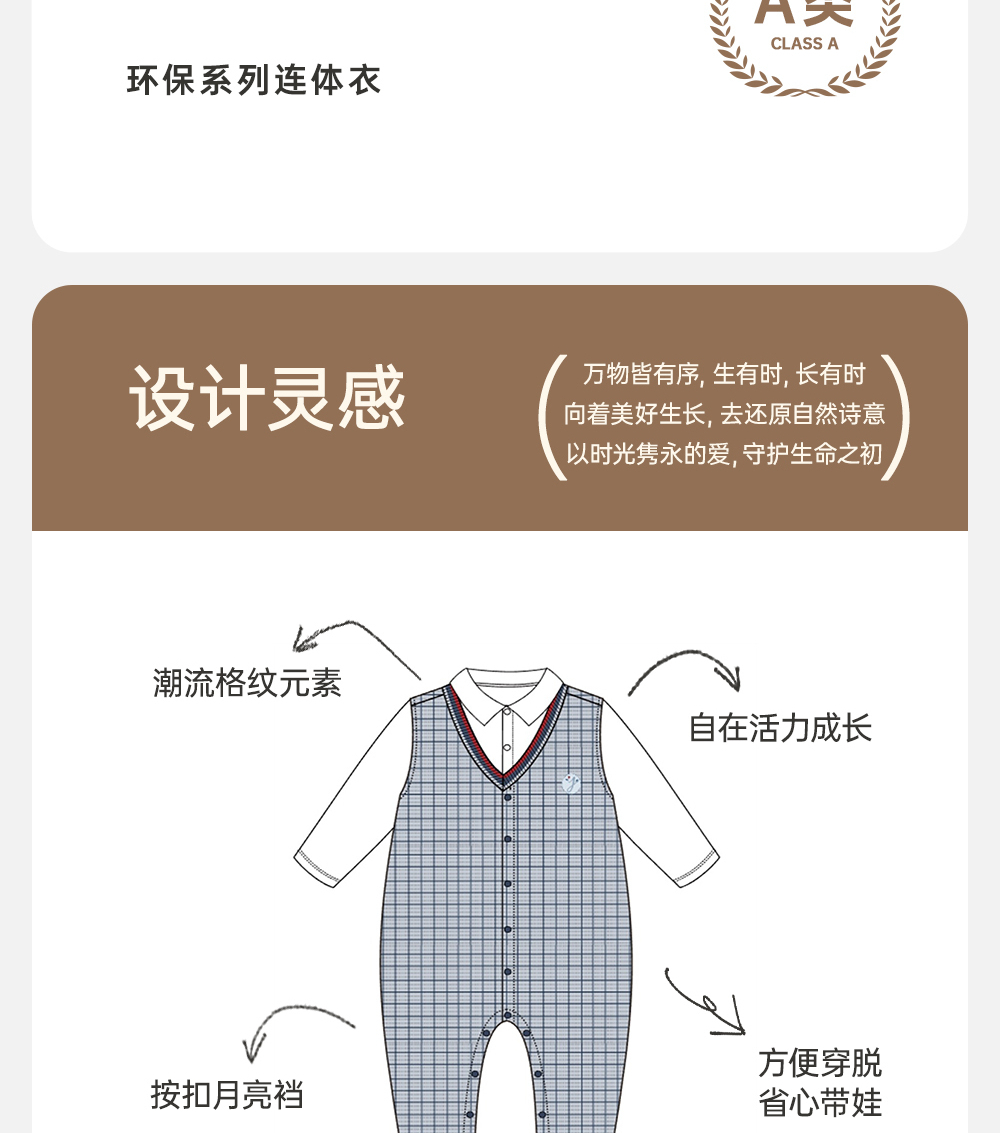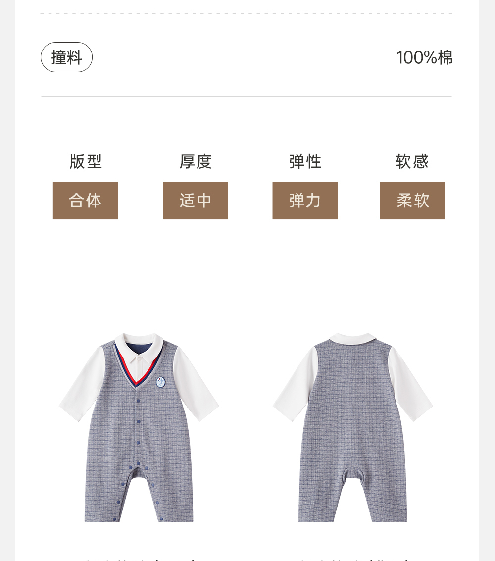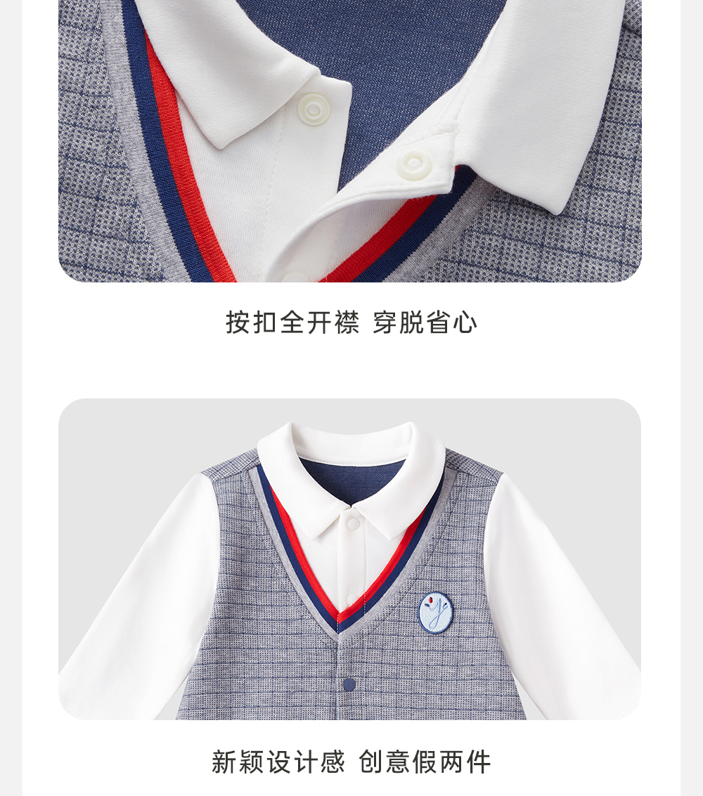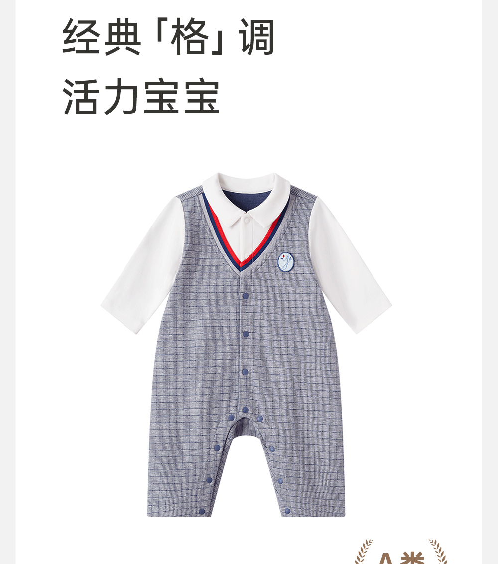 英氏男宝宝连体衣春秋款爬服春季2024婴儿衣服外出服YRHAJ1Q422A