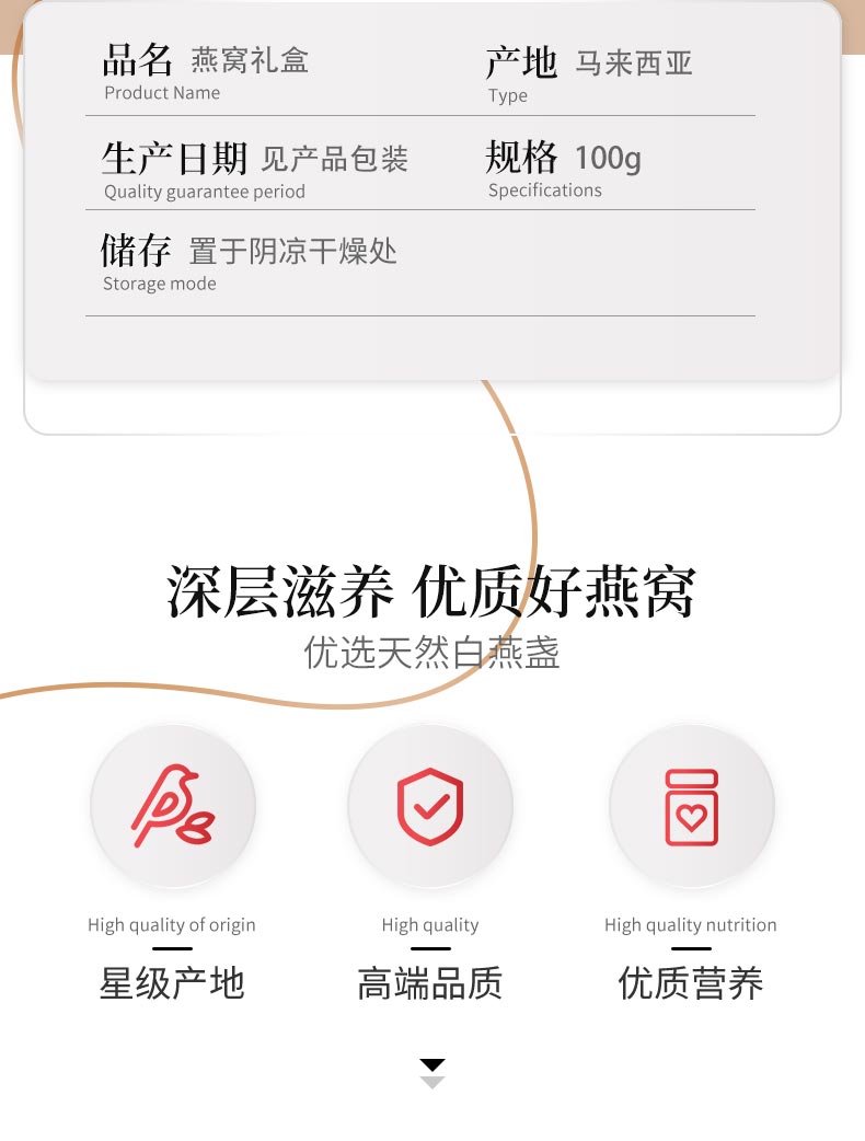 【马来进口燕窝100g礼盒】 高端进口 孕妇儿童安心滋补溯源燕窝100g礼盒 橙盒