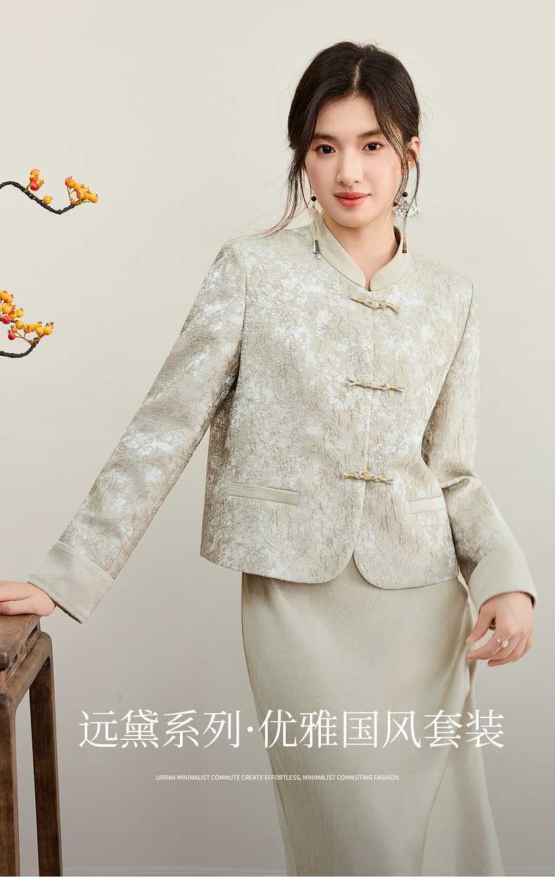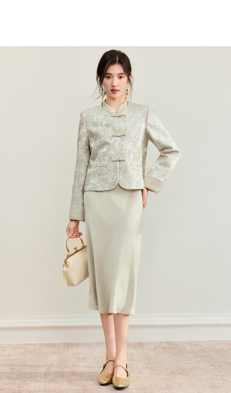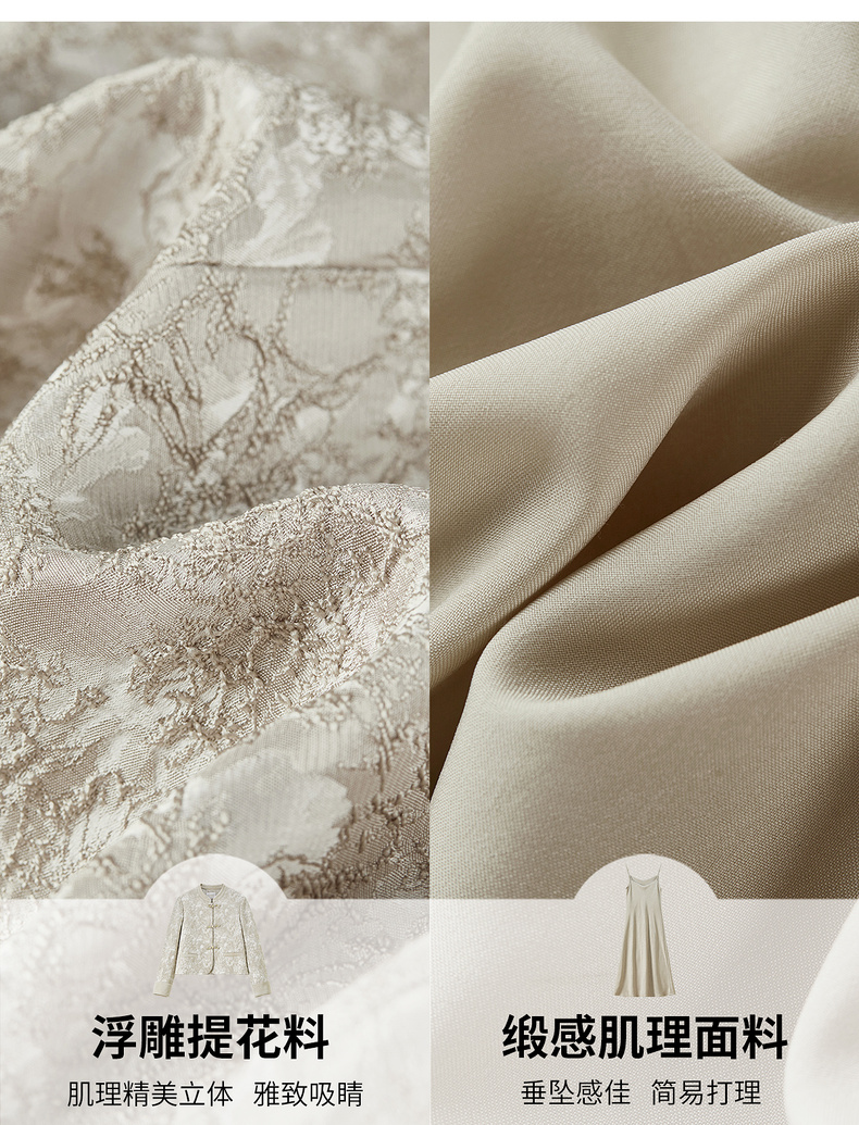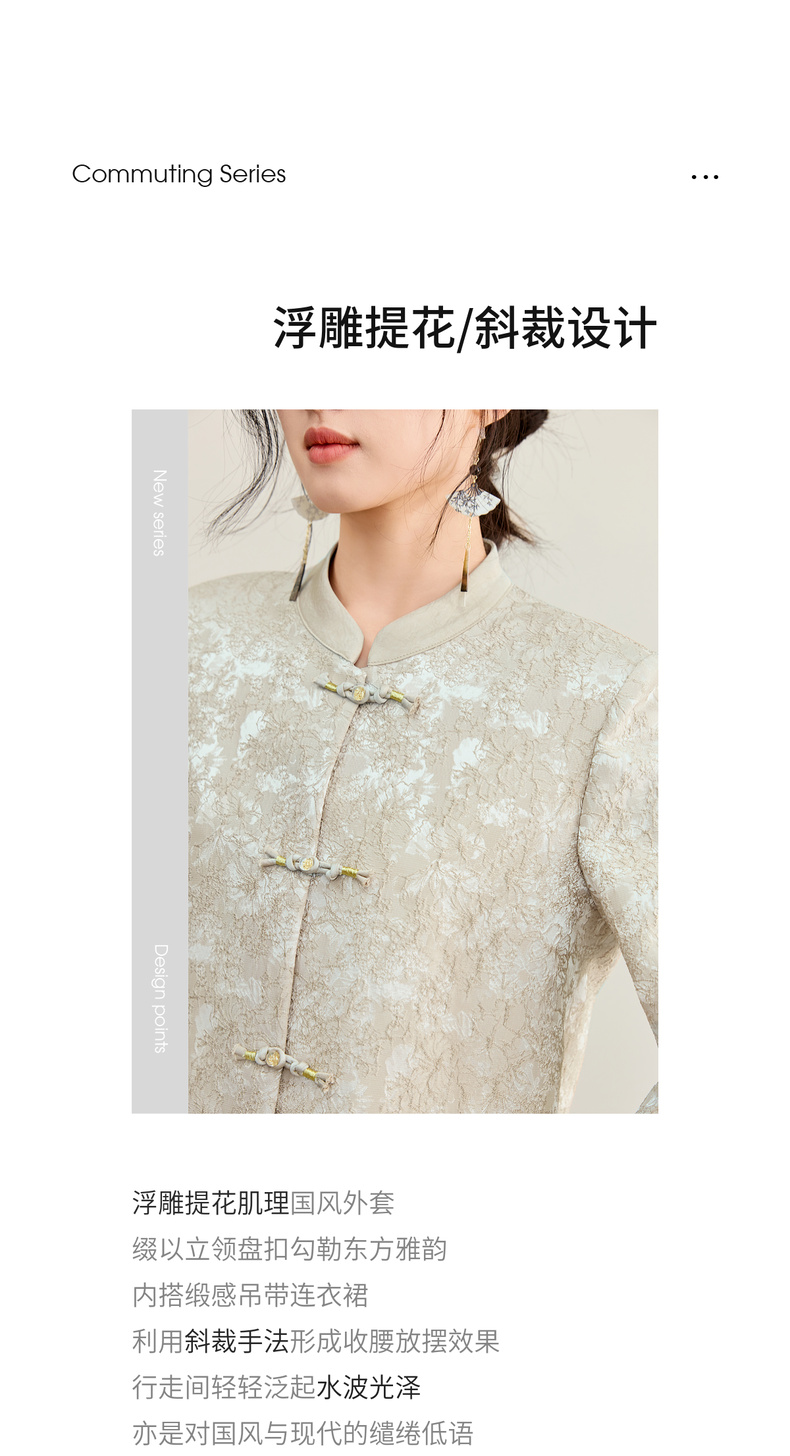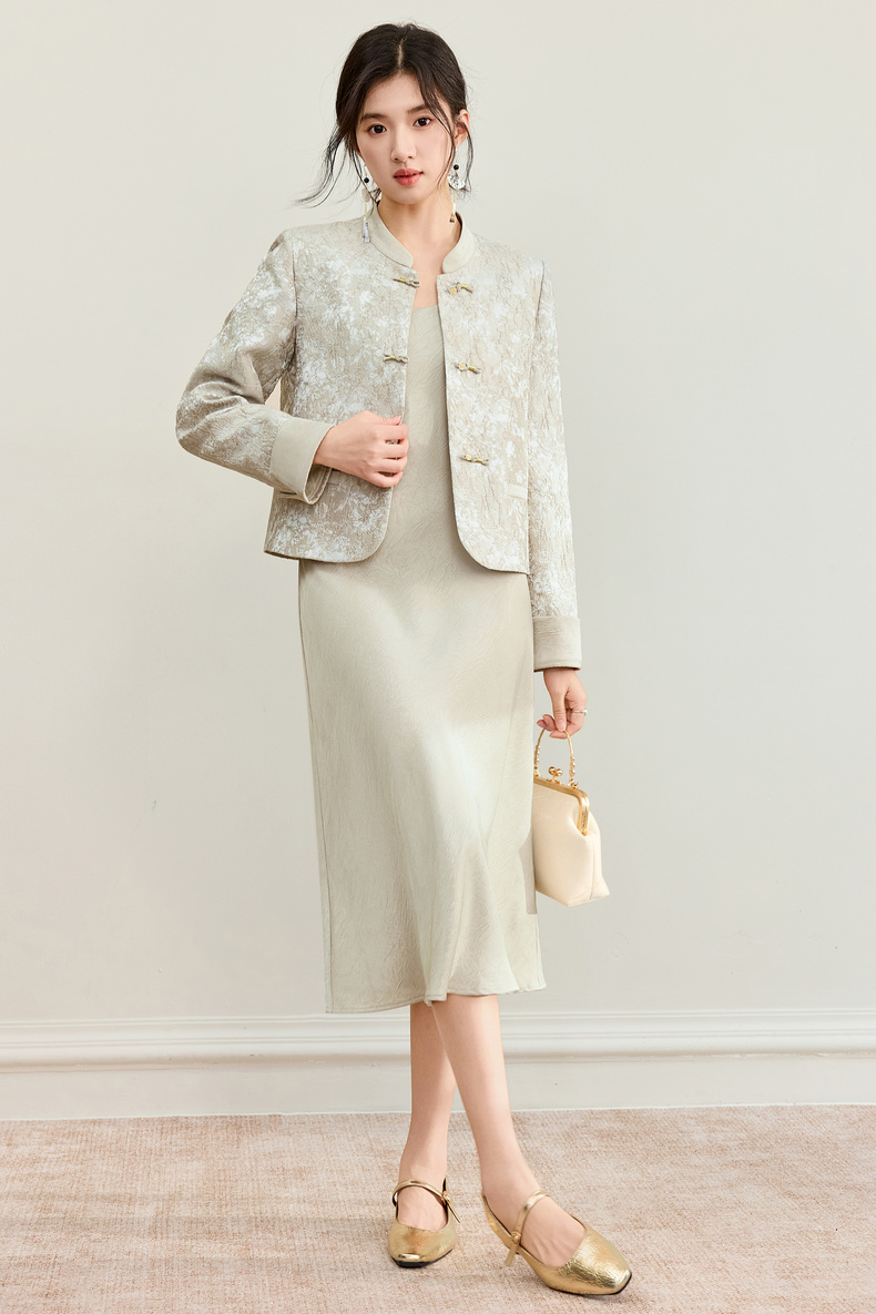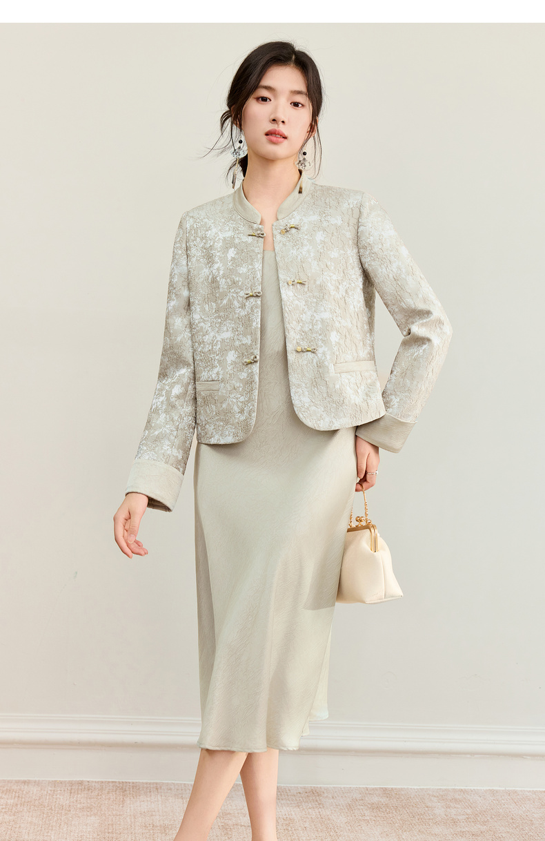 【内购】【远黛系列套装】优雅国风立领珠子盘扣浮雕提花外套&吊带连衣裙-153ZB2636
