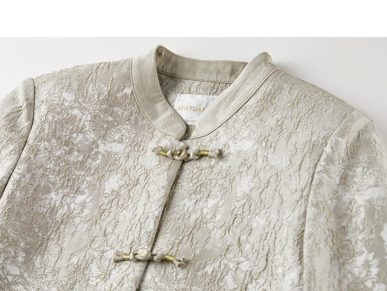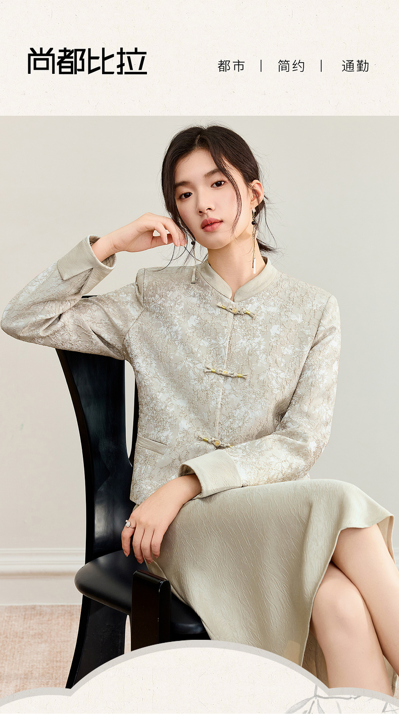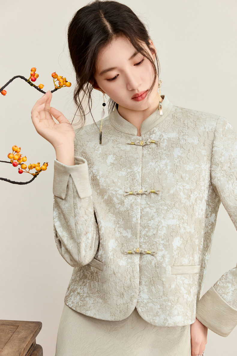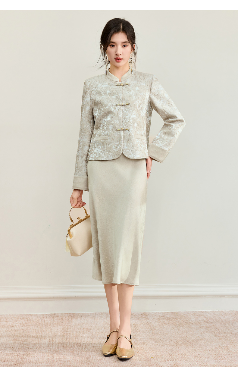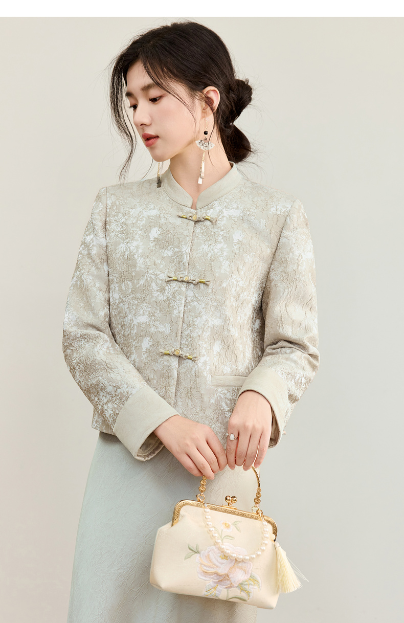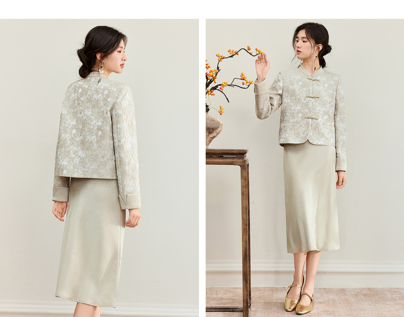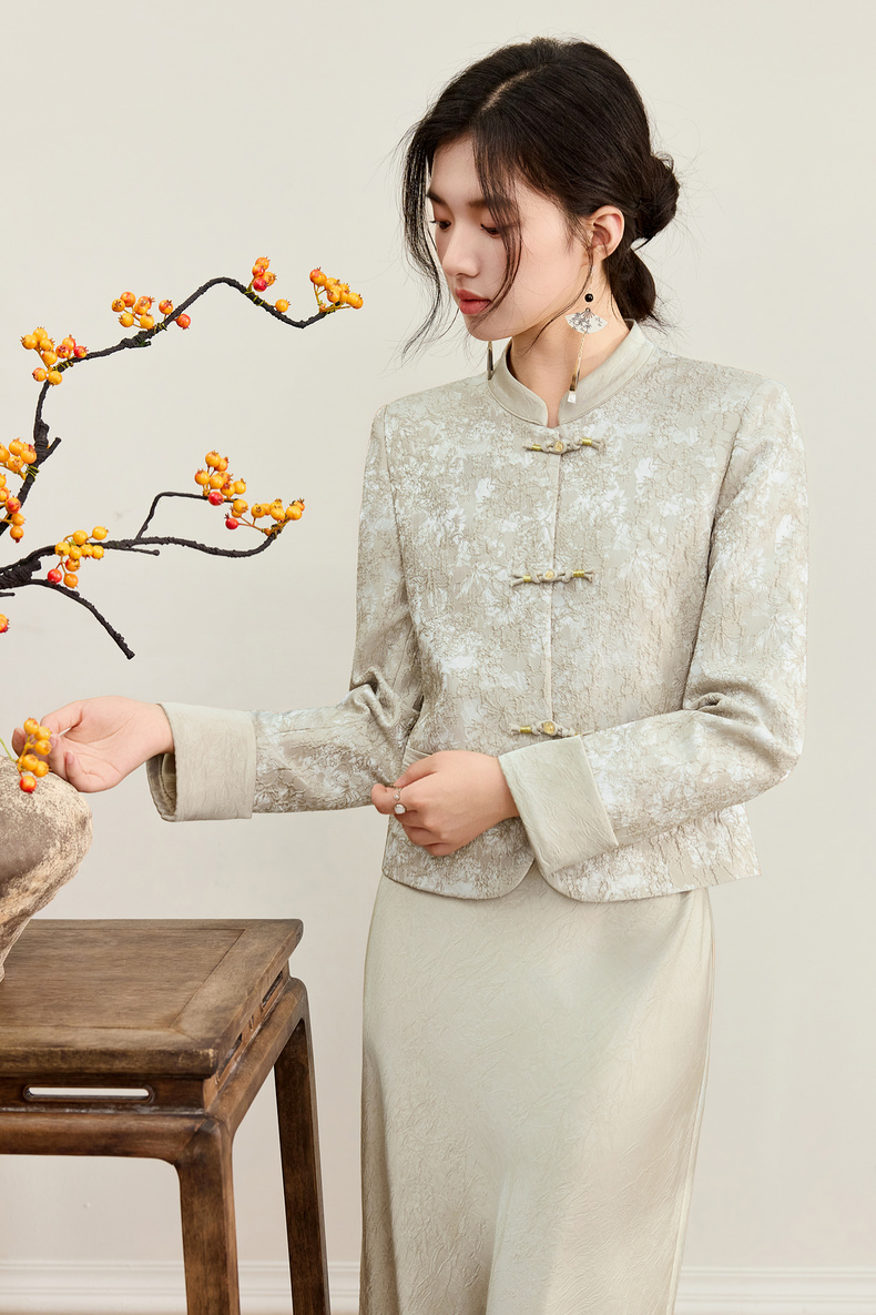 【内购】【远黛系列套装】优雅国风立领珠子盘扣浮雕提花外套&吊带连衣裙-153ZB2636