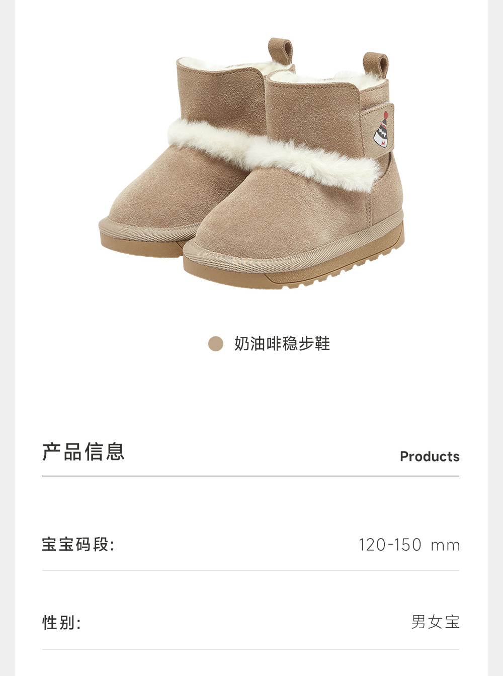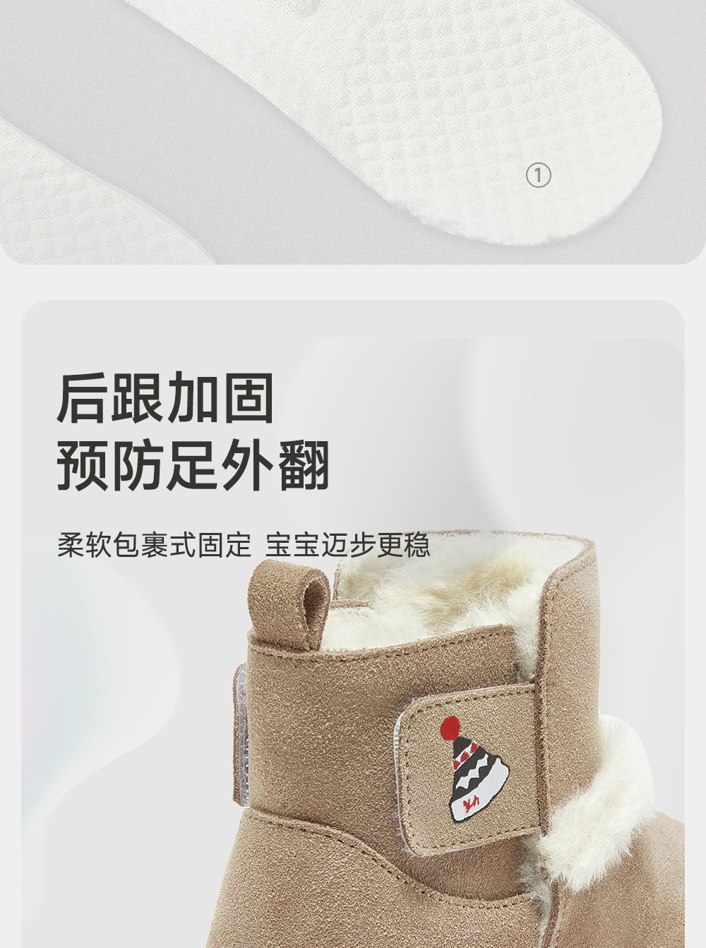 英氏儿童雪地靴秋冬加绒防滑靴子宝宝外出玩雪鞋新款YFXNJ4Q635A