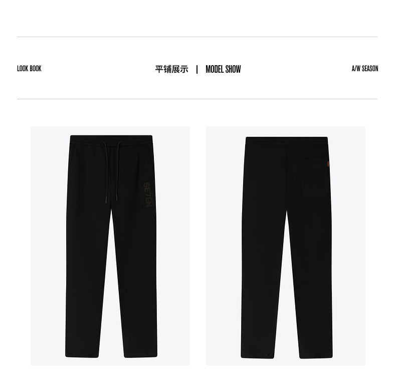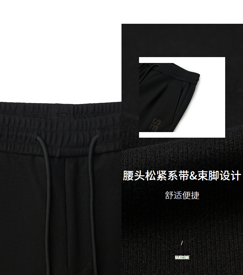 【灯芯绒】柒牌休闲裤男秋冬新款时尚潮流黑色松紧抽绳针织束脚裤 125H71530