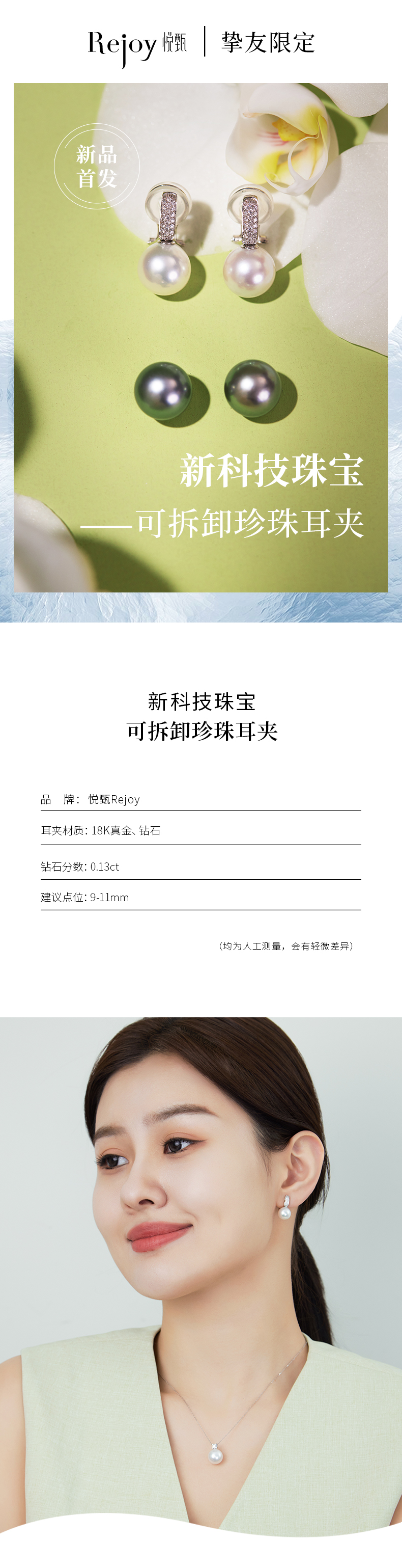 【挚友限定】悦甄Rejoy素川 10K金akoya珍珠耳夹(封板福利 无质量问题不接受7天无理由)
