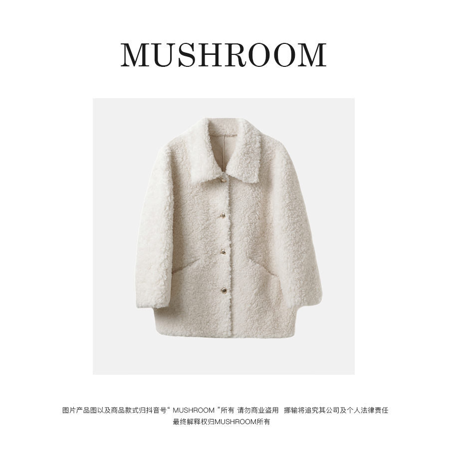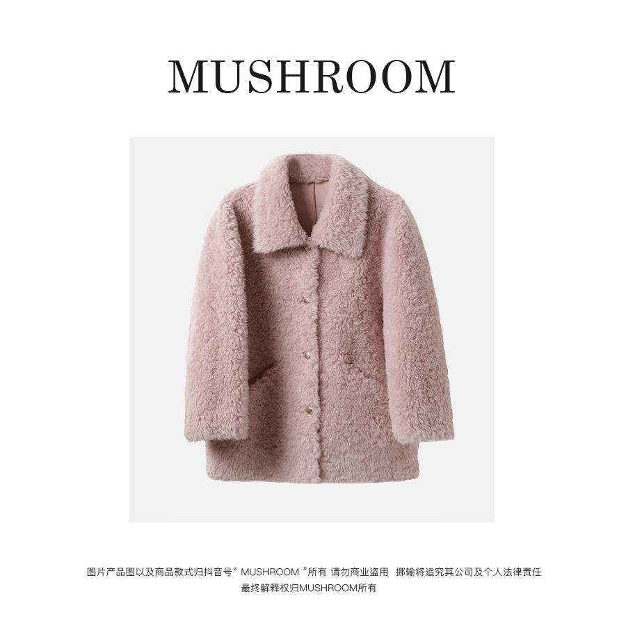 金蘑菇菇【草莓羊羊】设计师高定羊毛宽松保暖真毛麂皮