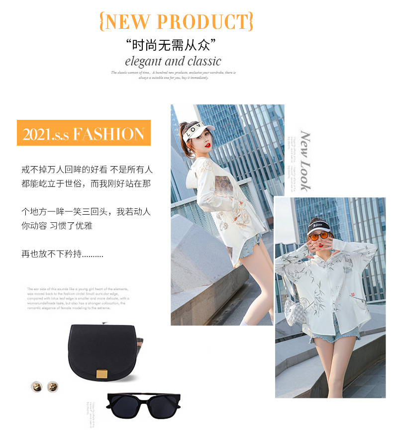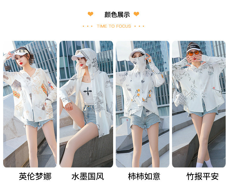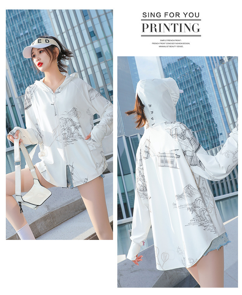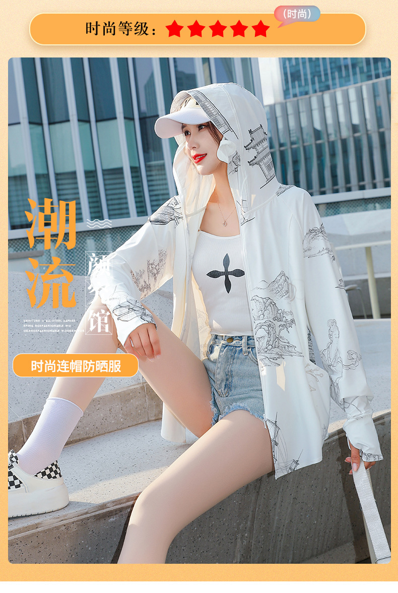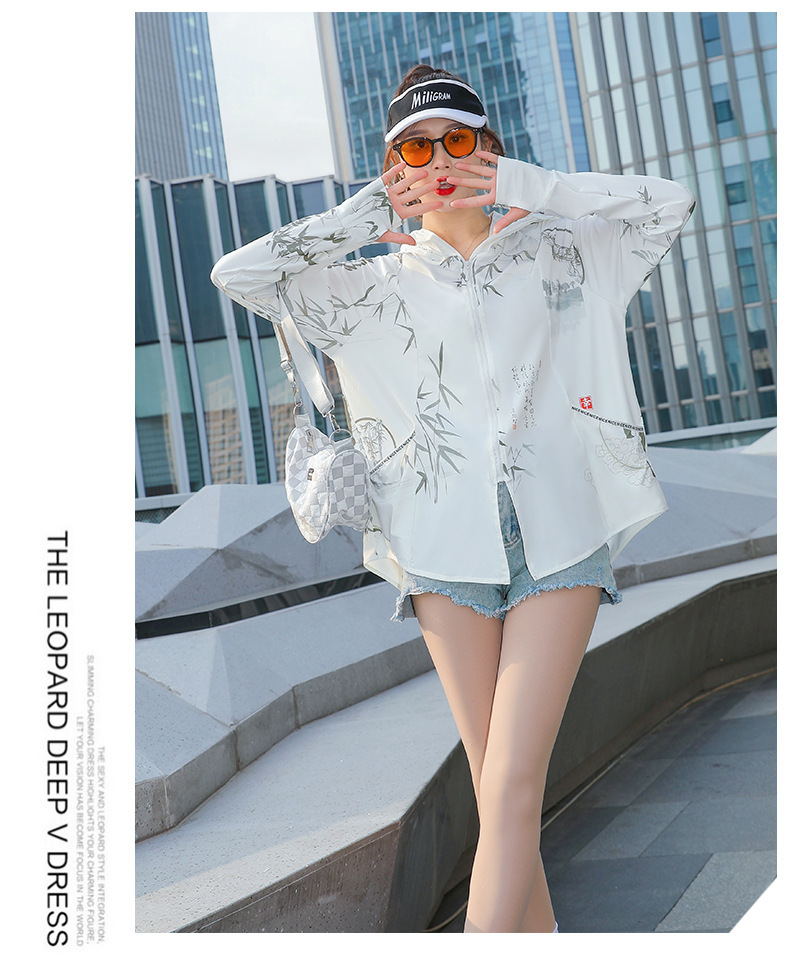 夏季新款【印花国风冰丝女 防紫外线长袖超薄款外套】连帽透气防晒衣 潮流时尚印花 国庆出游