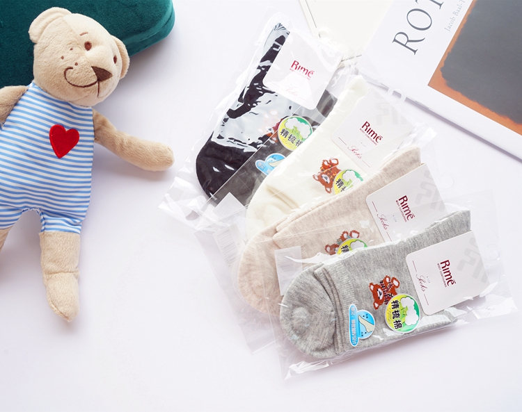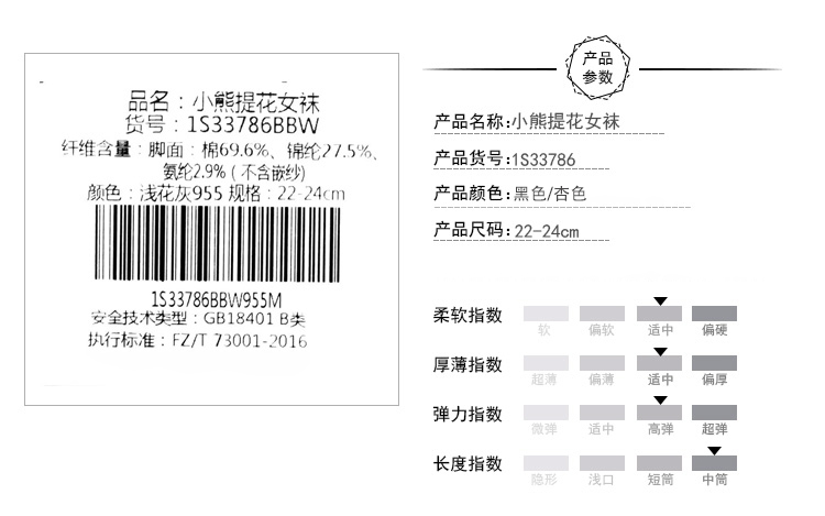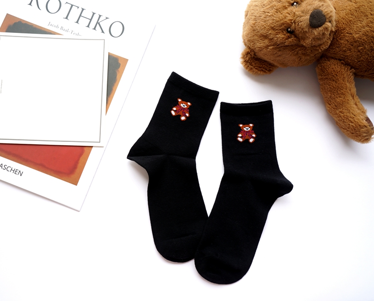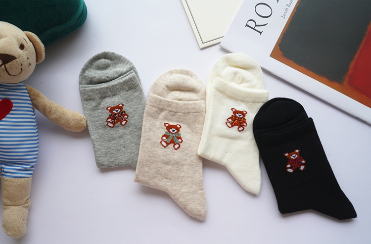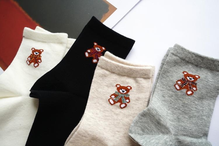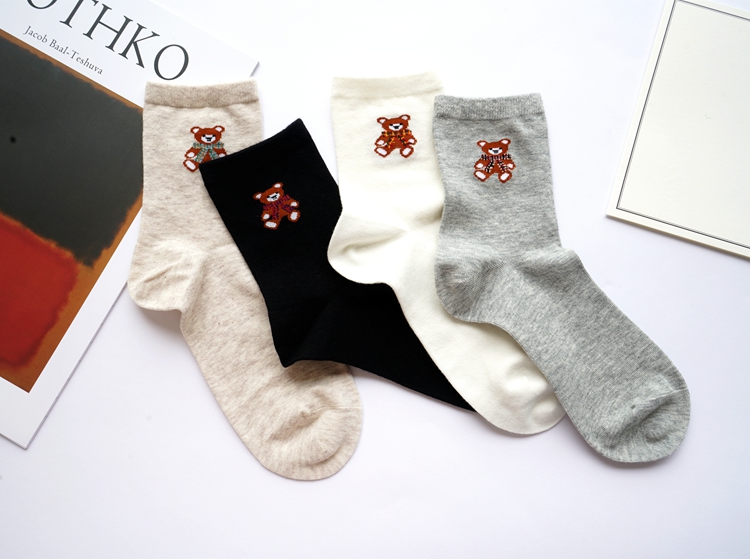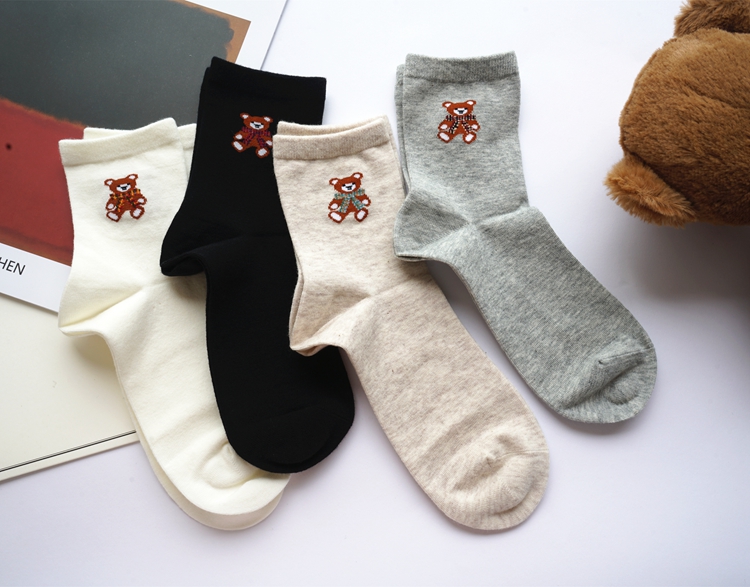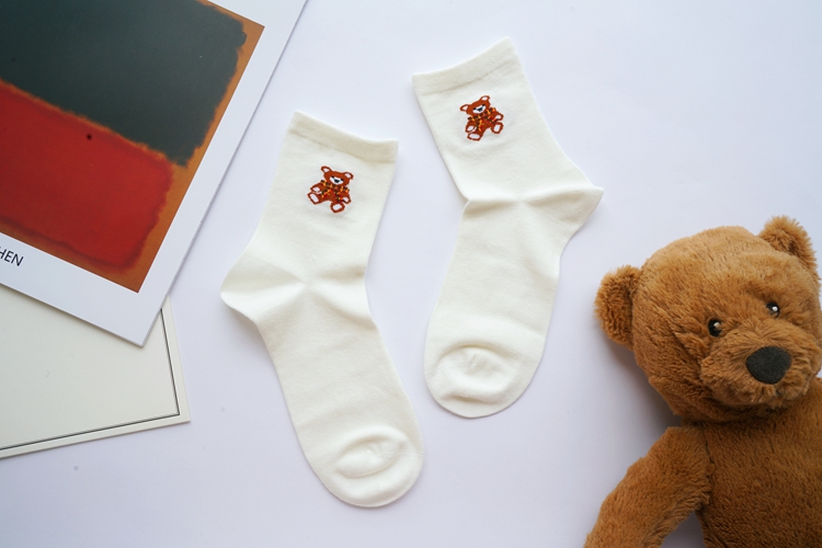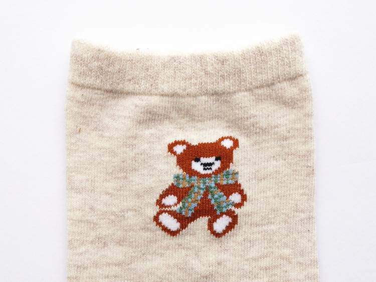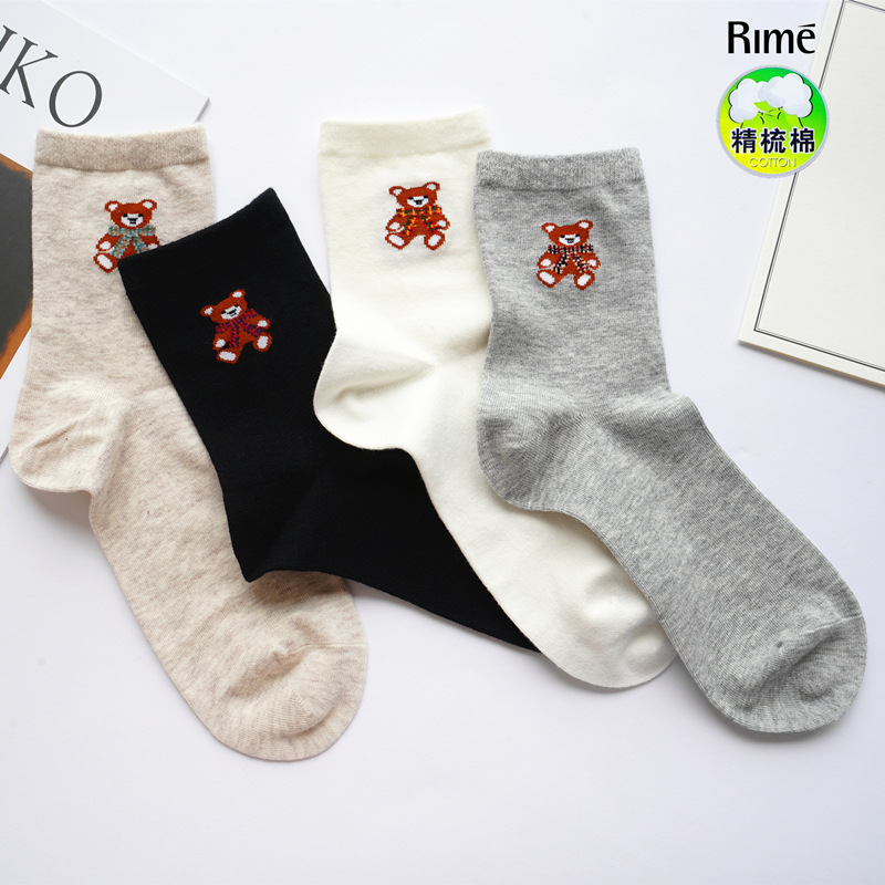 小熊提花女袜精梳棉抗菌舒适中筒秋33786