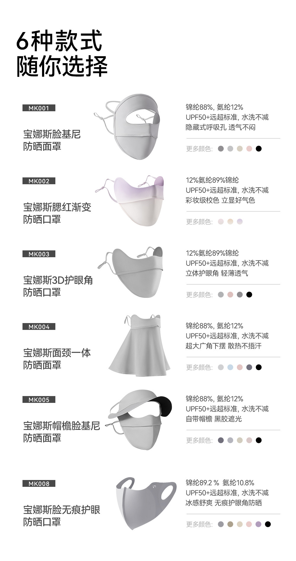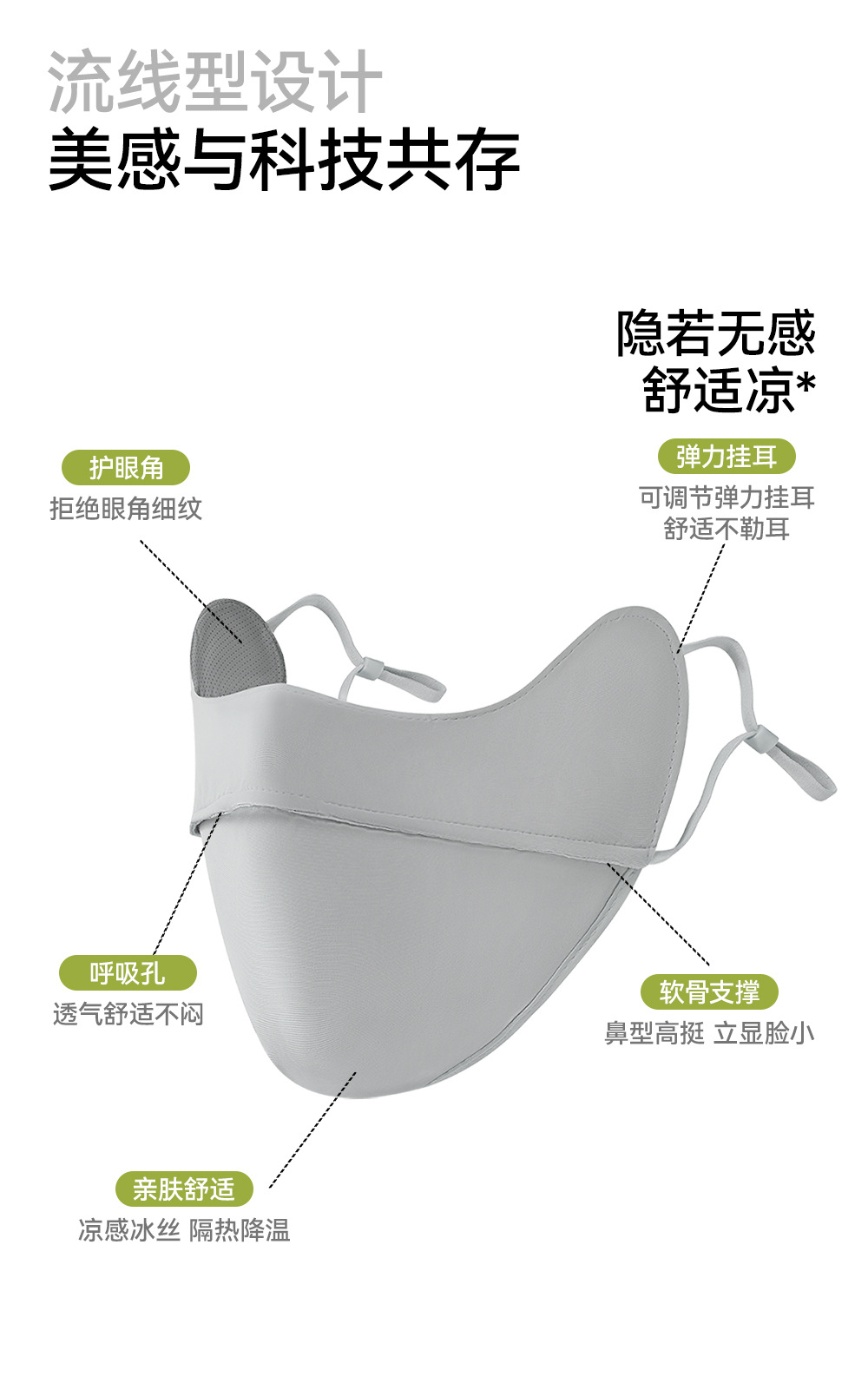 【醒粉福利4.9元起】宝娜斯防晒口罩 防紫外线护眼角立体冰丝凉感全脸防晒面罩