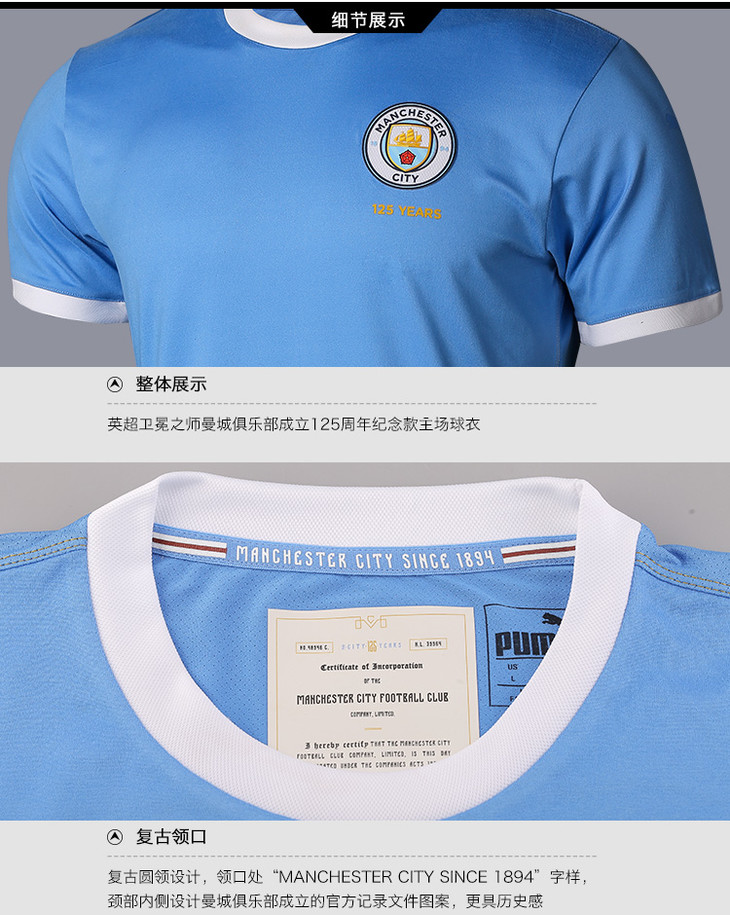 PUMA/彪马 125th Fan Tee 19-20赛季曼城125周年纪念版 球员版球迷T恤75642101