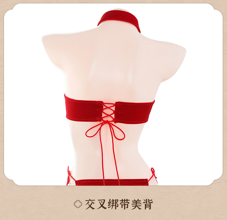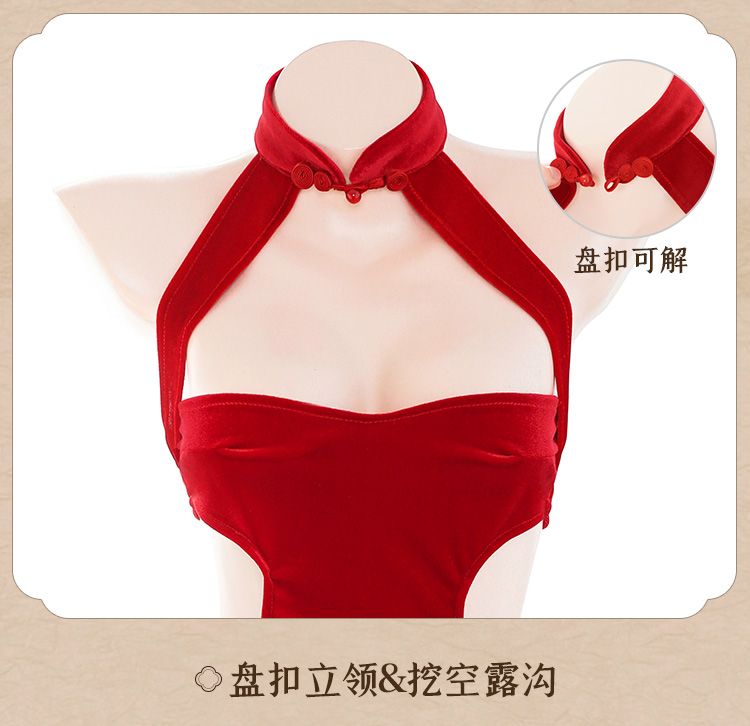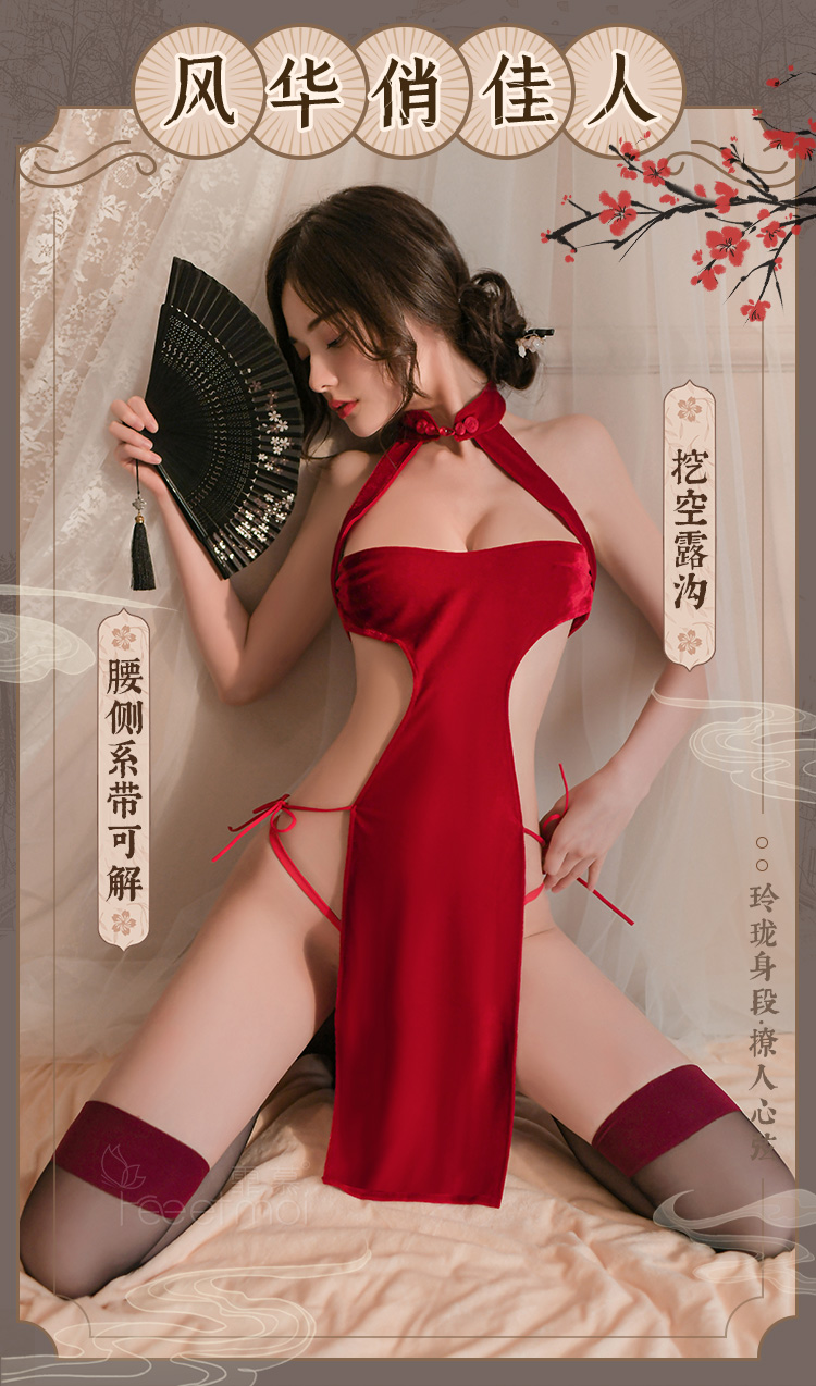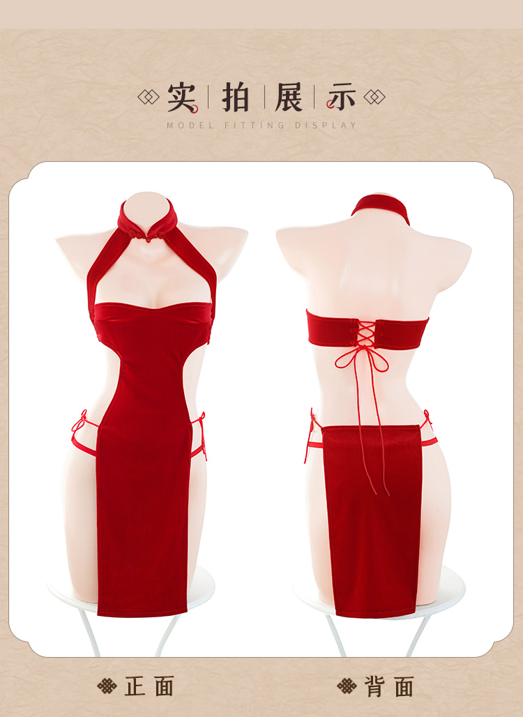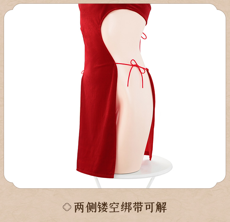 霏慕 高开衩分片绑带丝绒旗袍6701 古风国潮套装镂空长裙露背系带盘扣性感情趣内衣午夜魅力女士床上衣服