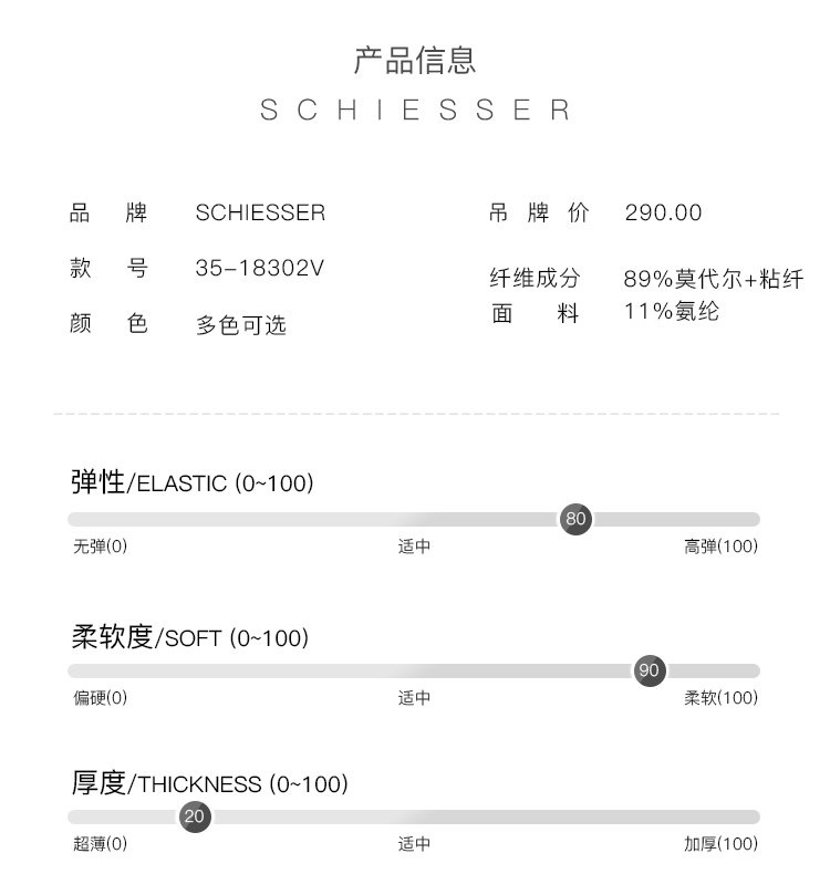 - 来自德国的SCHIESSER舒雅,专注做内衣一百四十余年,不遗余力的材料创新,因材而异的专业剪裁,健康环保的加工技术以及充满文化关注的时尚主题,做你认识之外的舒适内衣。