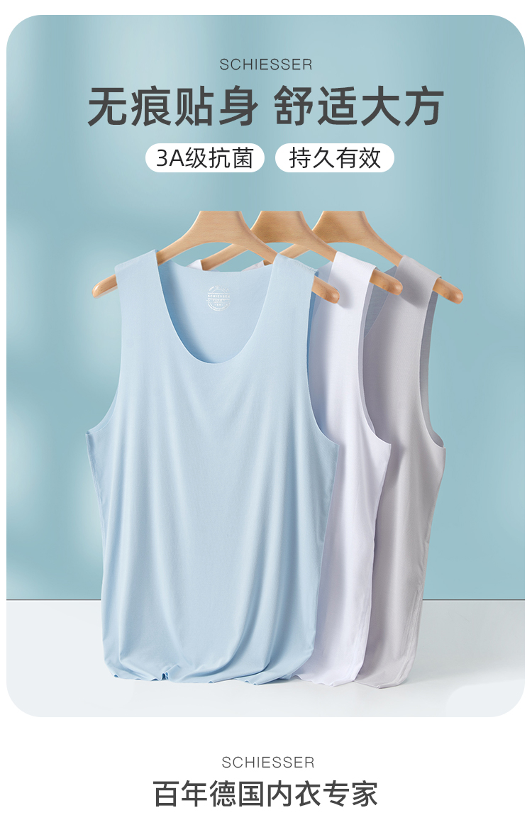 【3A抗菌莫代尔随型裁】SCHIESSER舒雅男士莫代尔背心 春夏3A抗菌无痕打底无袖上衣35/18302V