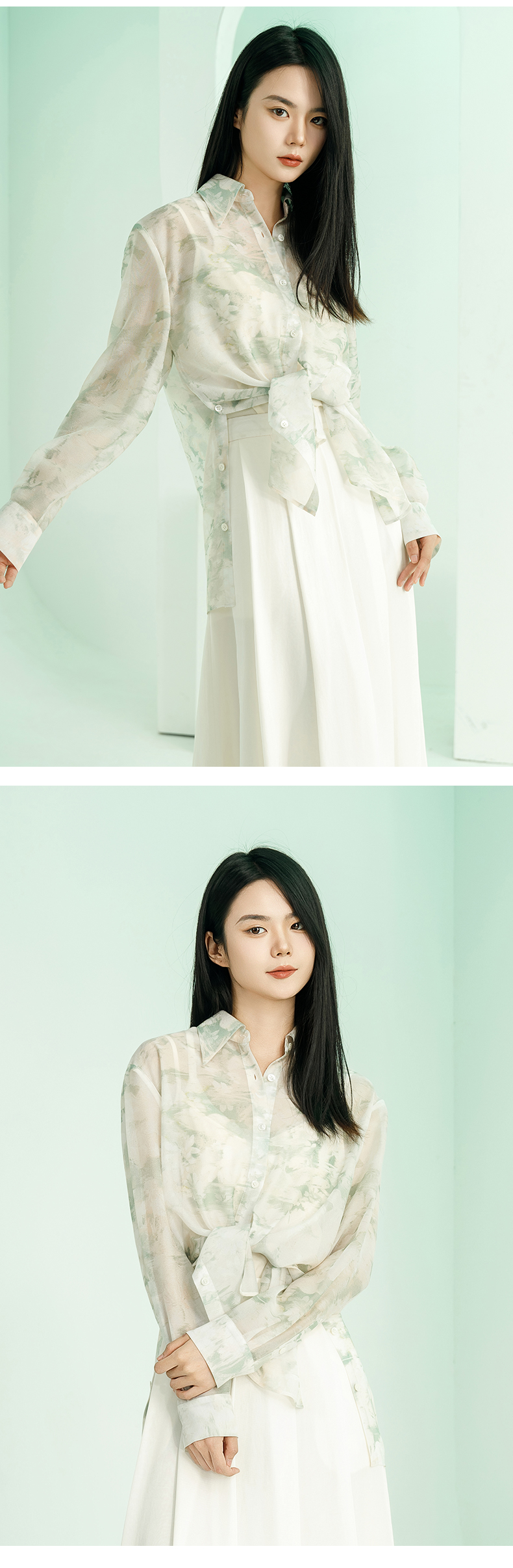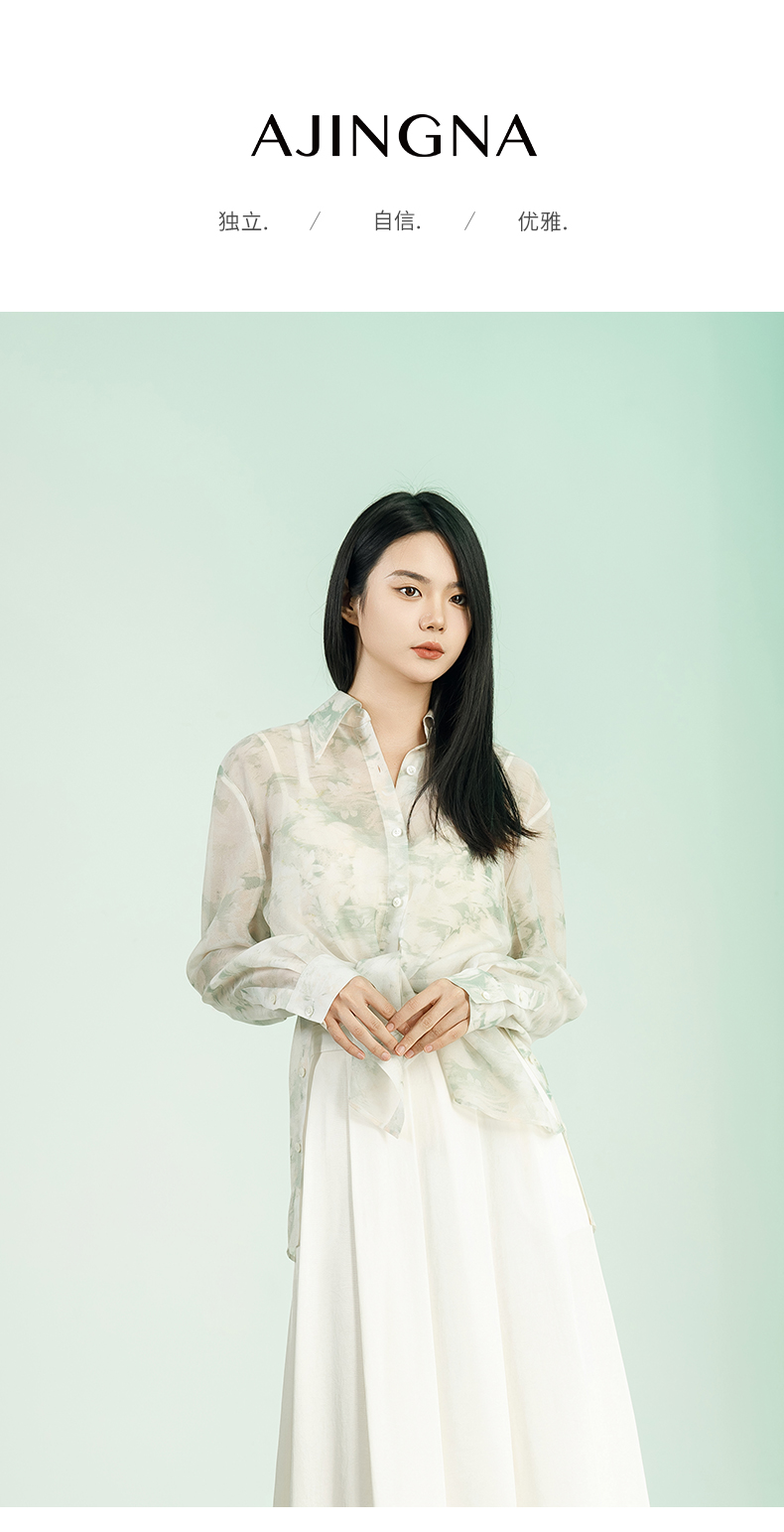 【商场同款】阿菁娜2024夏季新款印花宽松时髦衬衫A29X109010
