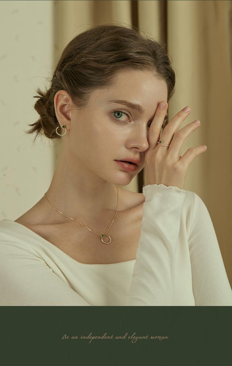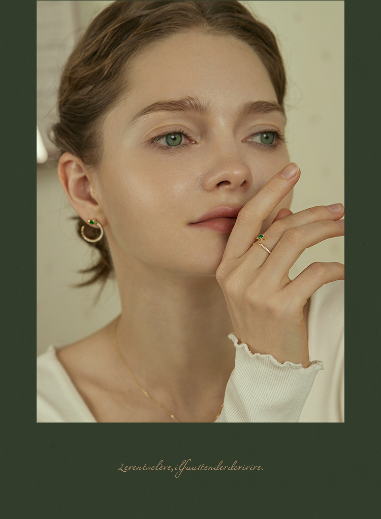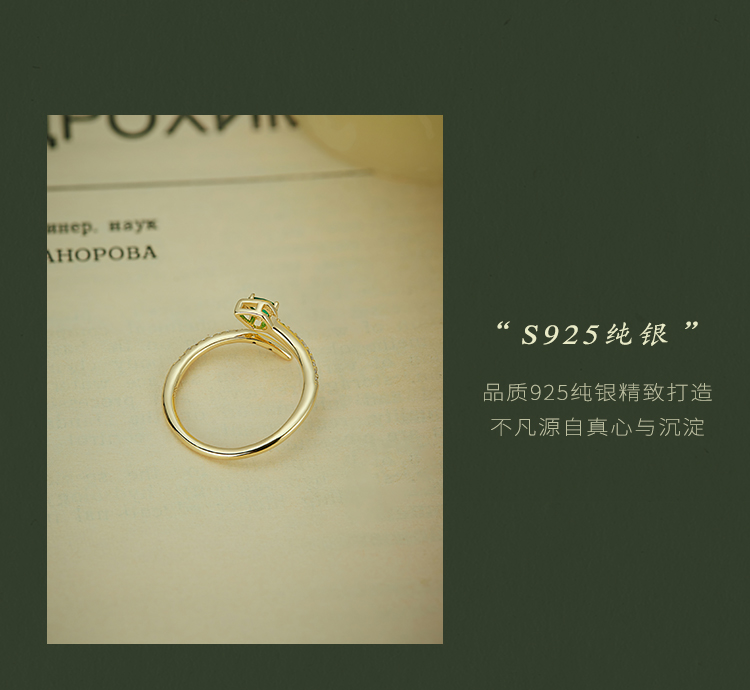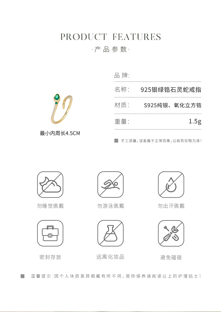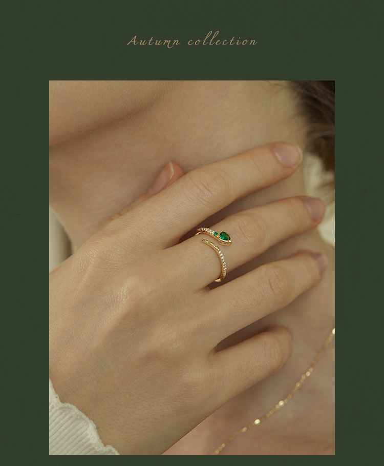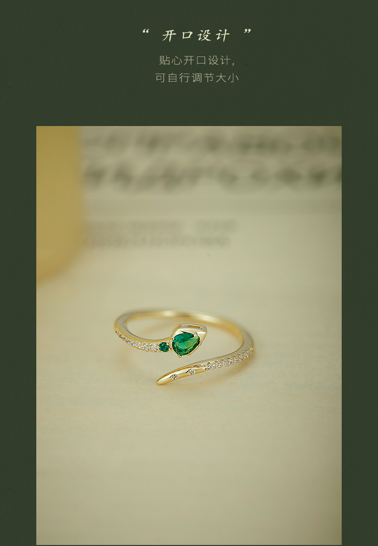 Oflye潮流饰品 祖母绿灵蛇纯银戒指女轻奢高级感开口戒首尾交错设计银饰食指戒