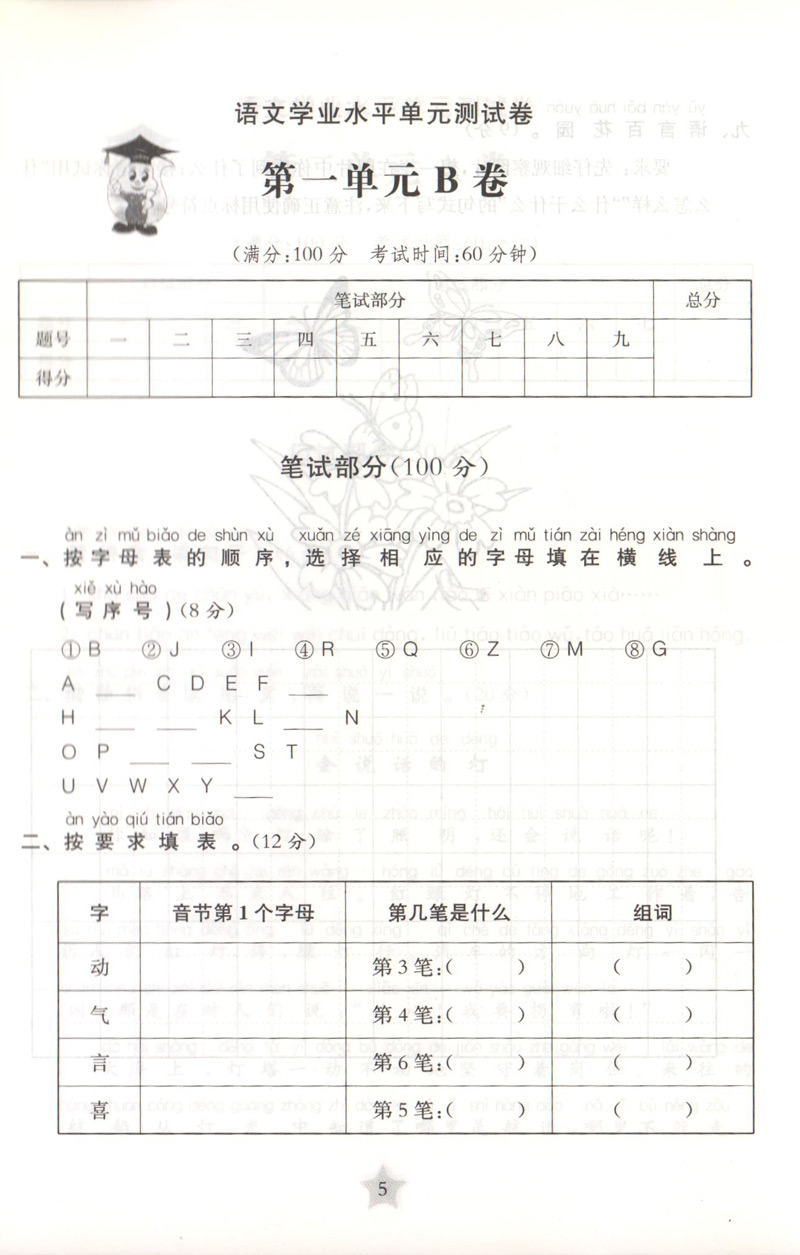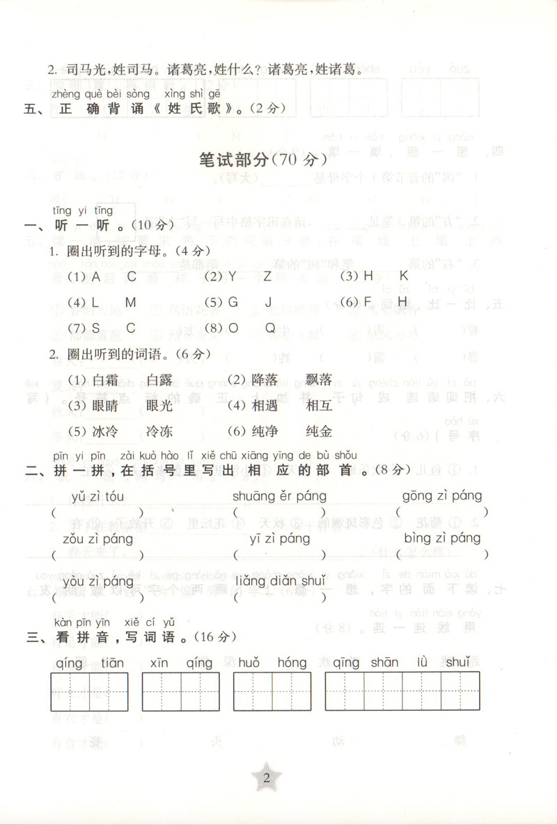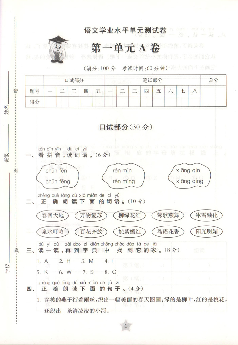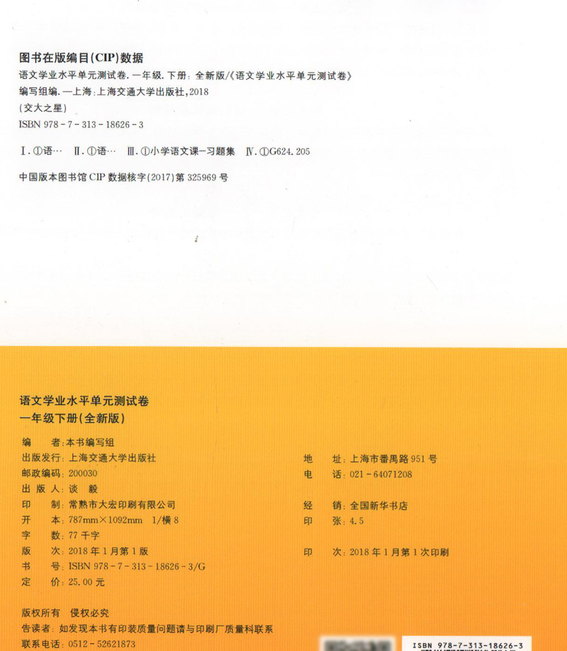 交大之星 学业水平单元测试卷 D2语文 1年级/一年级(下册)第二学期 与上海市二期课改教材配套