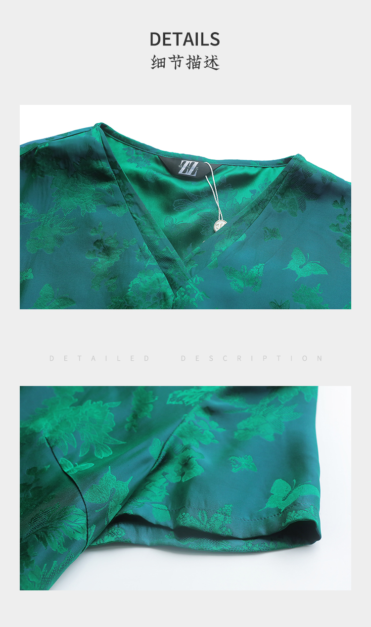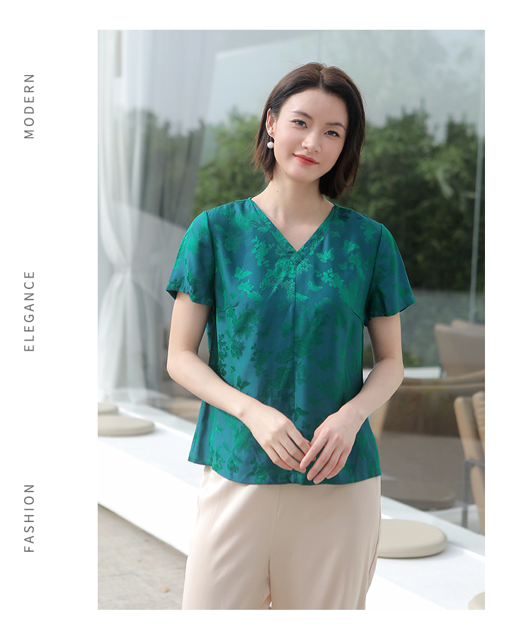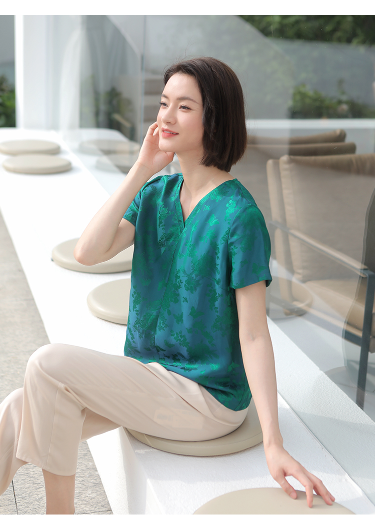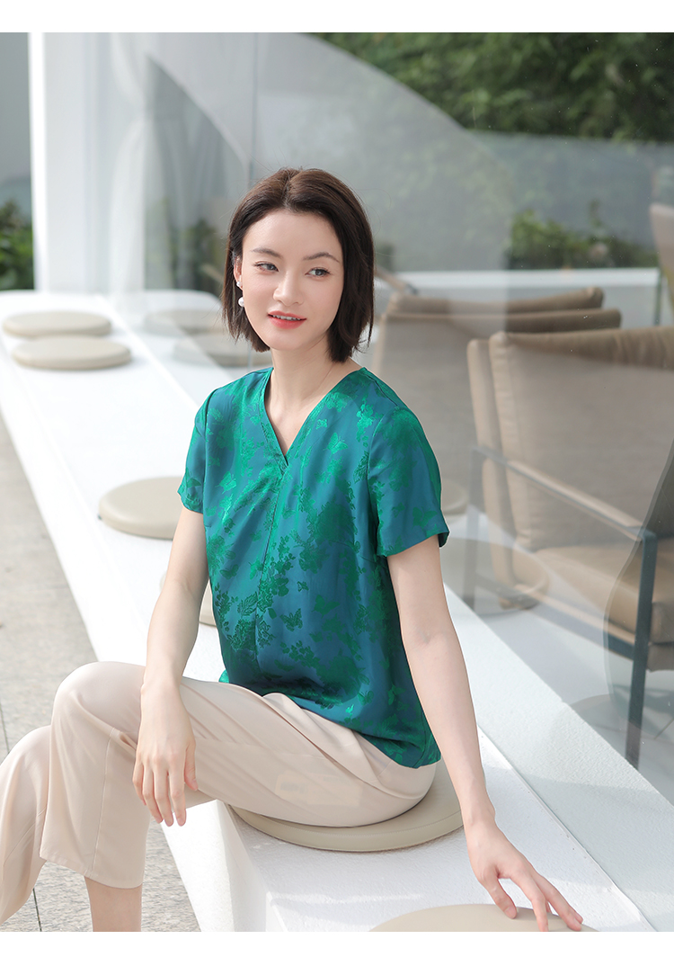 佐尔美夏季新款 气质国风V领桑蚕丝短袖衬衣女E32CS38
