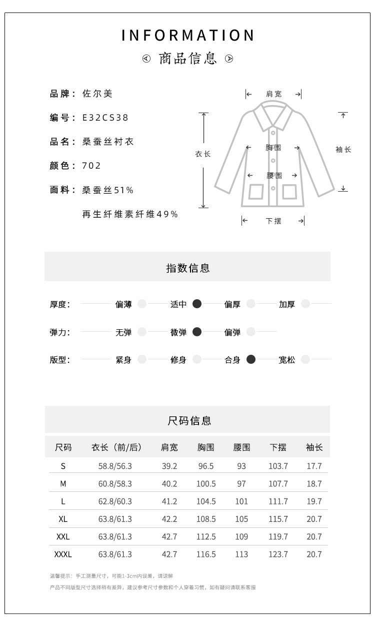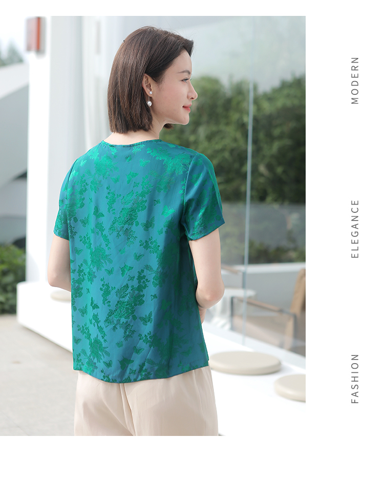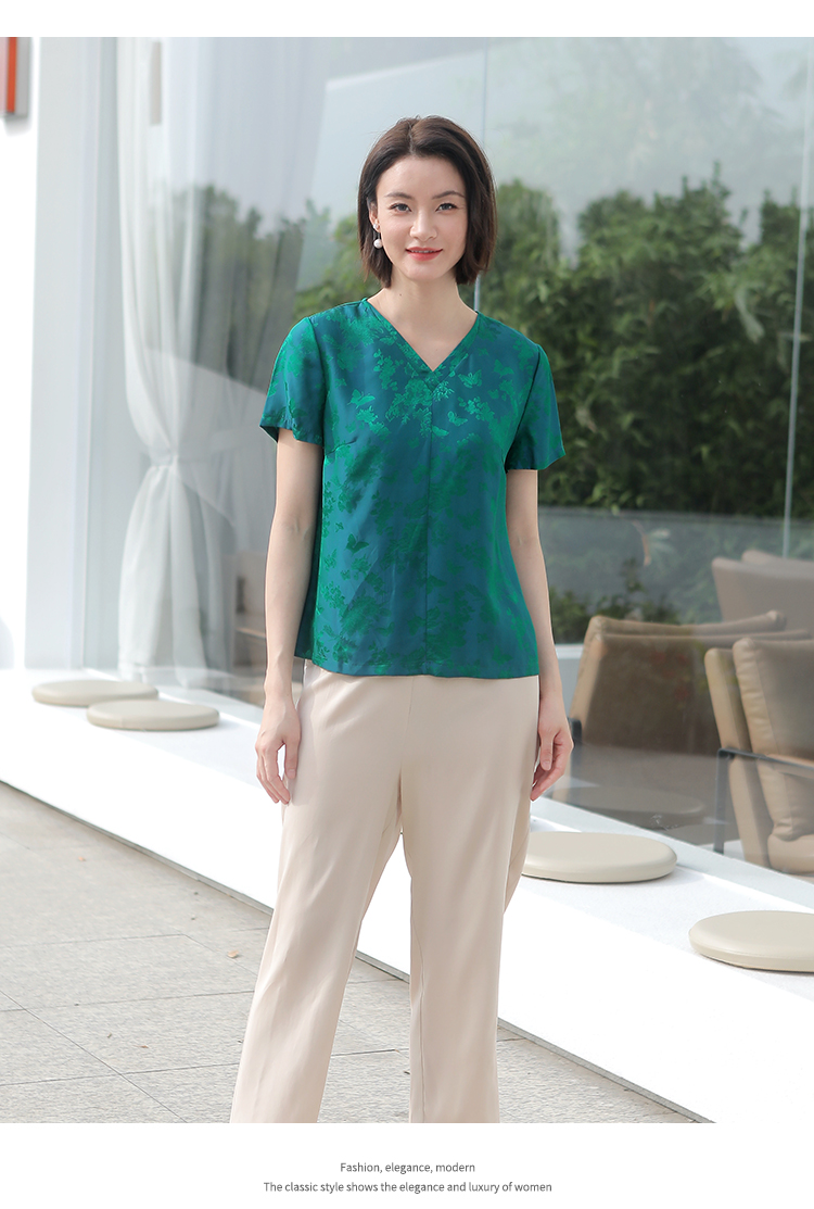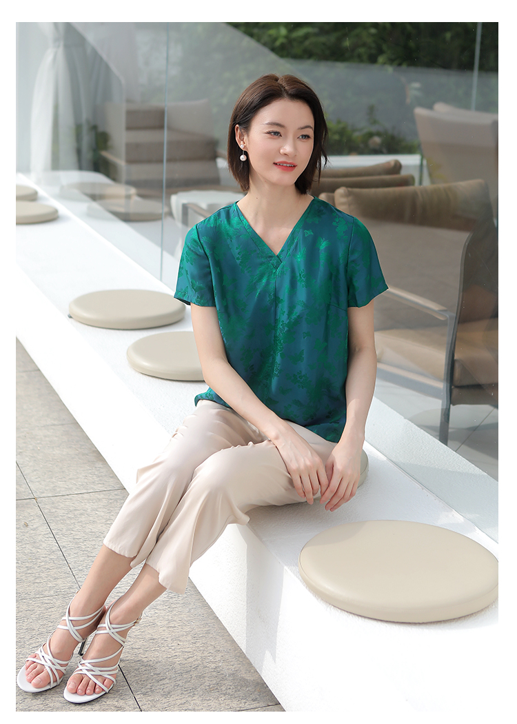 佐尔美夏季新款 气质国风V领桑蚕丝短袖衬衣女E32CS38