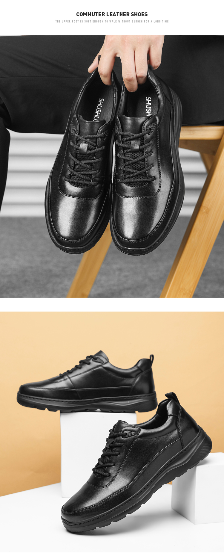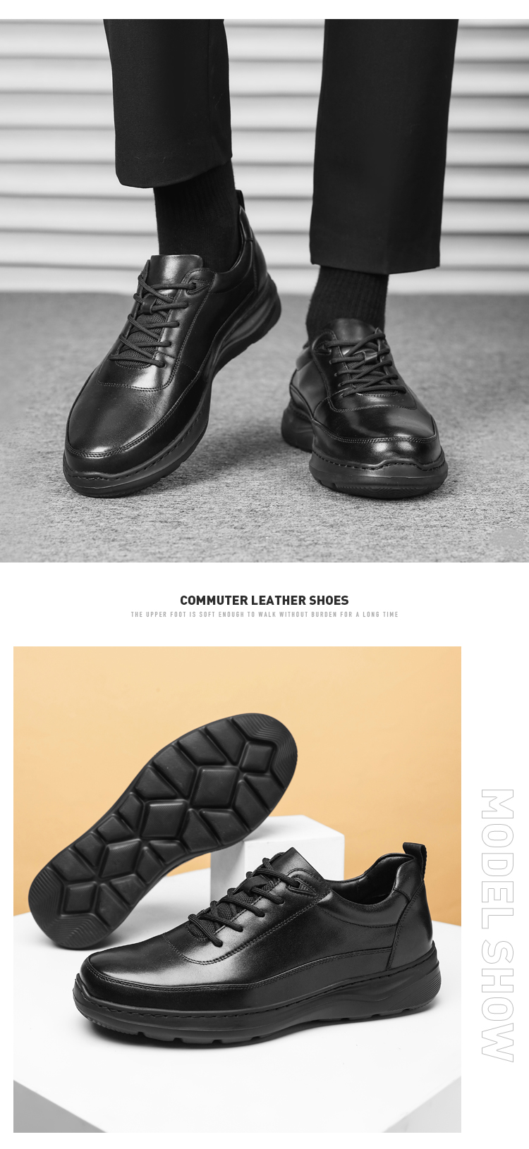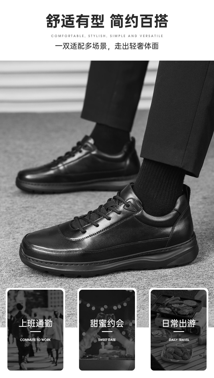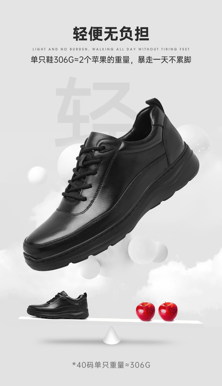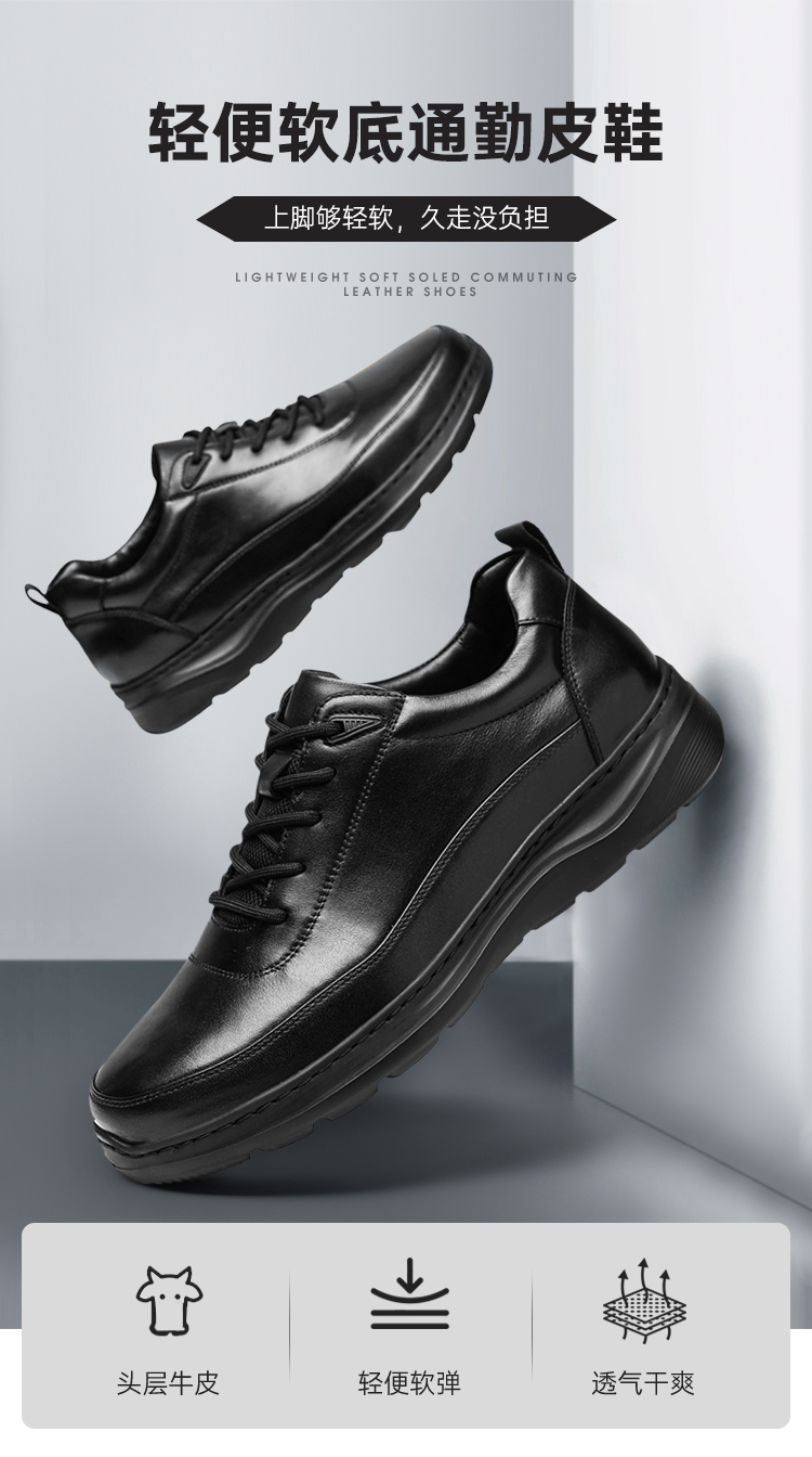 【轻便软底通勤皮鞋】轻便缓震牛皮皮鞋 防滑透气牛皮皮鞋XT405
