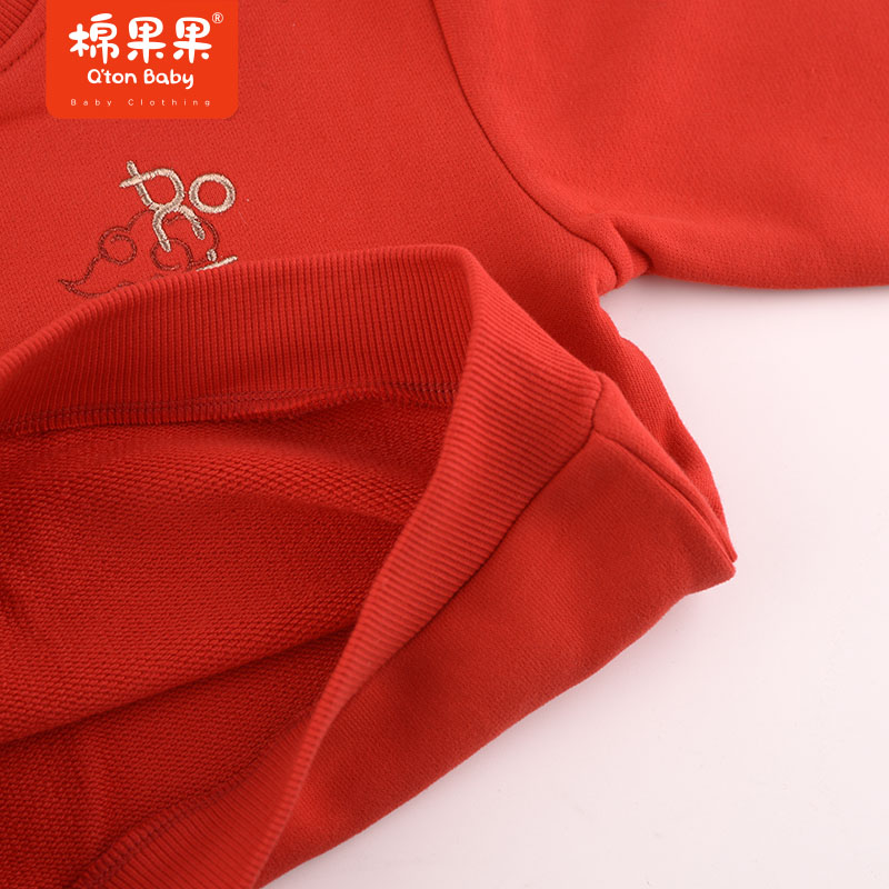棉果果春季新品中国红女童中国风大毛圈套头卫衣M522180423651 商品图0