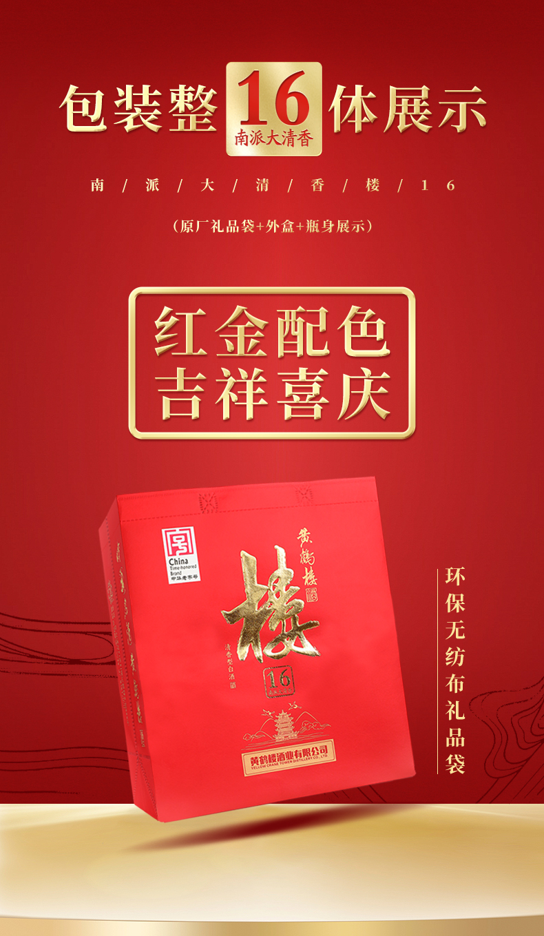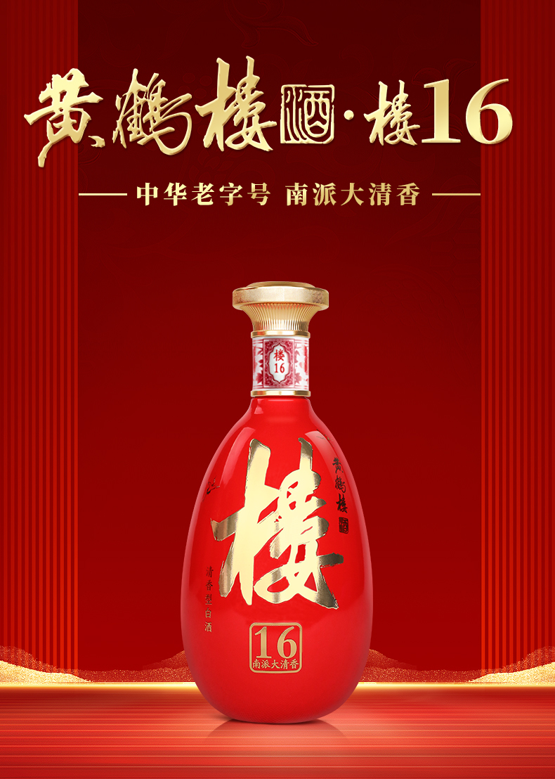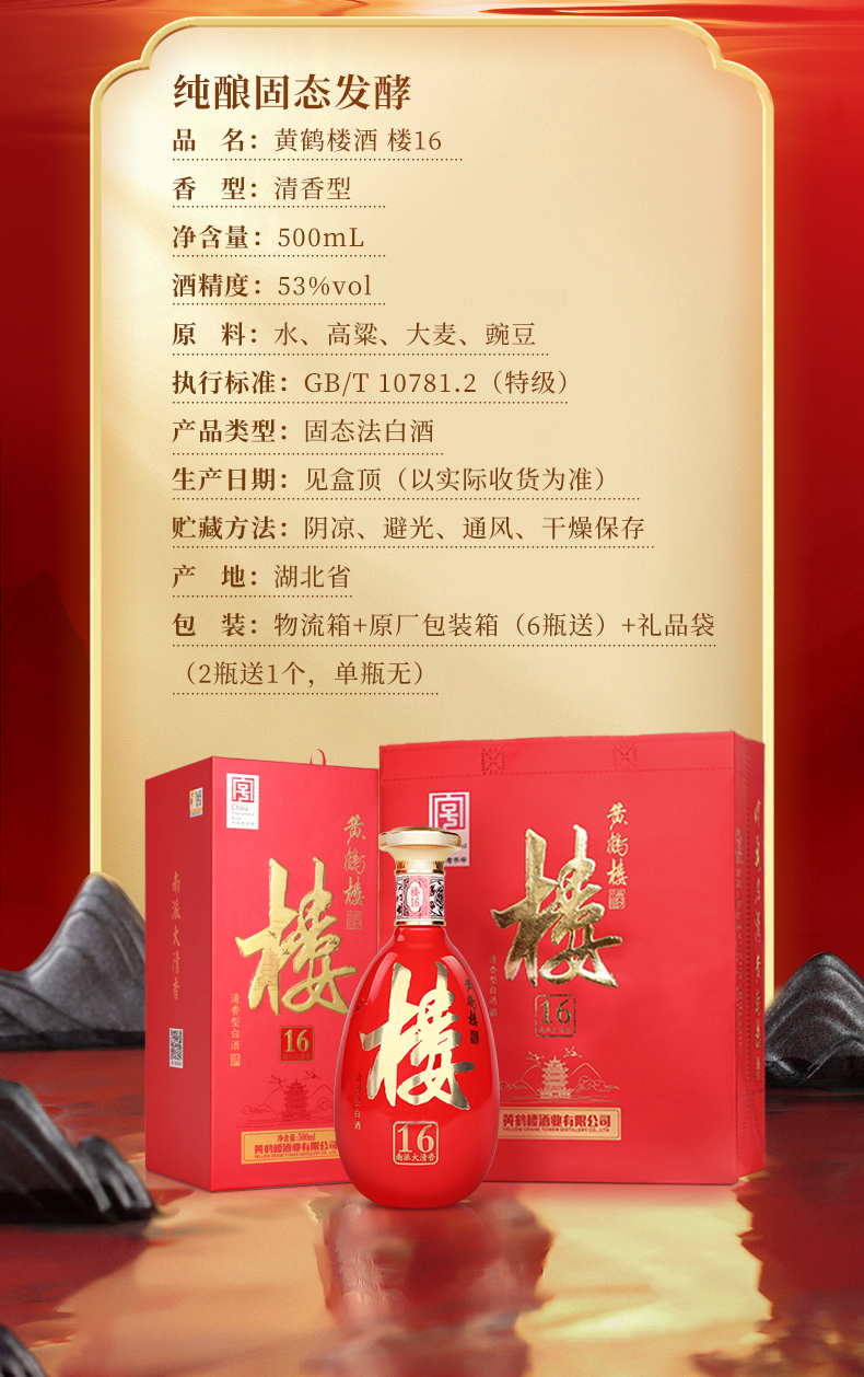 【展馆直销】黄鹤楼酒大清香楼16 53度500ml*1瓶 清香型白酒