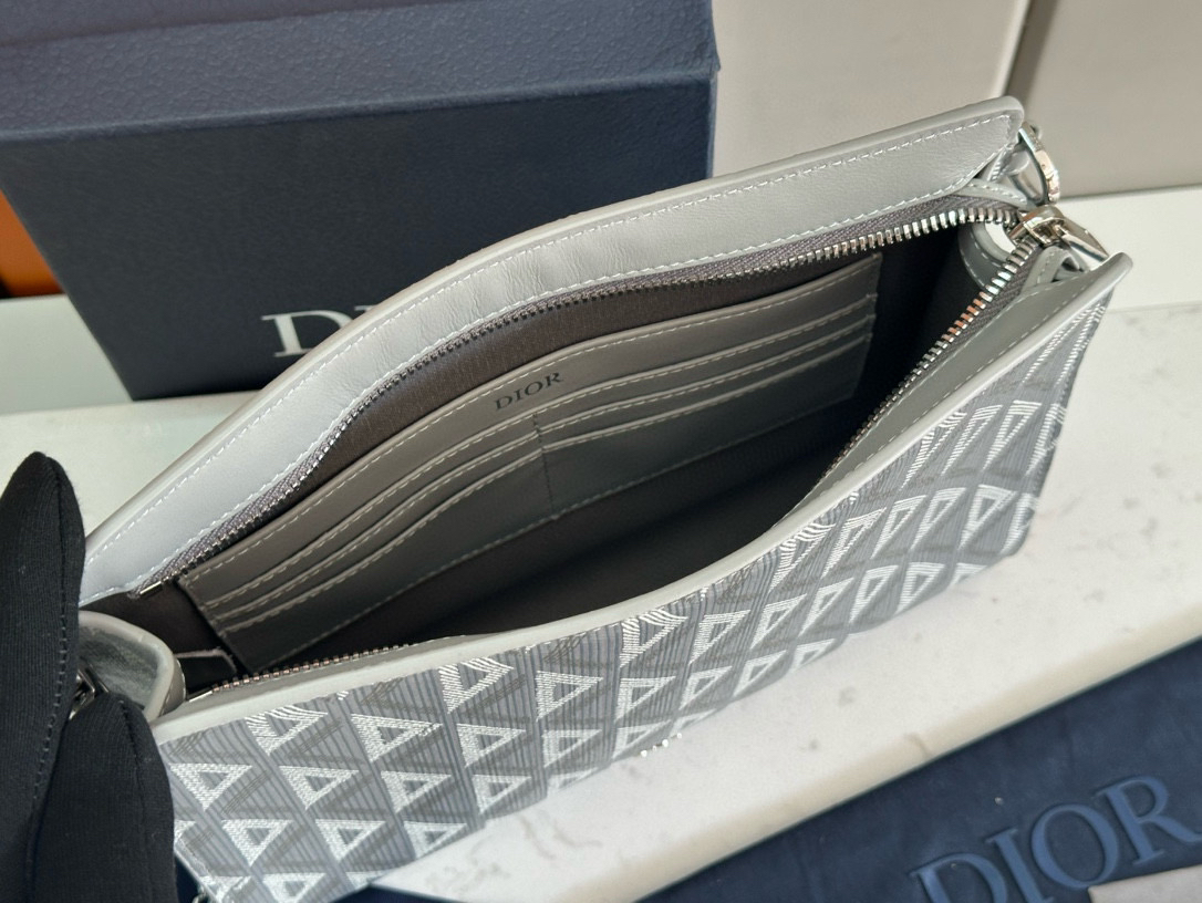 这款手拿包是主打单品。采用黑色Oblique 印花提花面料精心制作,从Dior档案汲取灵感,正面饰以Dior 标志提升格调。设有一个可收纳手机的宽大拉链隔层,还有六个卡槽。搭配可拆卸的粒面牛皮革腕带,可手提或放入手袋中。