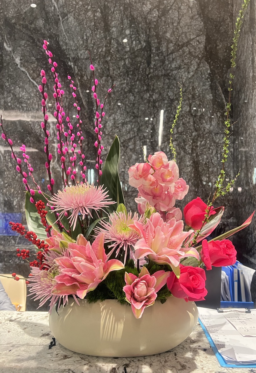 《红桃好运》重瓣百合玫瑰弗洛伊德腊梅插花