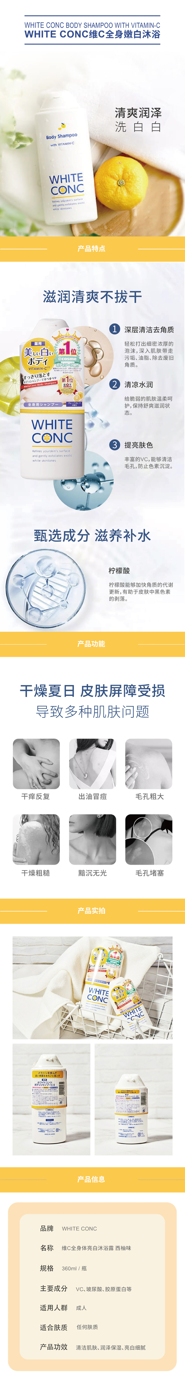 【保税仓】whiteconc身体沐浴露360ml 西柚味道 清爽润泽