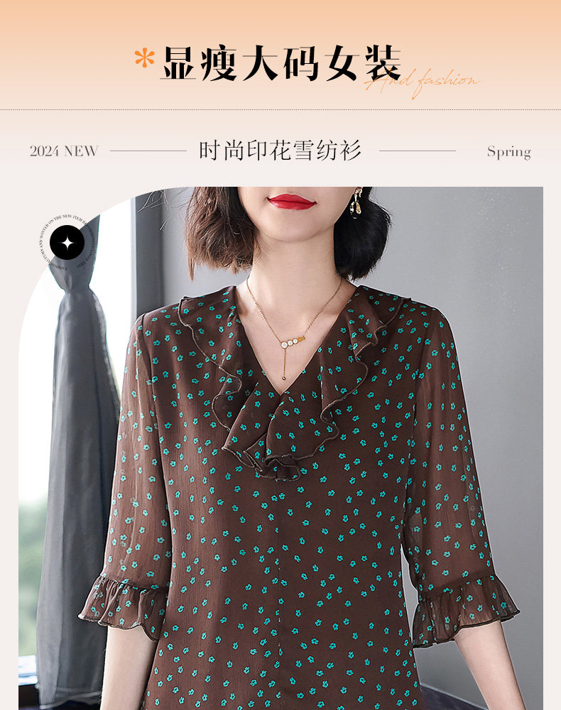 七分袖雪纺衫女春秋季2025女士衬衫中年妈妈波点中袖上衣时尚洋气