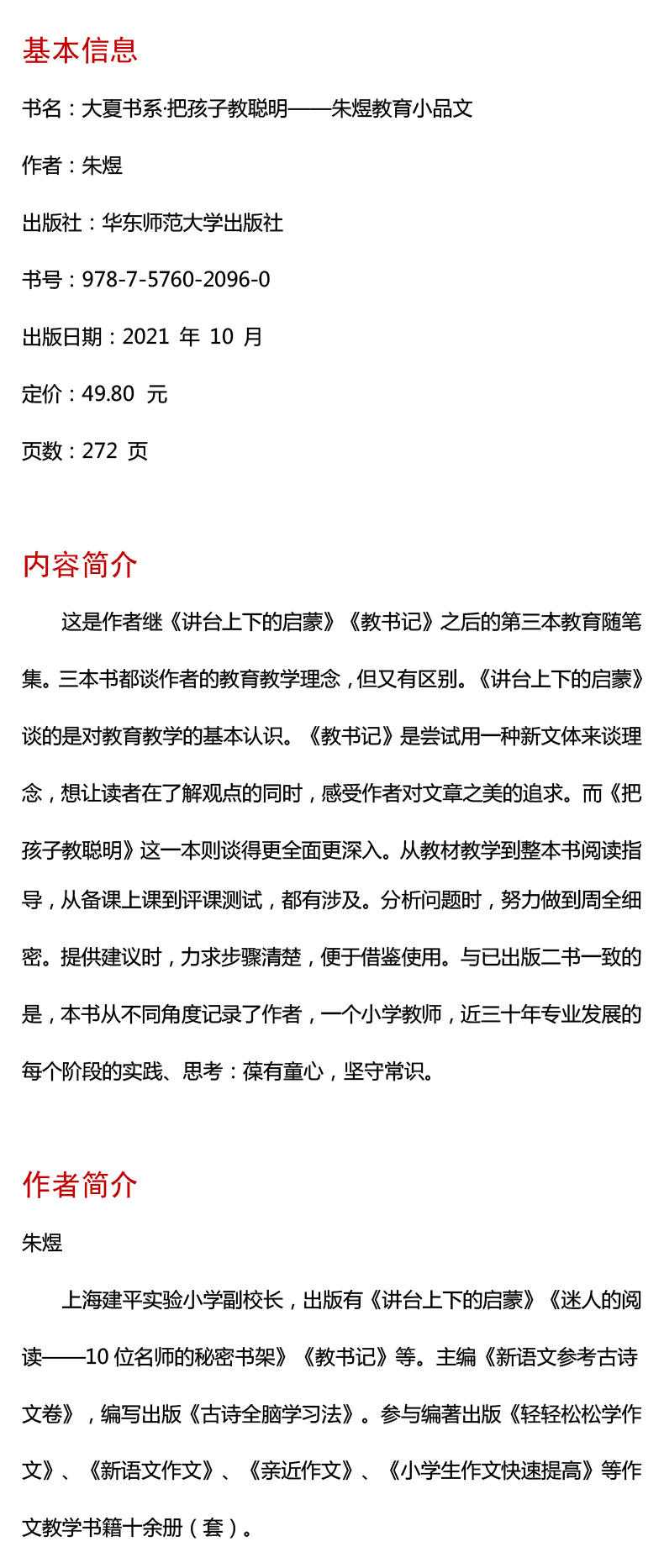 把孩子教聪明 朱煜教育小品文 大夏书系 阅读教育 教育教学 小学教师 教学实践 小学教育 教师阅读 正版 华东师范大学出版社