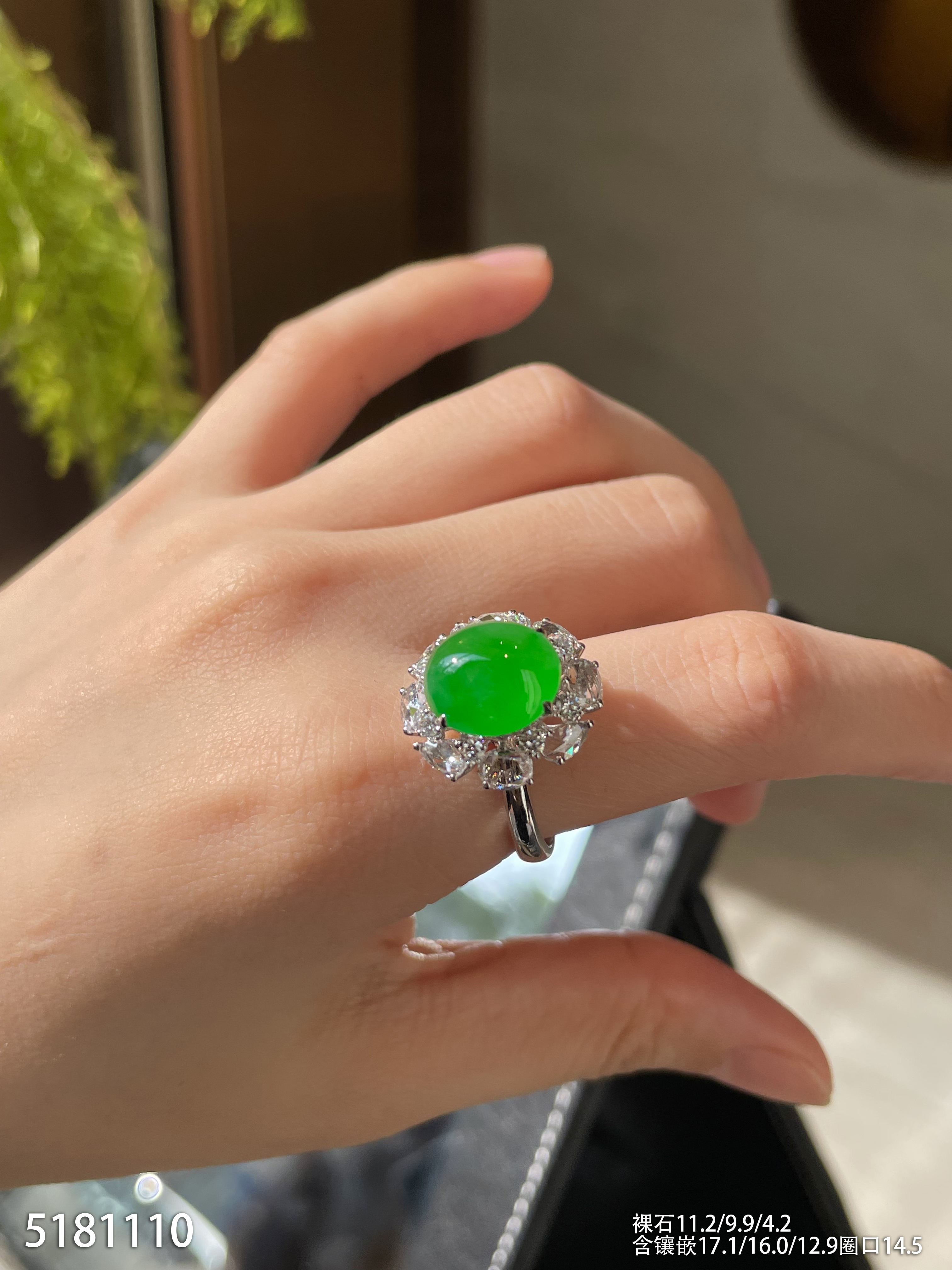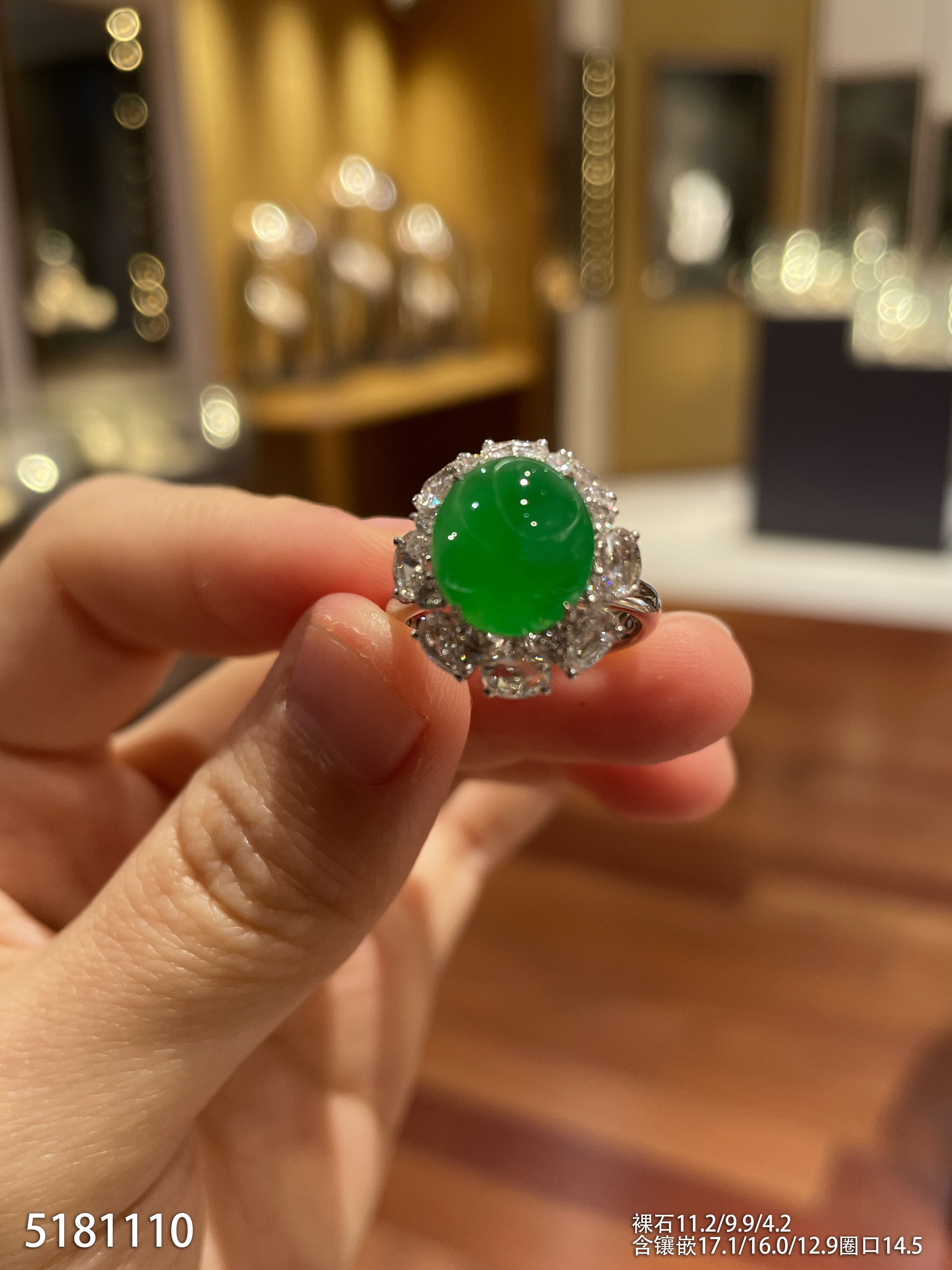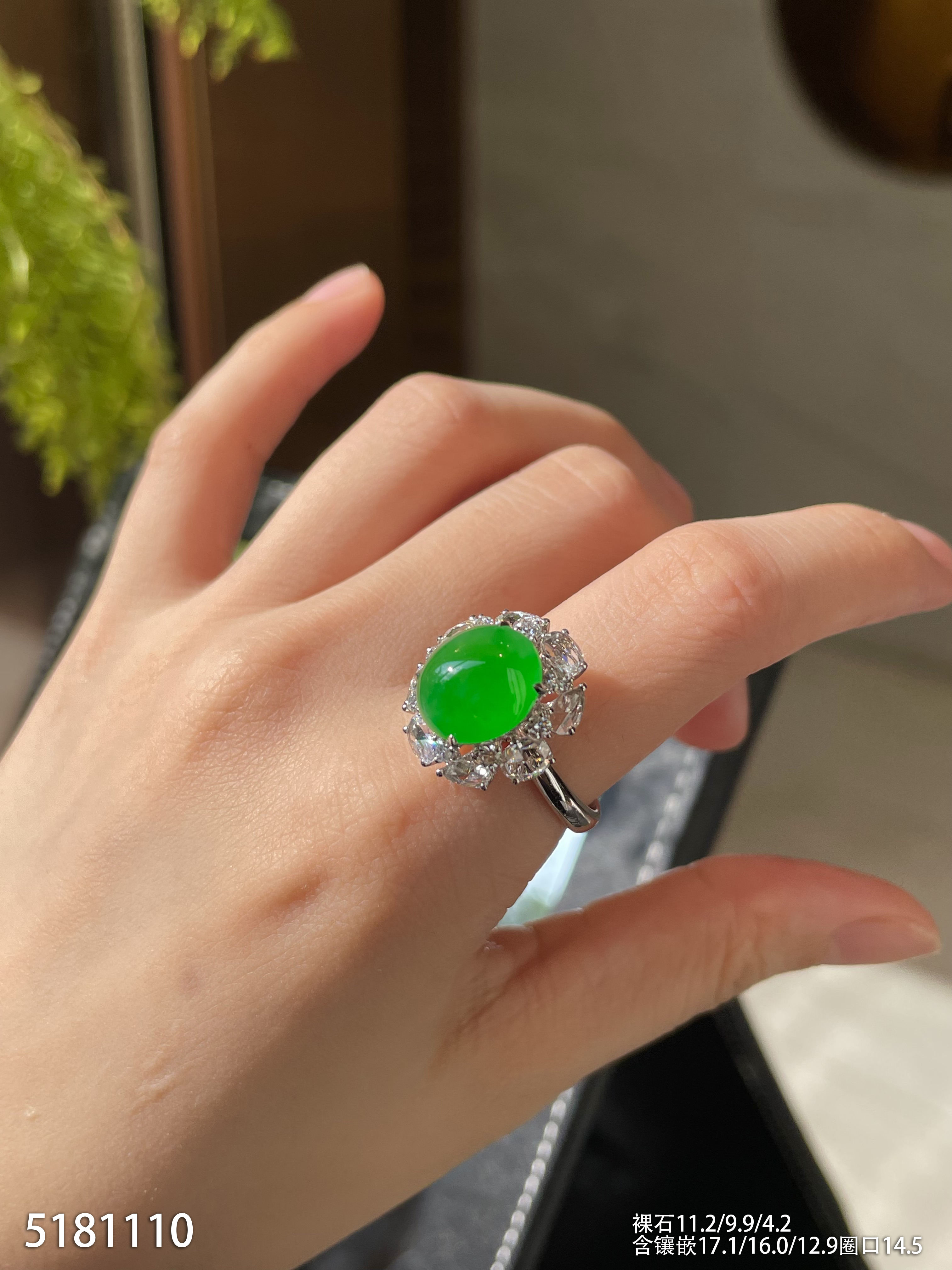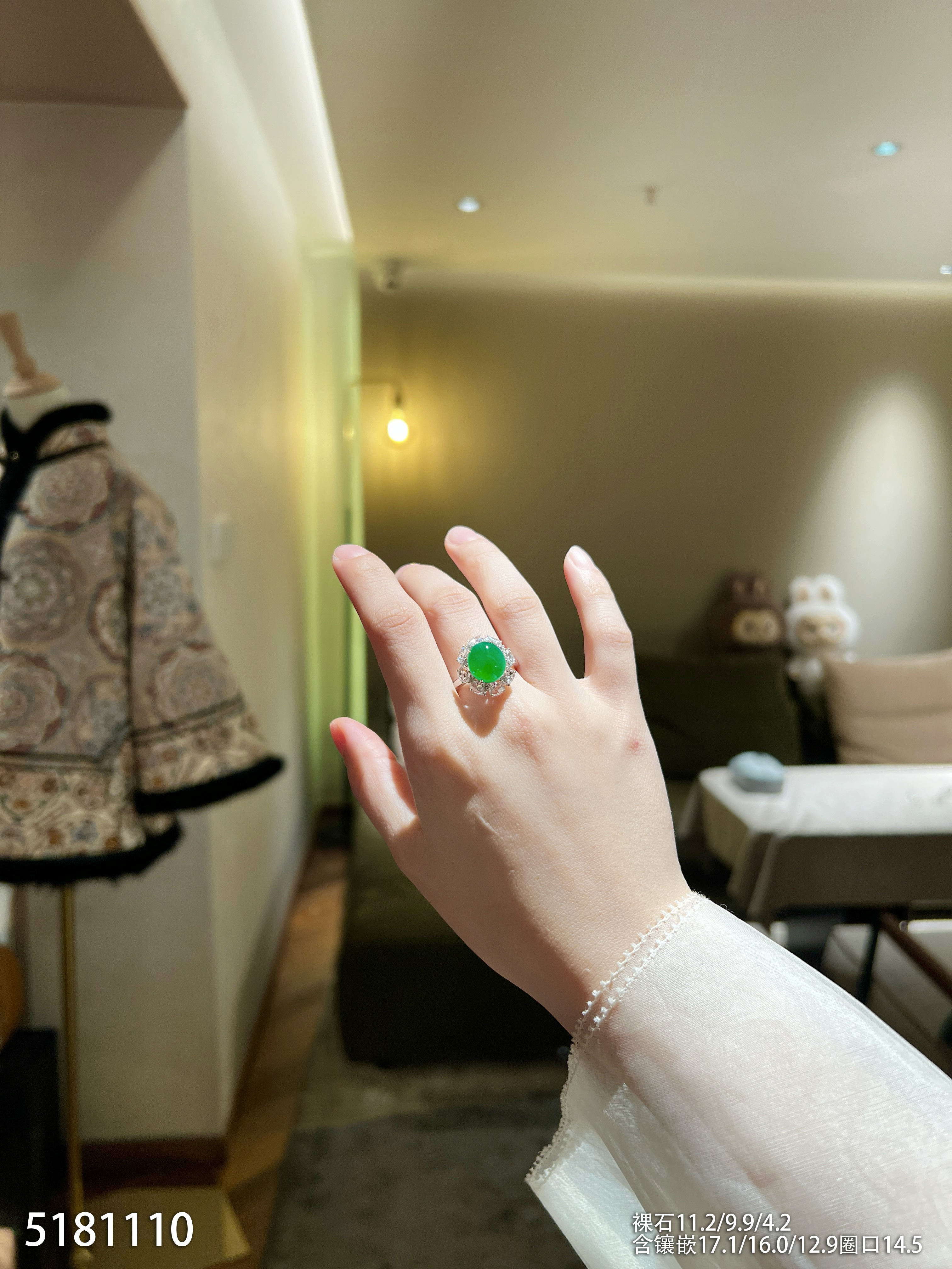 高冰种艳绿蛋面戒指【5181110】具体价格微信咨询