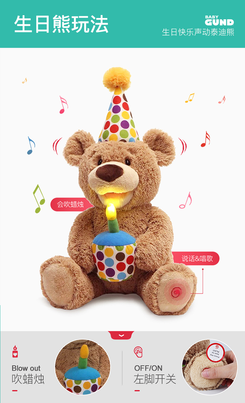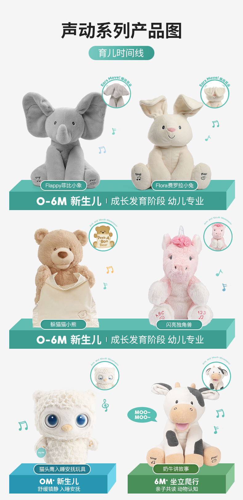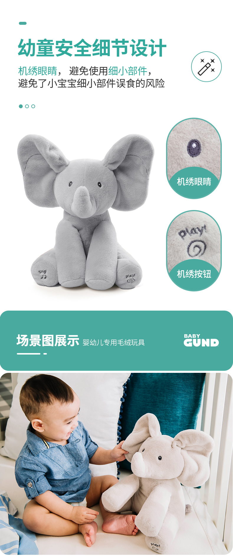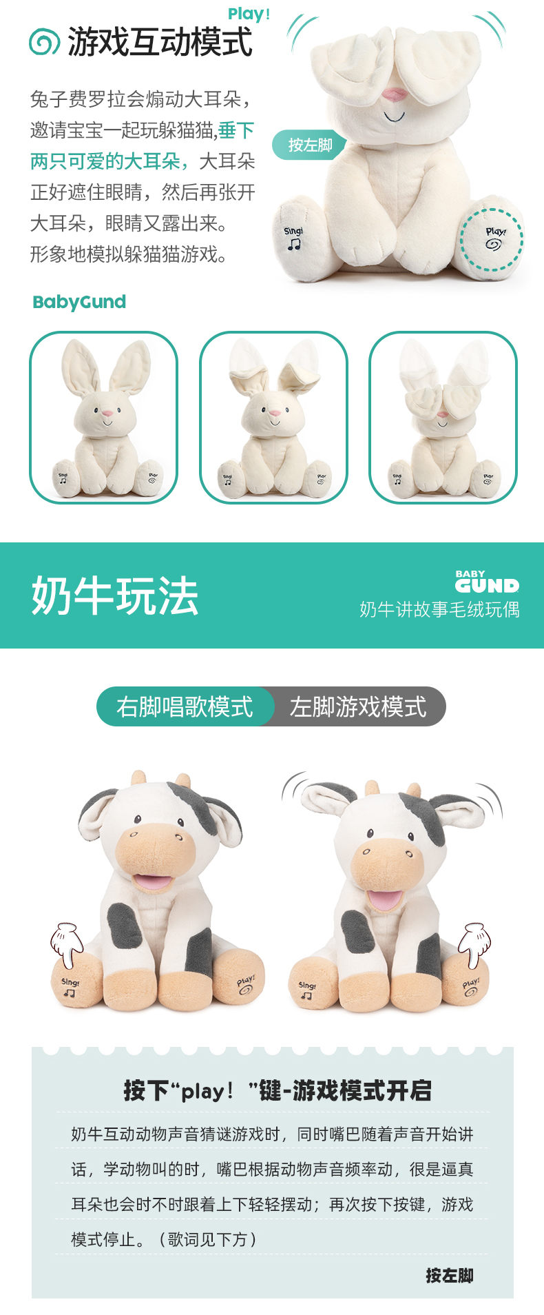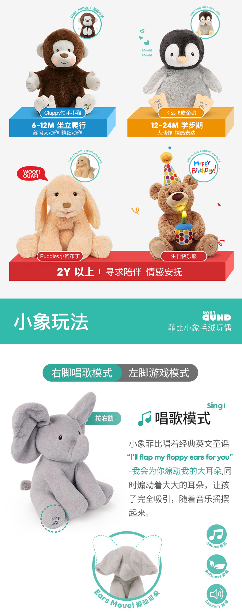 BabyGund菲比小象躲猫猫婴儿毛绒生日熊小兔玩偶儿童声动安抚玩具