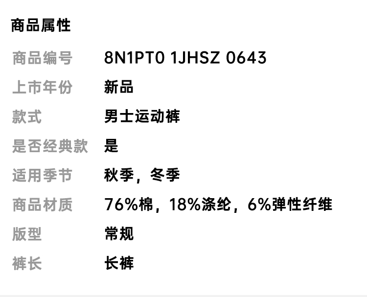 EMPORIO ARMANI 阿玛尼 男士棉质刺绣徽标休闲运动裤 灰色 8N1PT0 1JHSZ 0643
