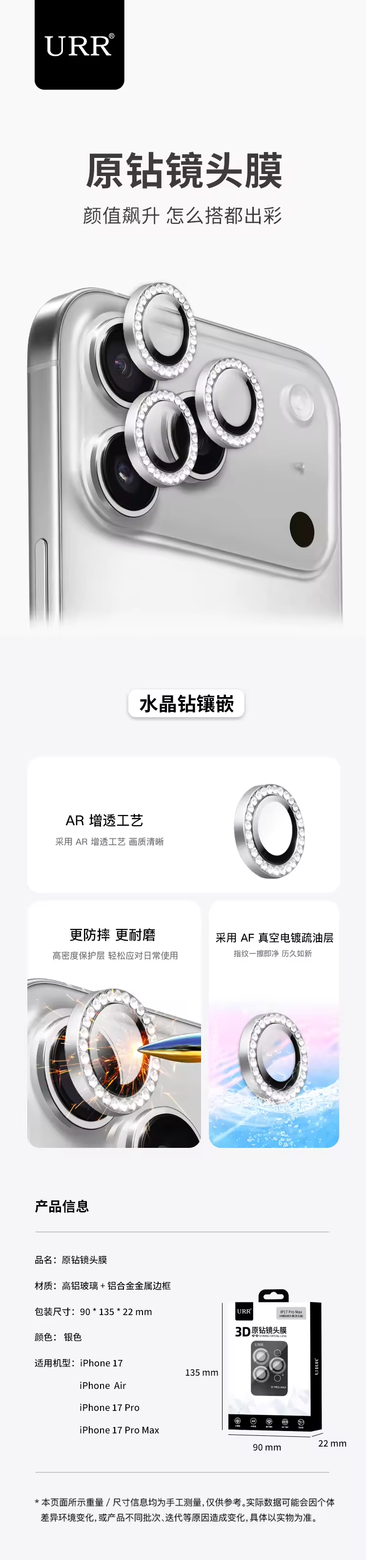保护膜 iPhone 17 Pro系列 原钻三摄 银色-urr