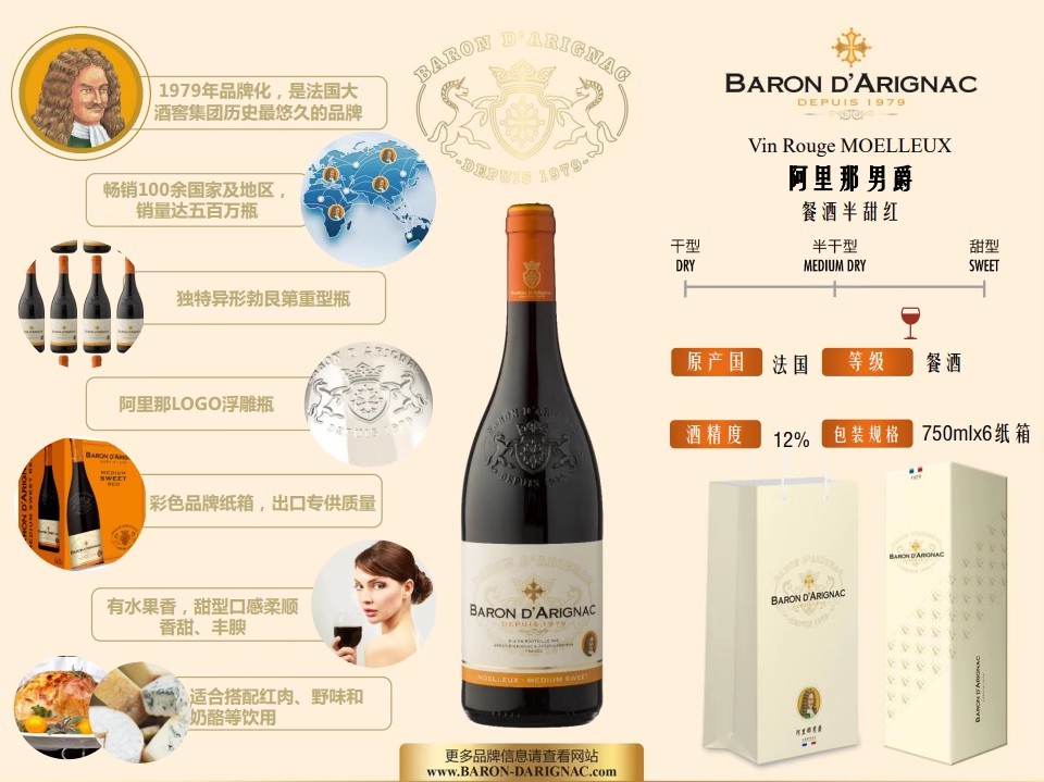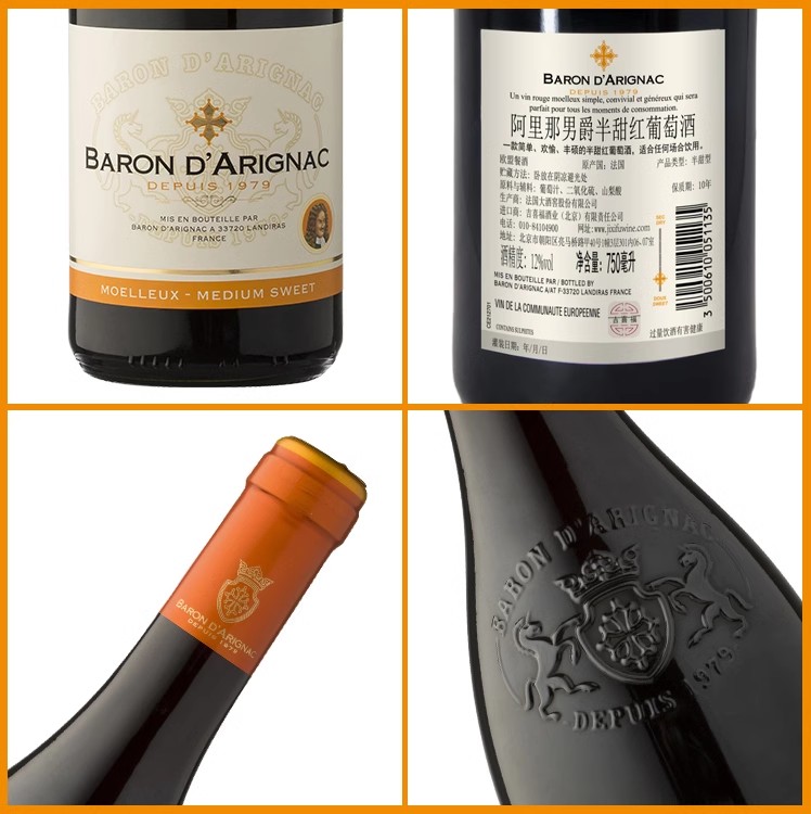 阿里那男爵半甜红葡萄酒 法国原瓶进口 750ml 口感柔和 朋友聚会 72小时发货
