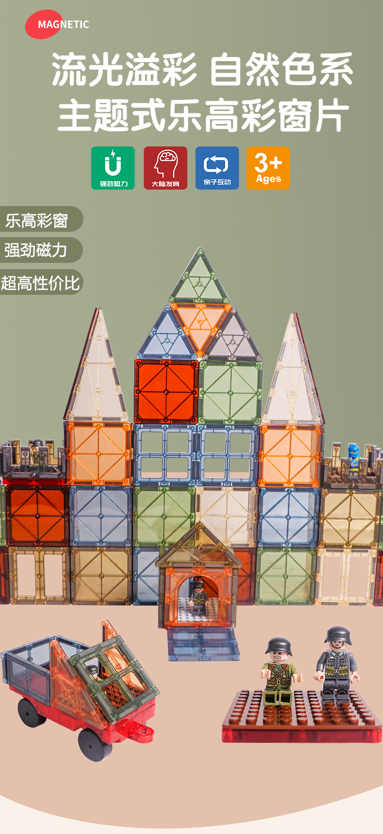 *【思创】彩窗磁力片乐高101片 彩虹色&大自然色(非质量问题退货需扣除发货运费,介意慎拍!)