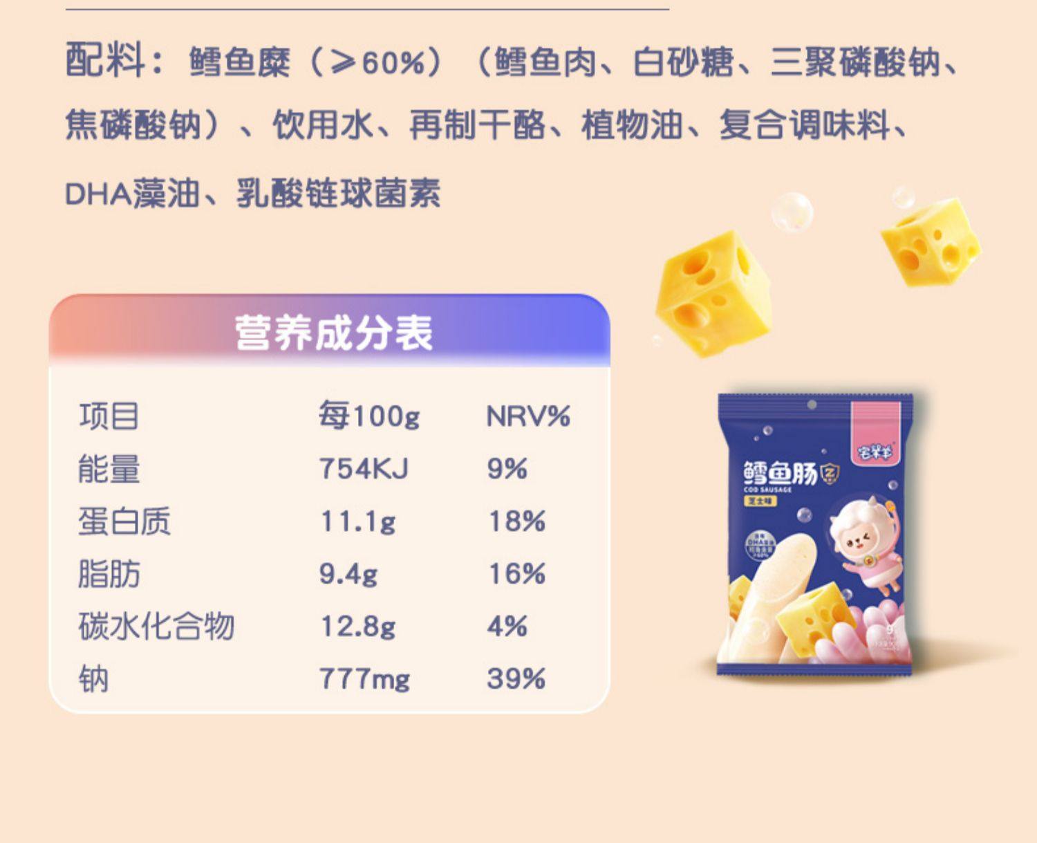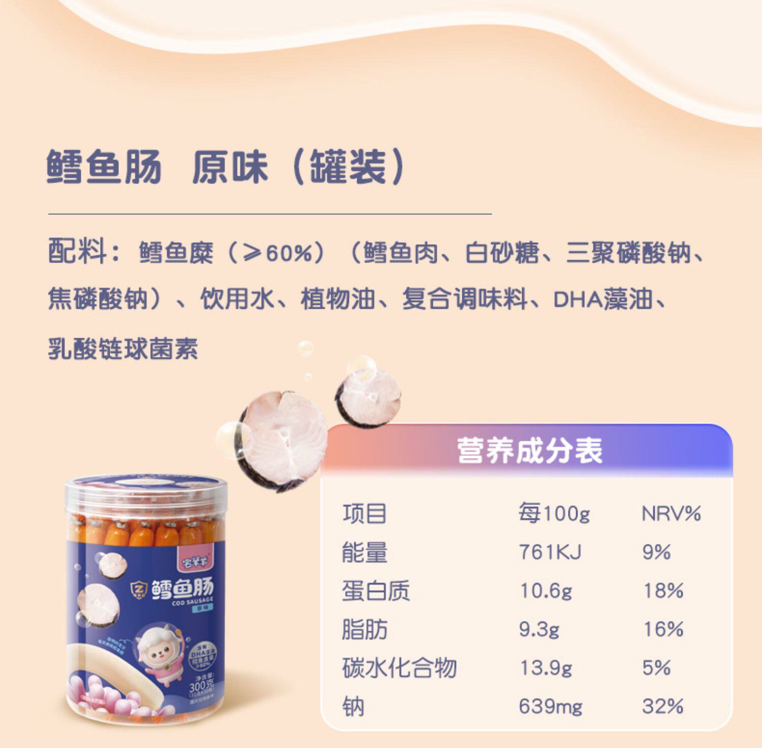 F/ 宅羊羊高钙鳕鱼肠300g